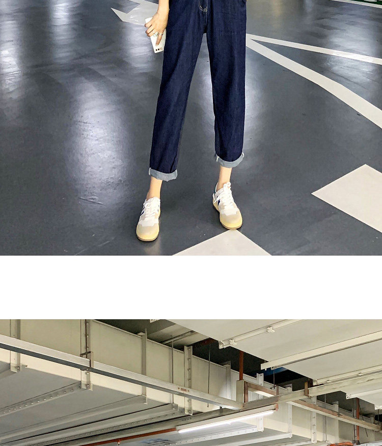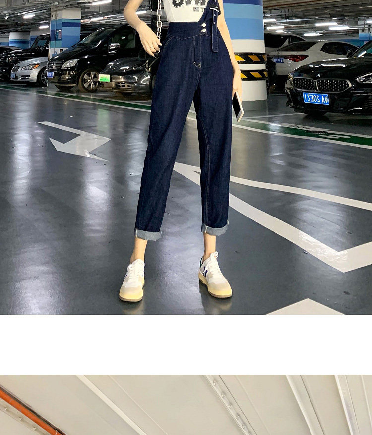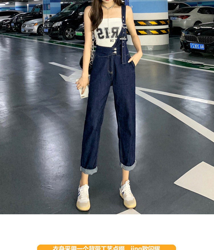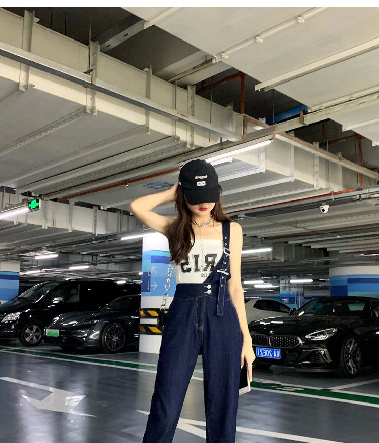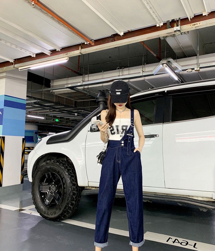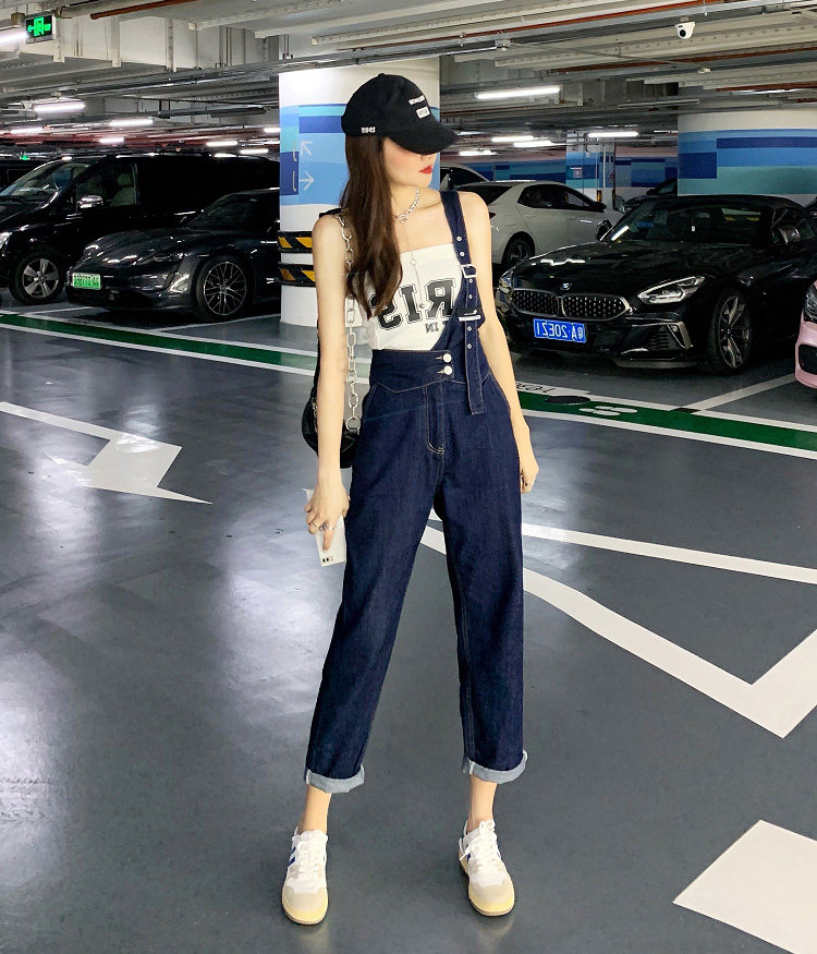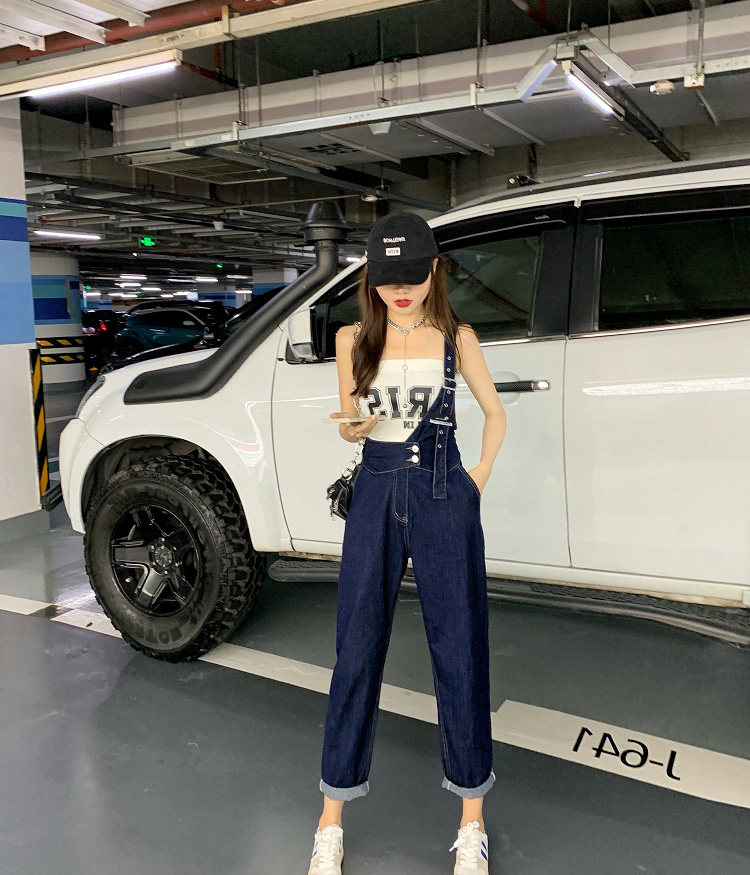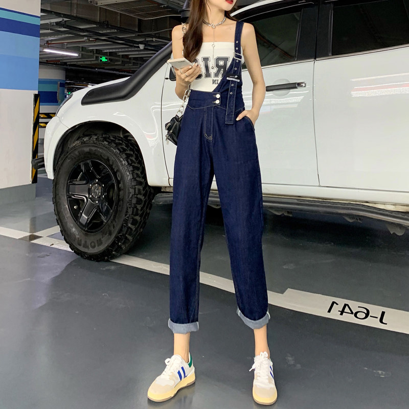 Джинсовый комбинезон, тонкие дизайнерские штаны, в корейском стиле, тренд сезона