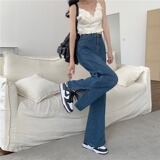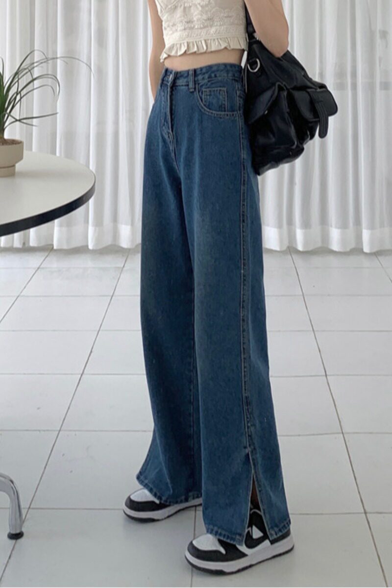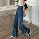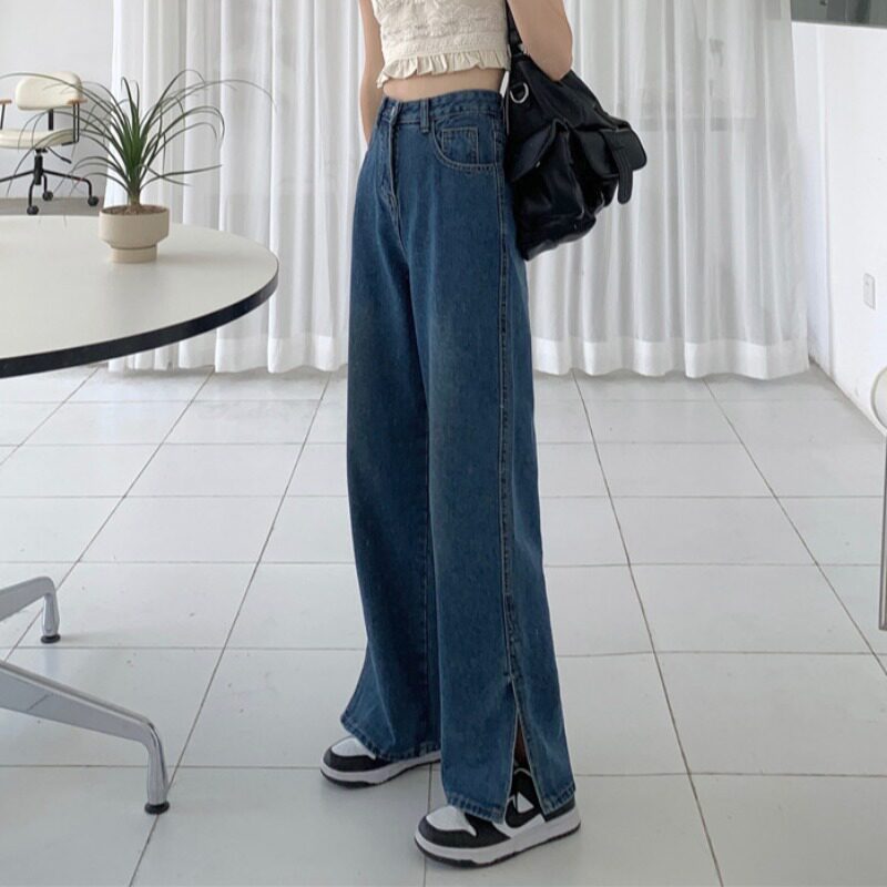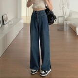 Ретро синие тонкие летние штаны, прямые свободные джинсы, высокая талия, свободный крой