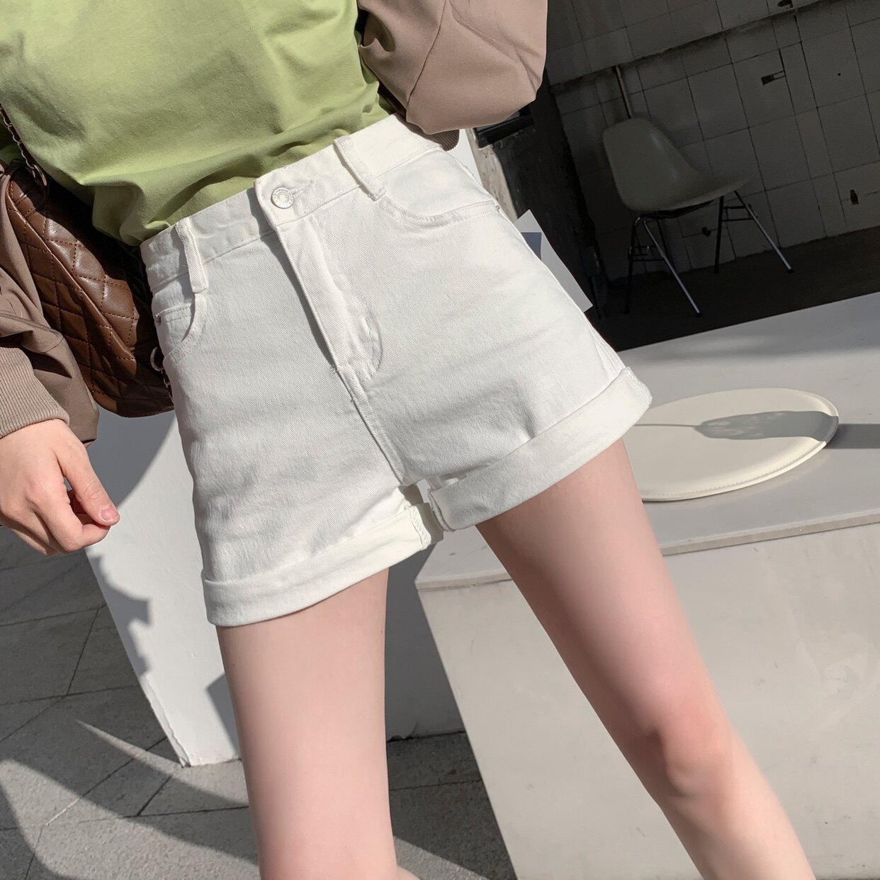 Tide, белая цветная джинсовая юбка, шорты, штаны, приталенные румяна, высокая талия, 2024 года, новая коллекция, популярно в интернете, А-силуэт