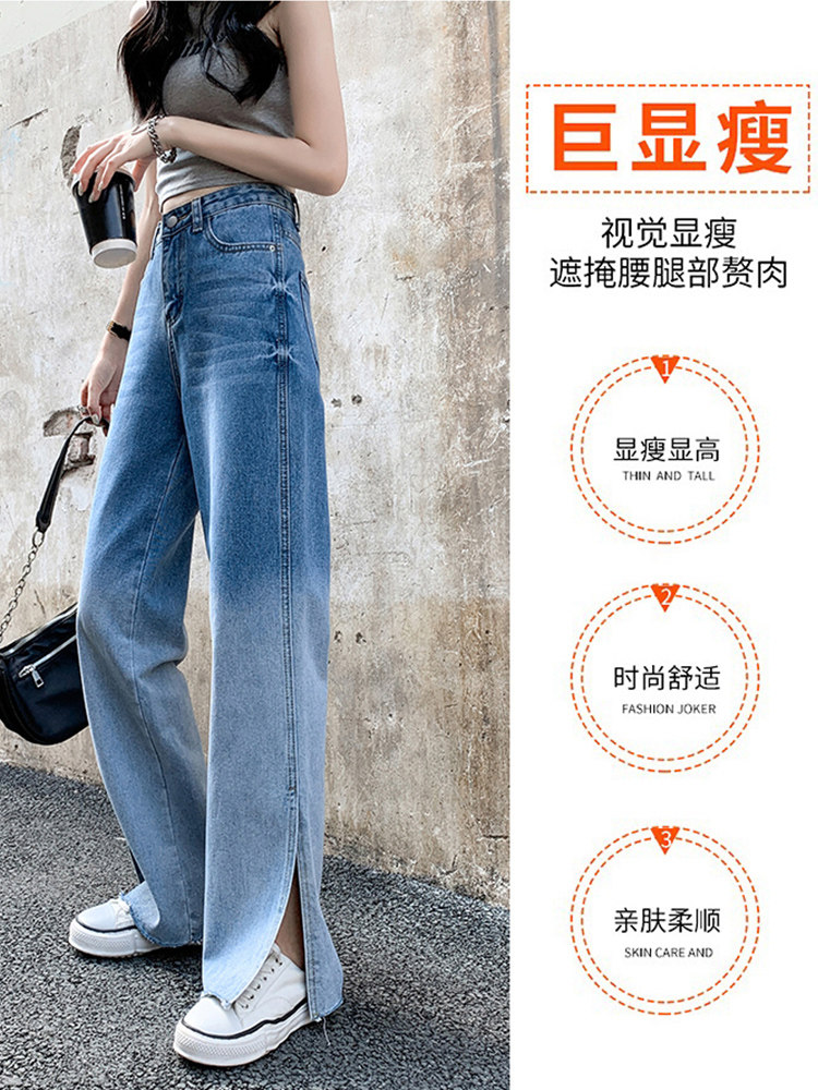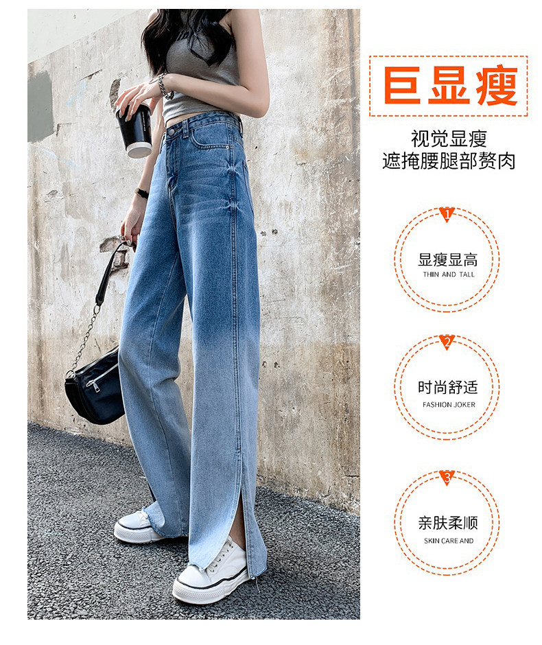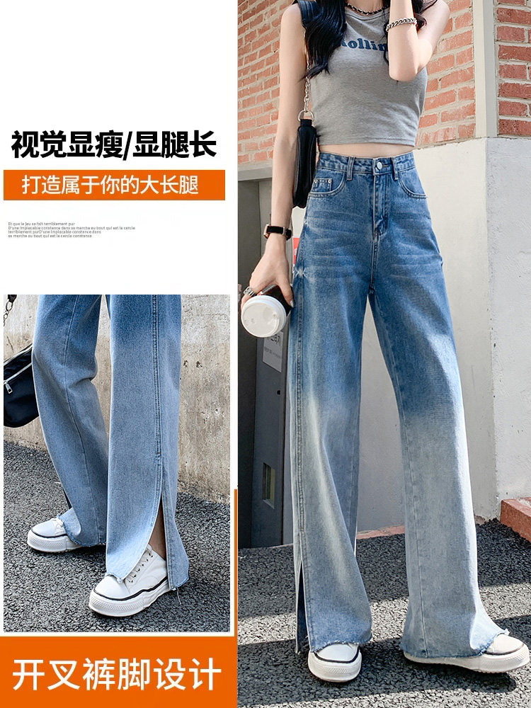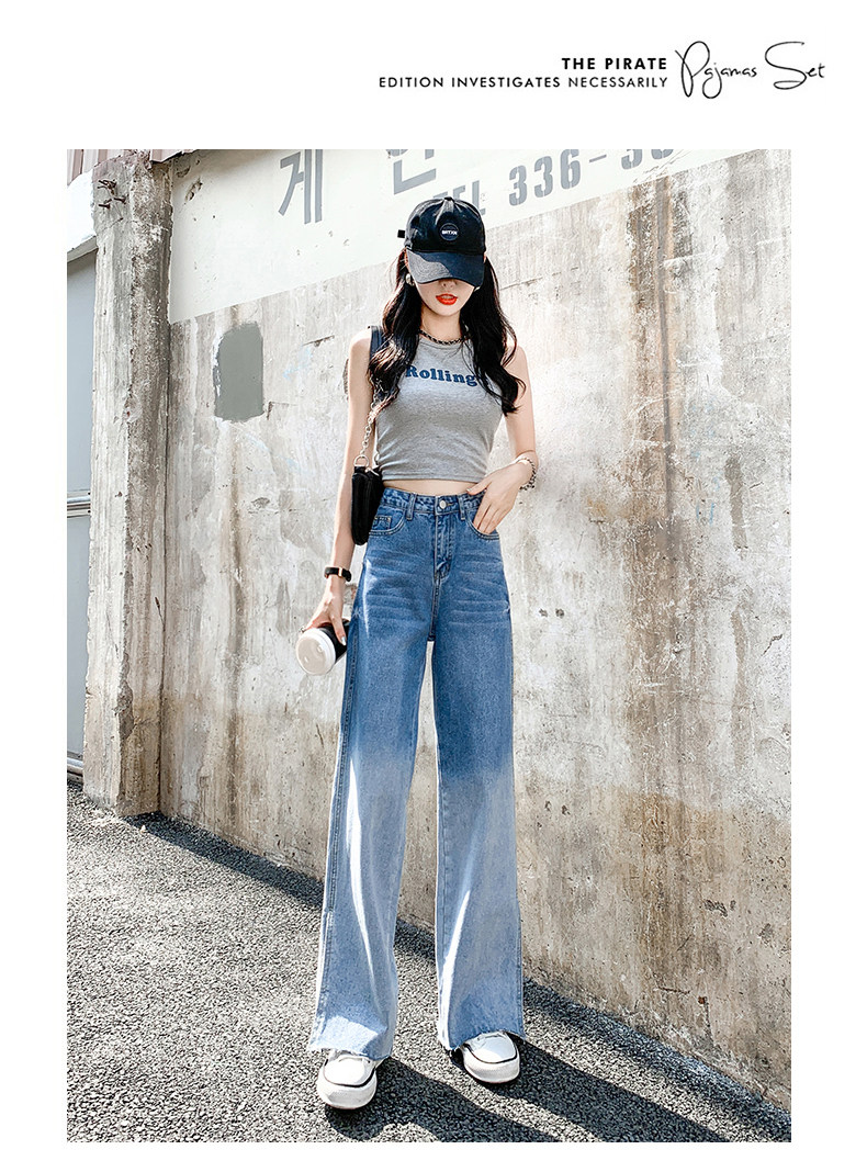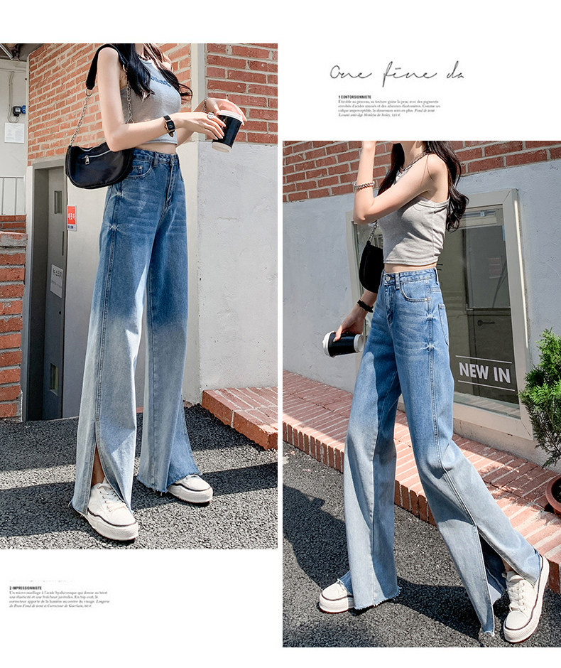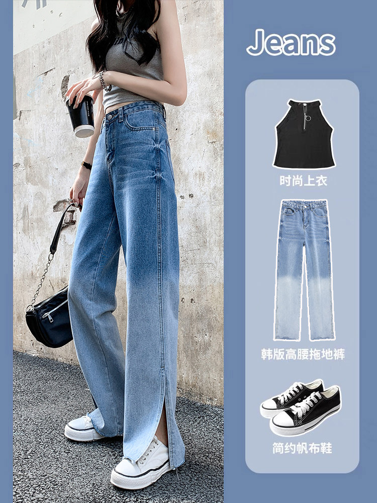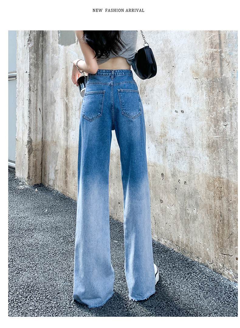 Джинсы, тонкие летние штаны, градиент, высокая талия, коллекция 2023, свободный прямой крой