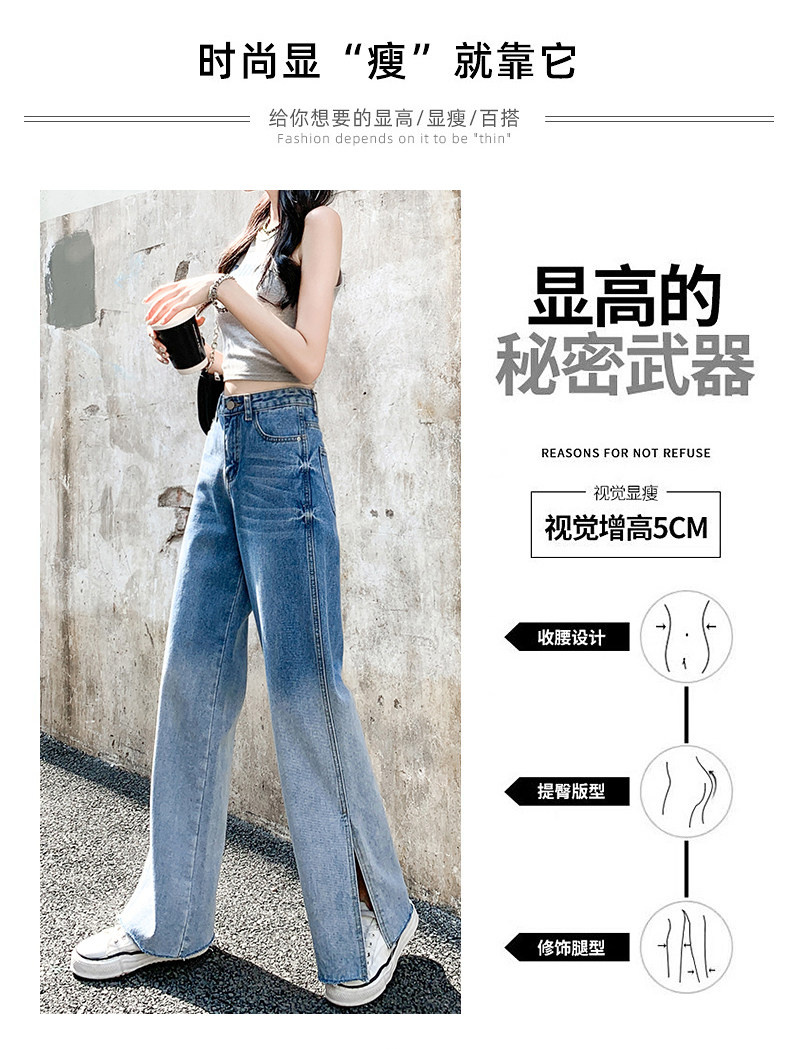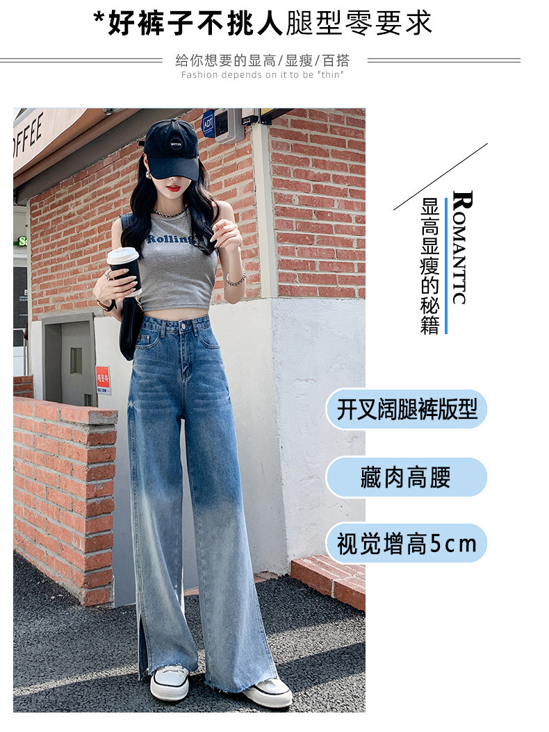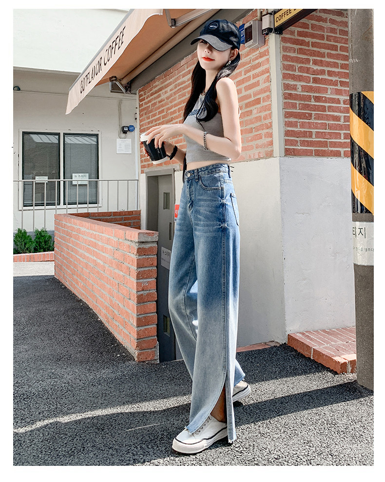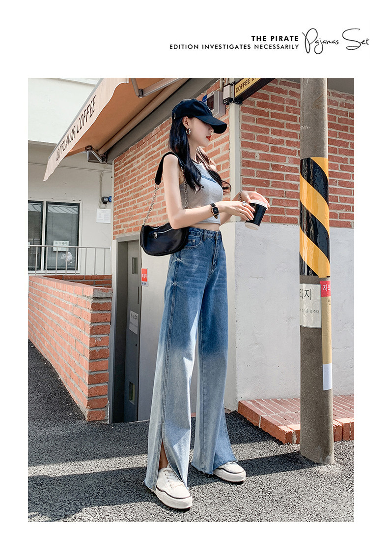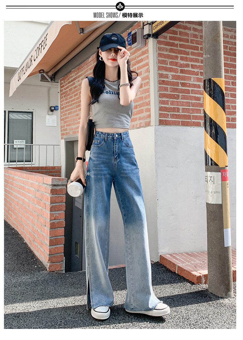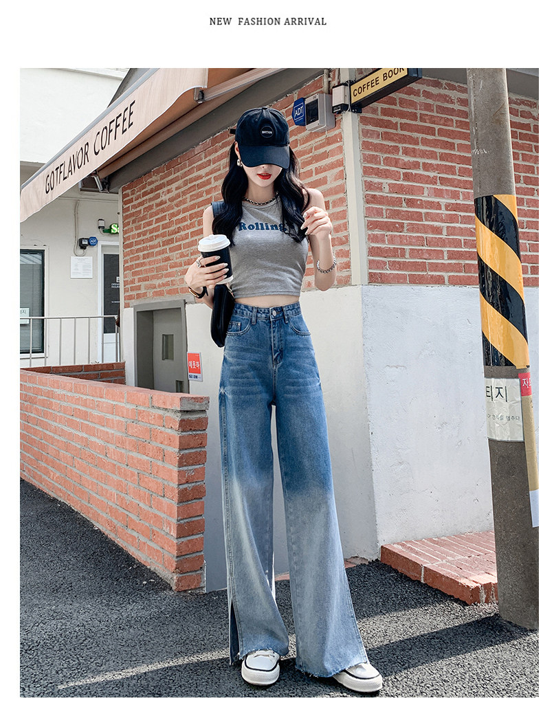 Джинсы, тонкие летние штаны, градиент, высокая талия, коллекция 2023, свободный прямой крой