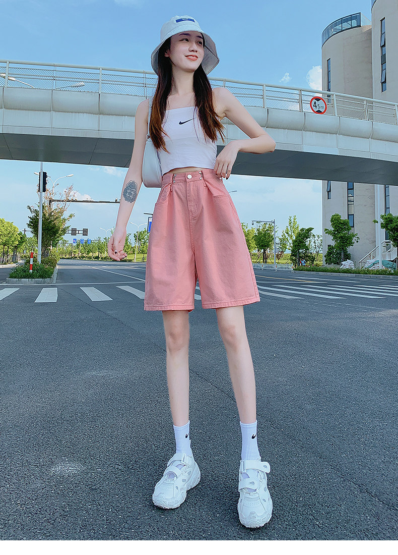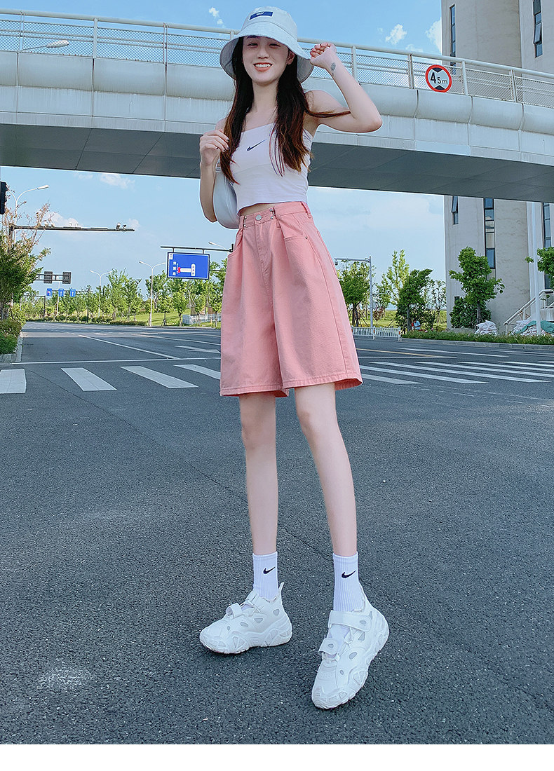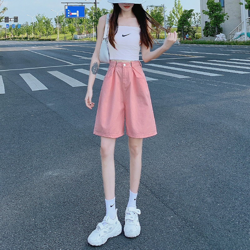 Дизайнерские тонкие штаны, розовая джинсовая юбка, шорты, тренд сезона, подходит для подростков, оверсайз, свободный крой, высокая талия