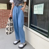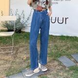 Летние джинсы, штаны, 2021 года, эластичная талия, свободный прямой крой