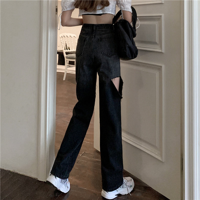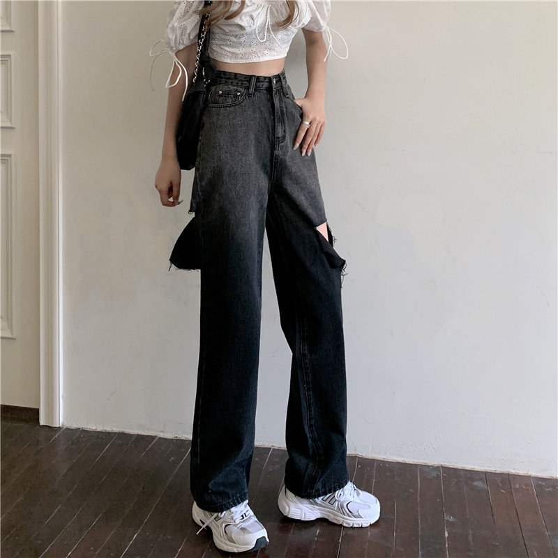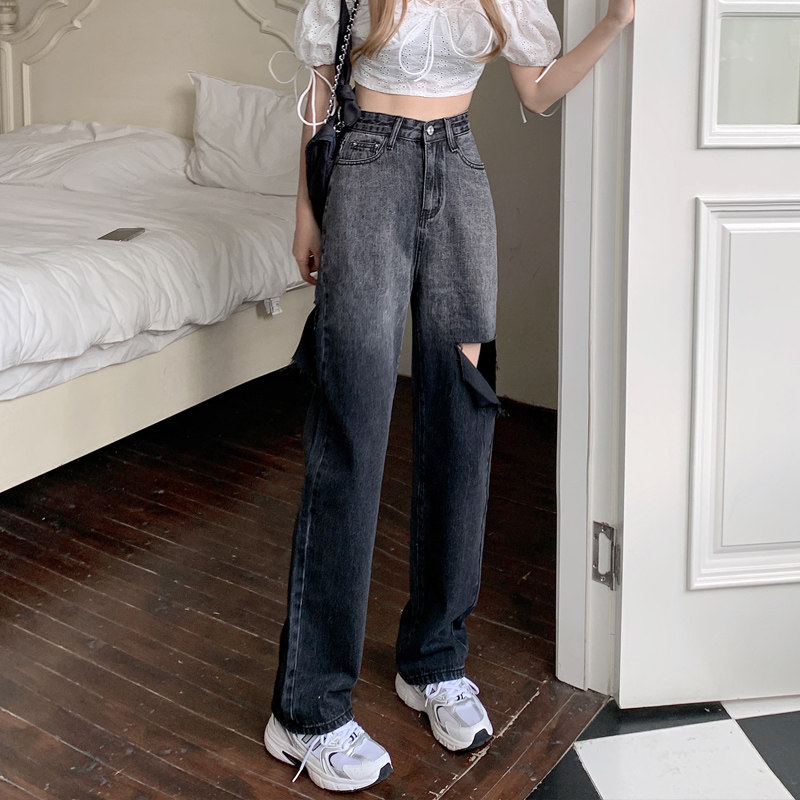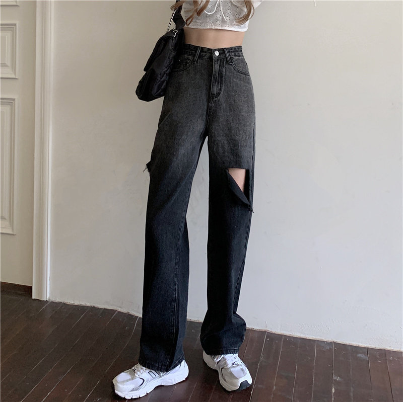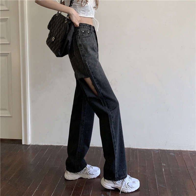 Весенние осенние джинсы, штаны, градиент, высокая талия, свободный прямой крой, стройный силуэт, большой размер
