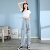 Осенние джинсы, летние тонкие приталенные штаны, свободный крой, высокая талия, большой размер