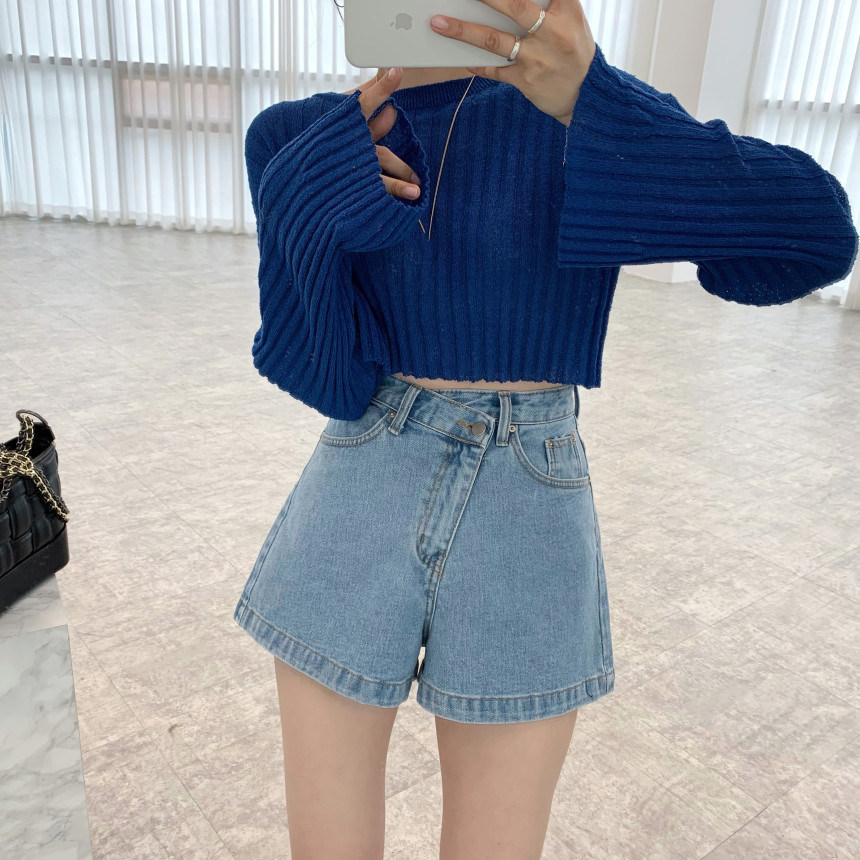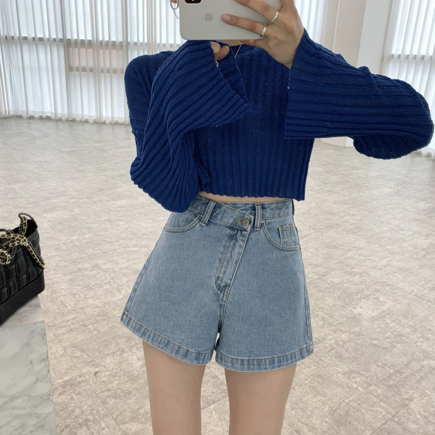 Летние дизайнерские джинсы, шорты, штаны, в корейском стиле, тренд сезона, высокая талия