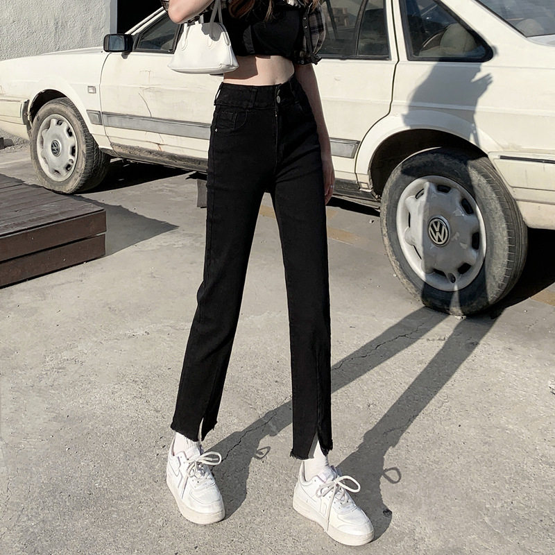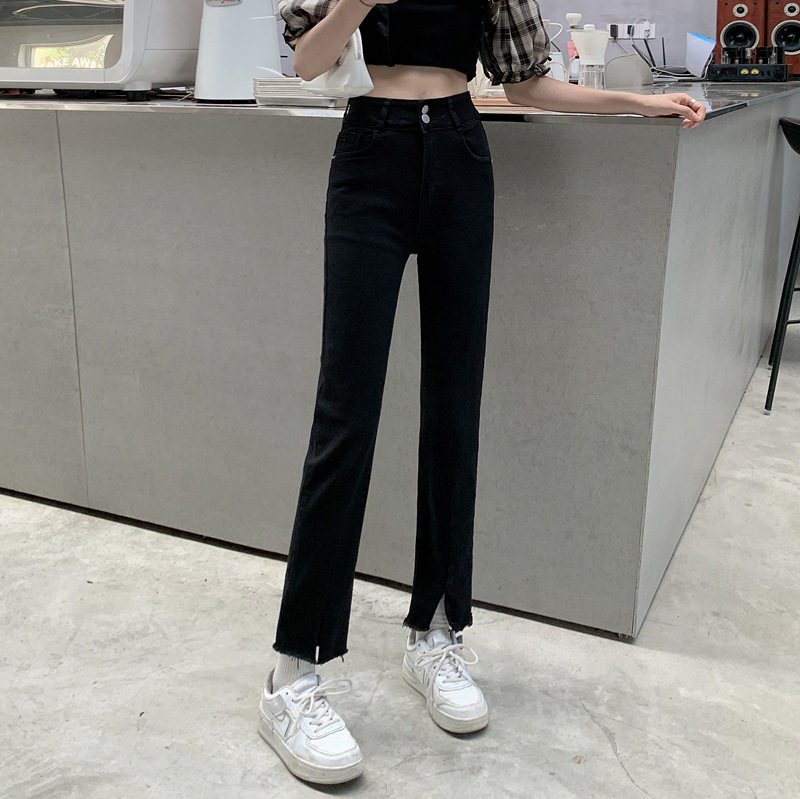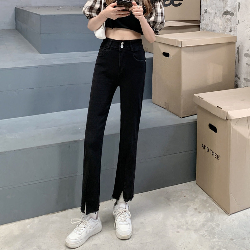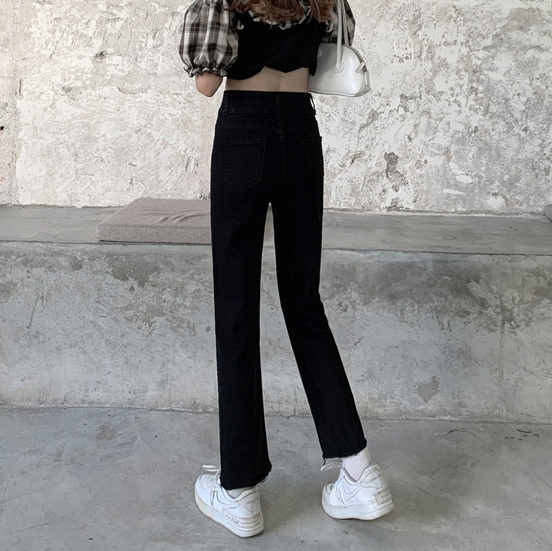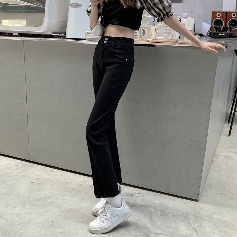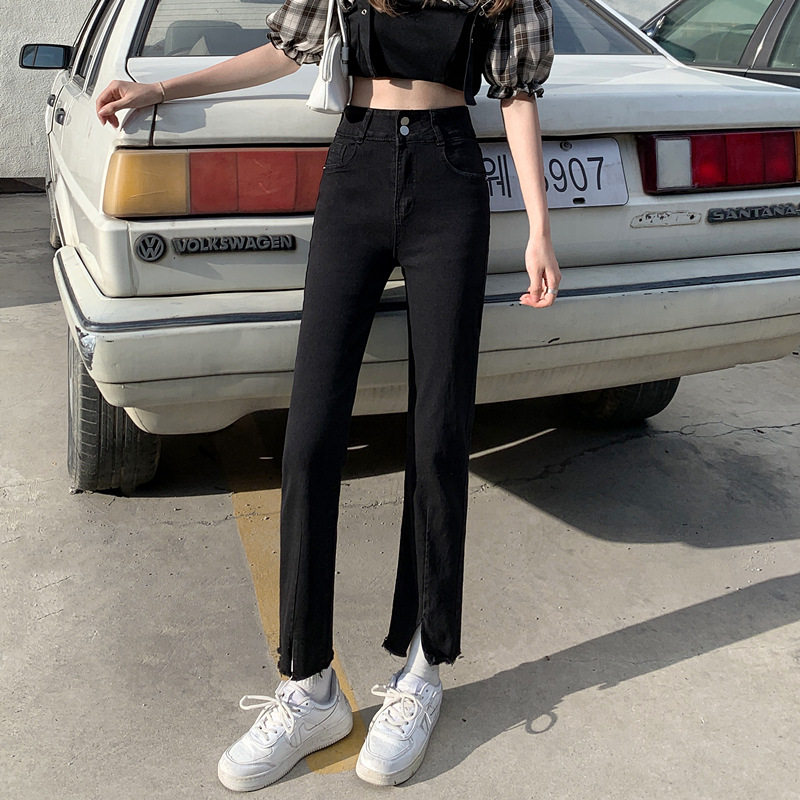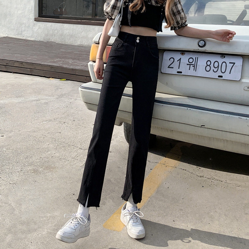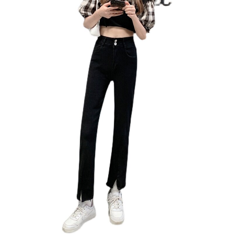 Джинсовые тонкие черные джинсы, штаны, приталенные штаны-клёш, коллекция 2021, высокая талия, свободный крой, подходит для подростков