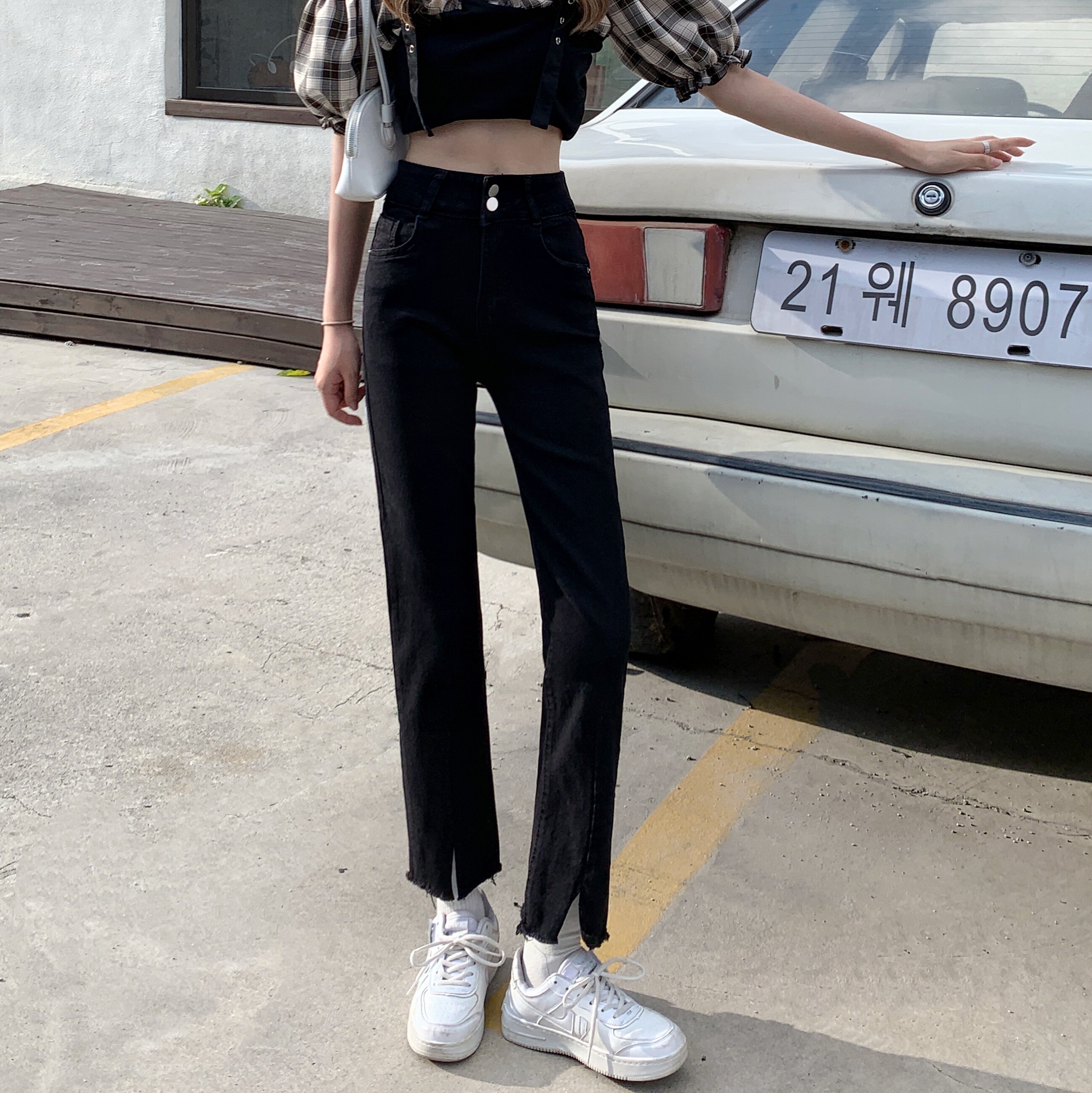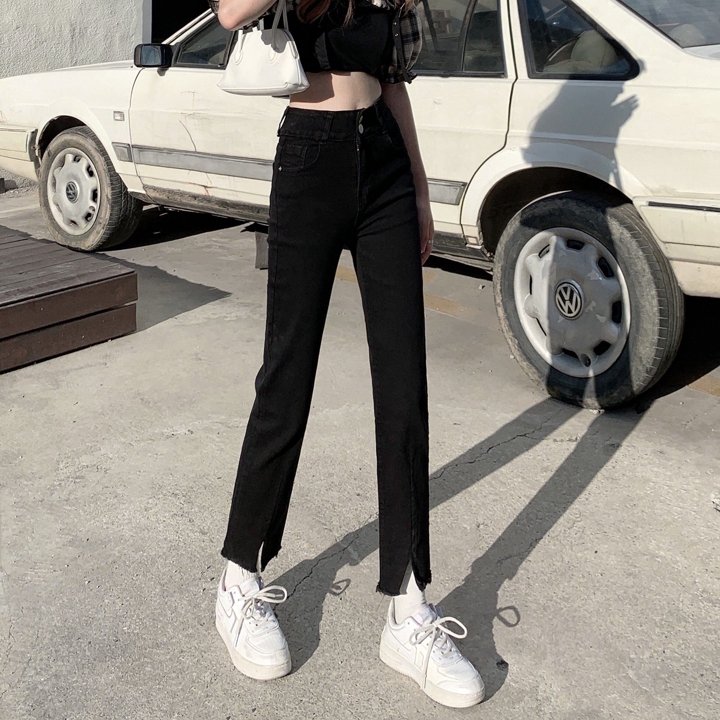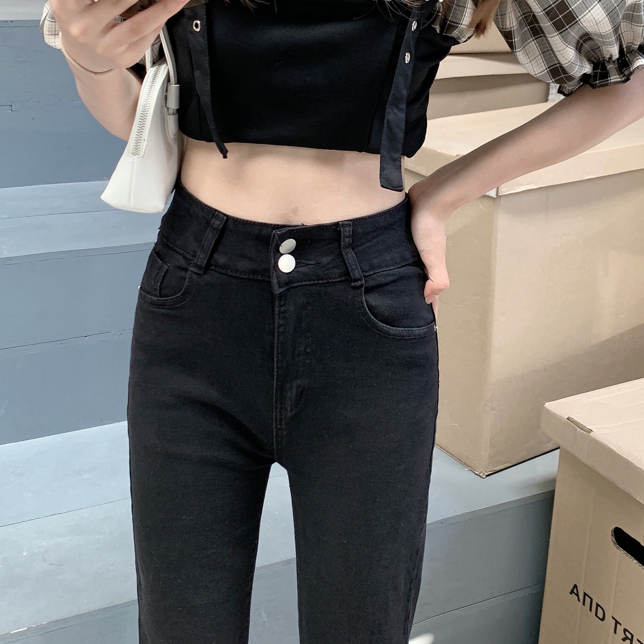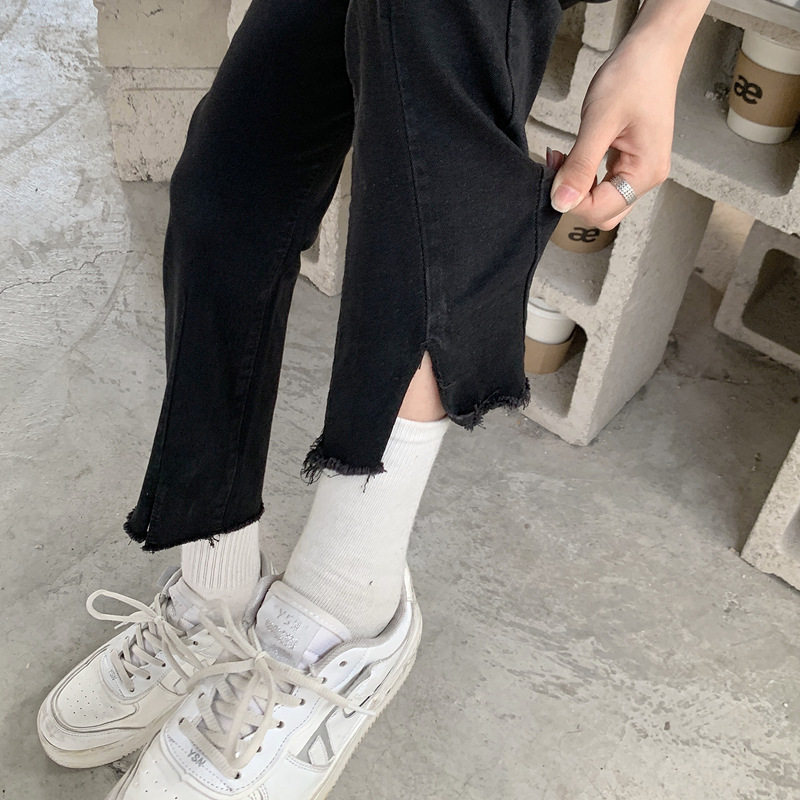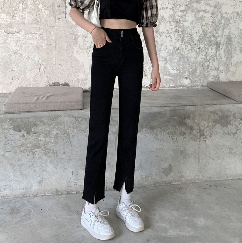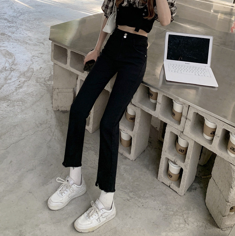 Джинсовые тонкие черные джинсы, штаны, приталенные штаны-клёш, коллекция 2021, высокая талия, свободный крой, подходит для подростков