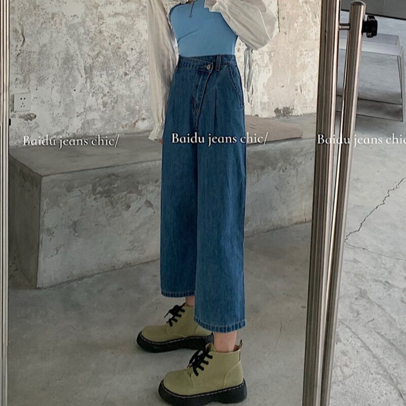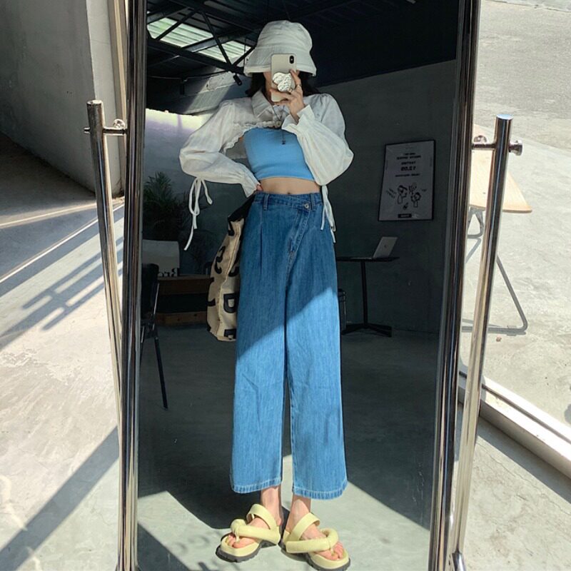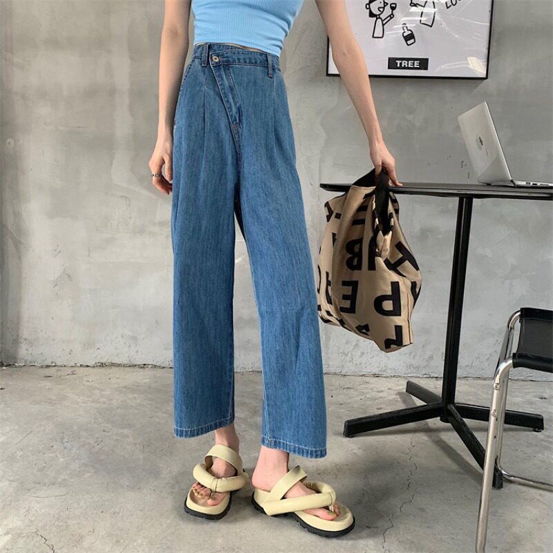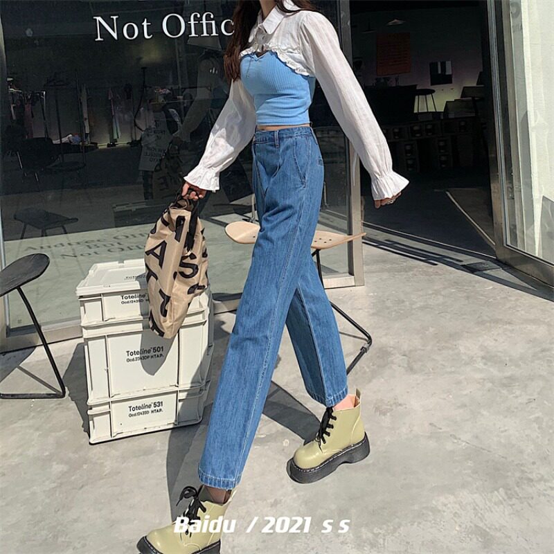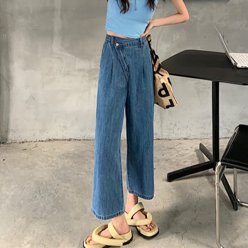 Летние тонкие штаны, джинсы, в корейском стиле, высокая талия, свободный прямой крой