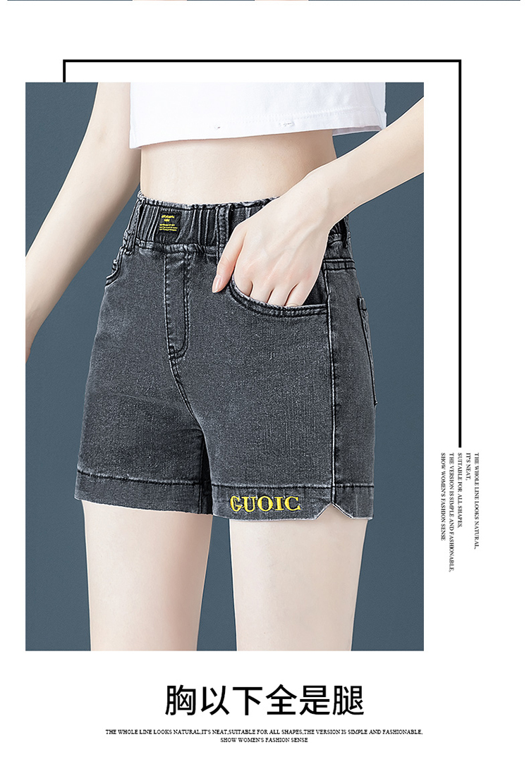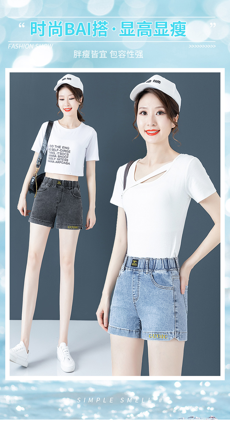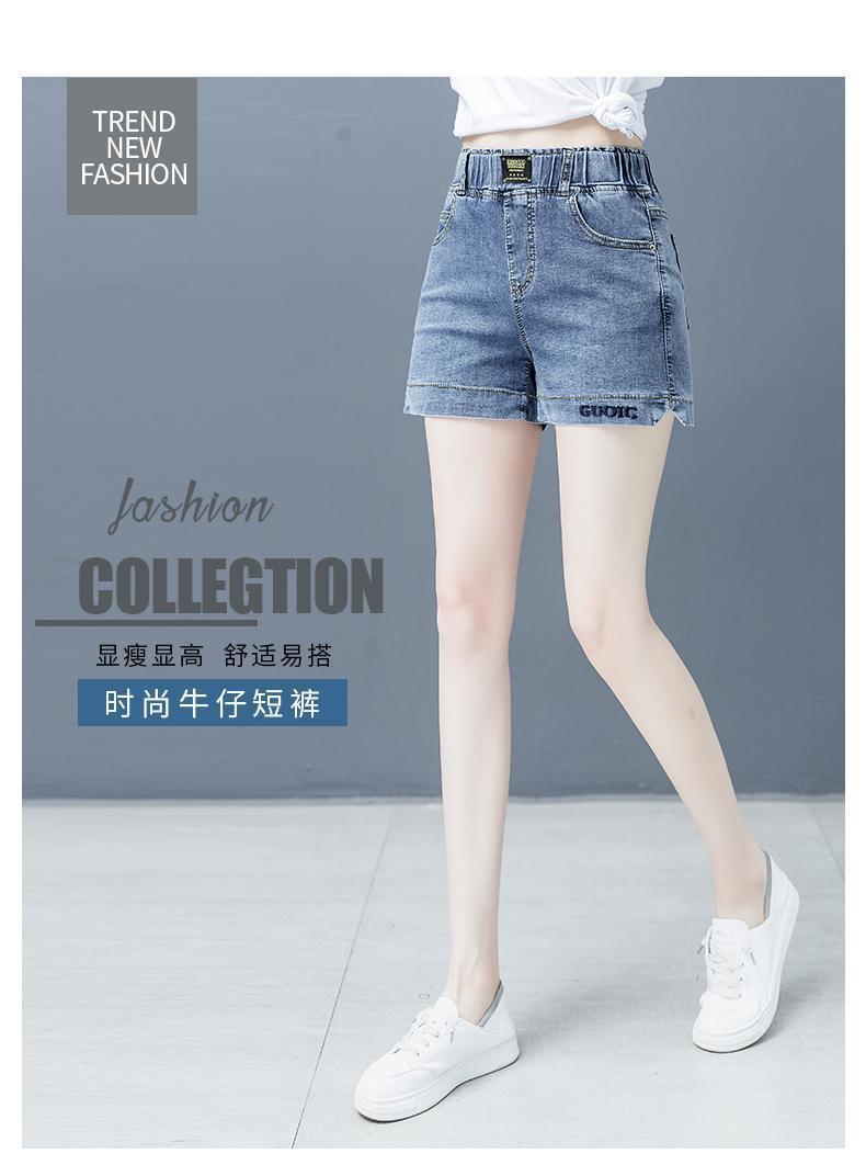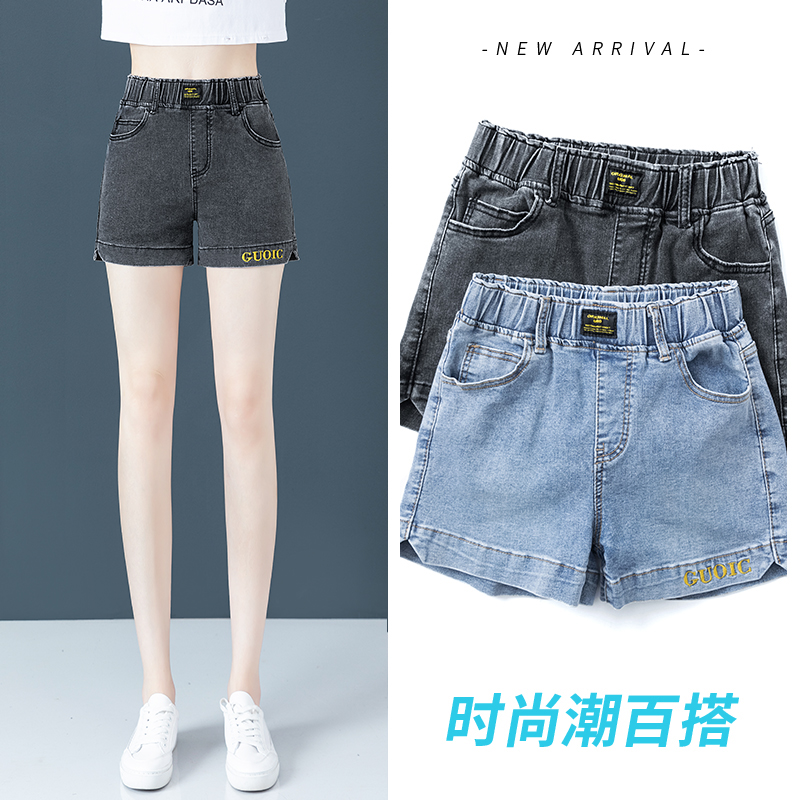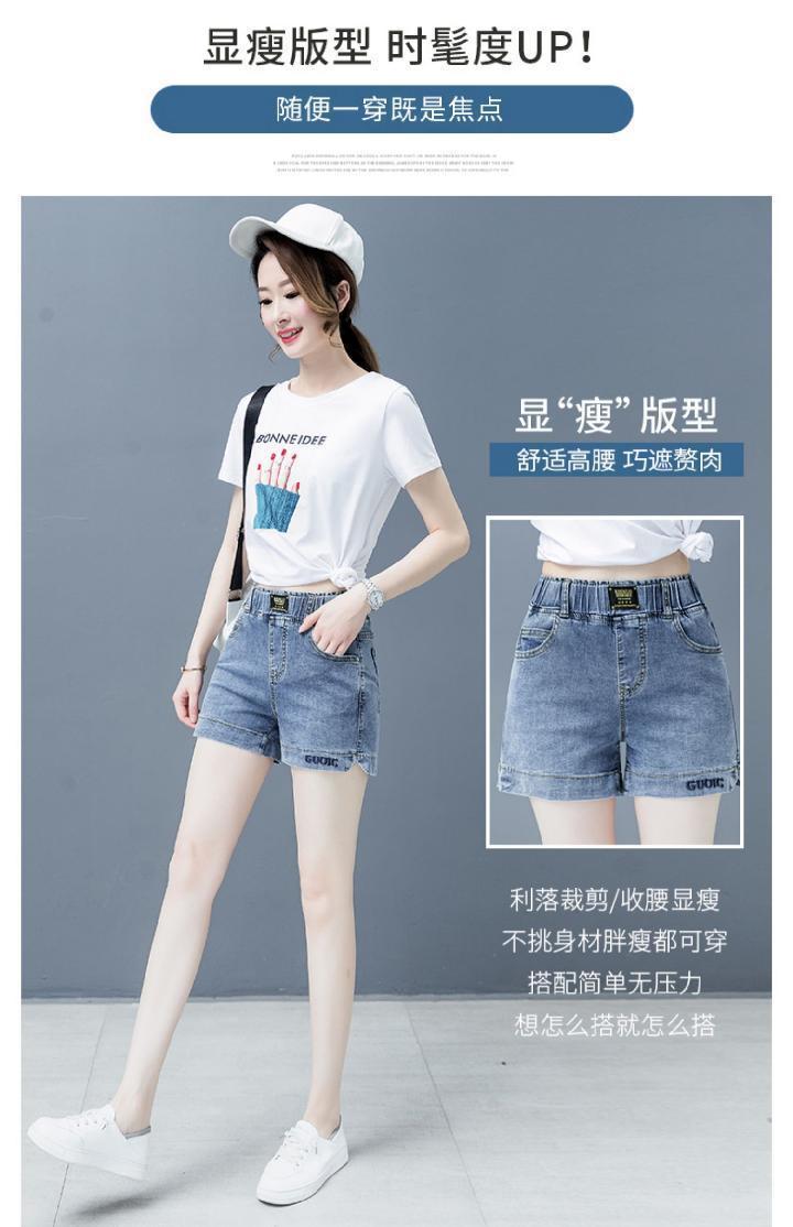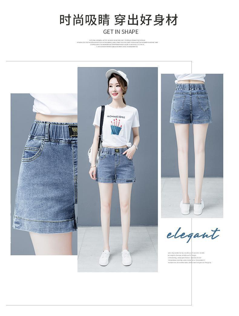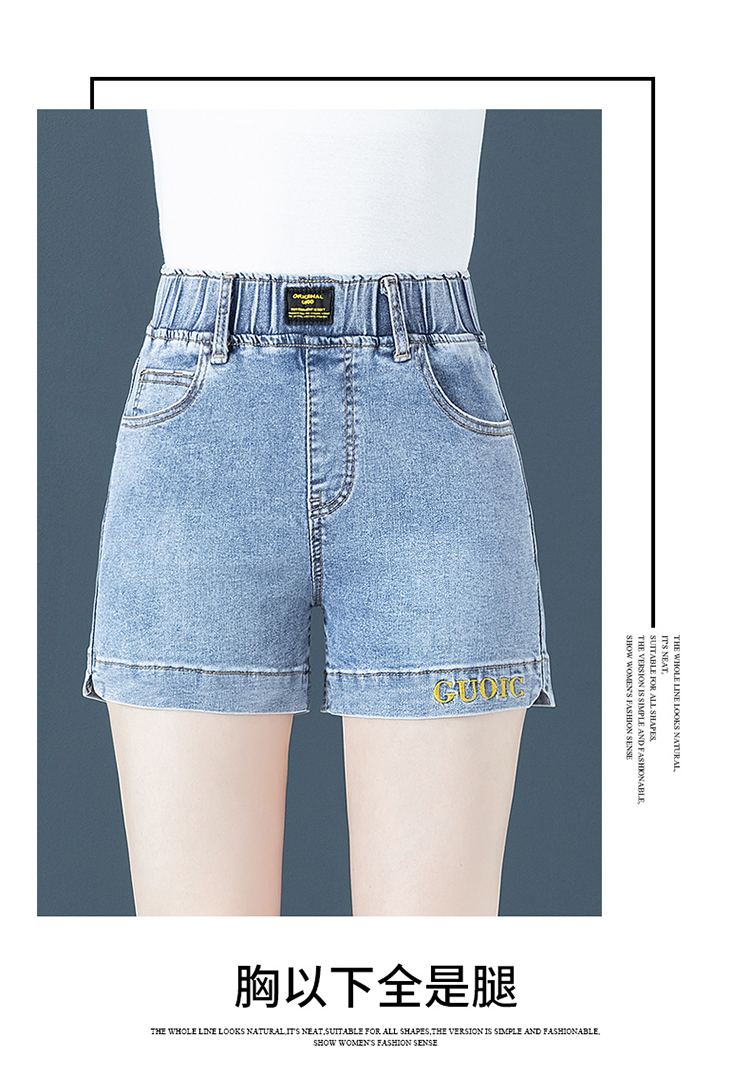 Джинсовая юбка, шорты, летние тонкие штаны, высокая талия, эластичная талия, с вышивкой, свободный крой, большой размер