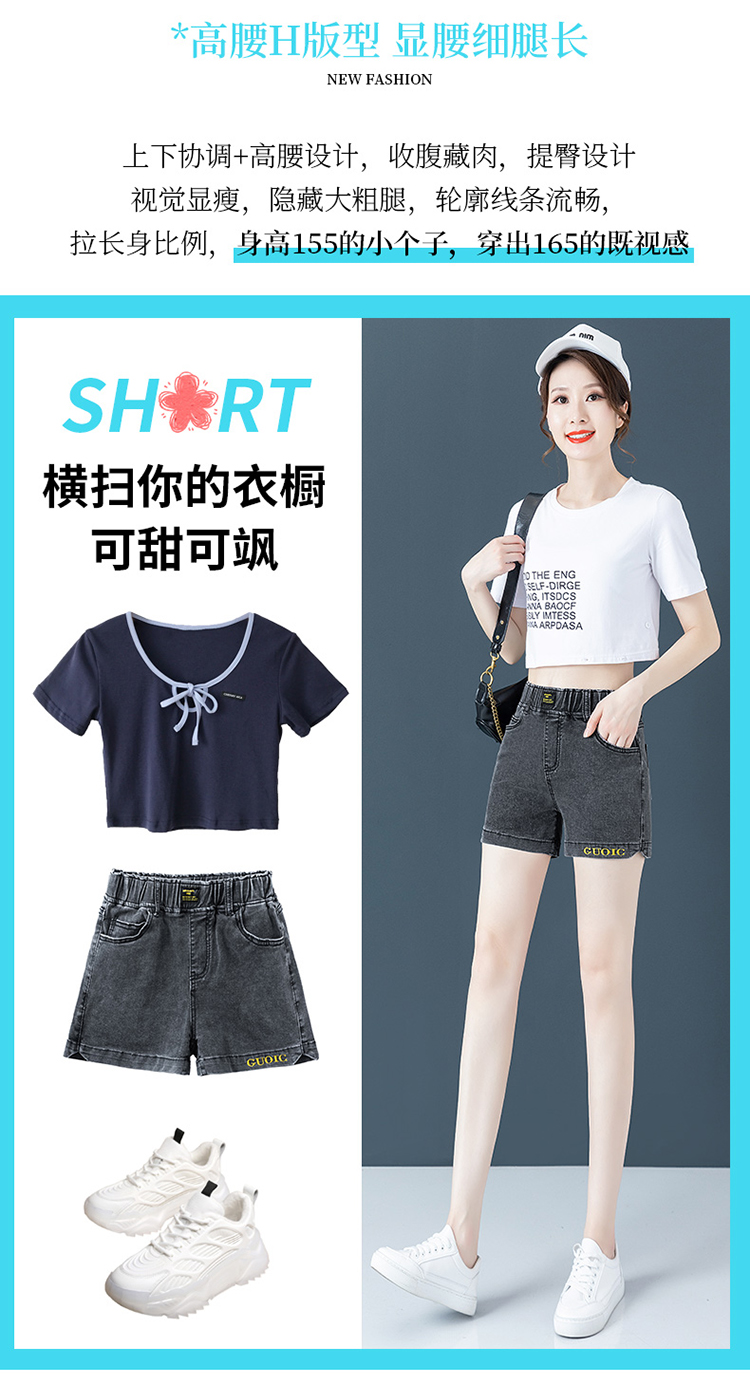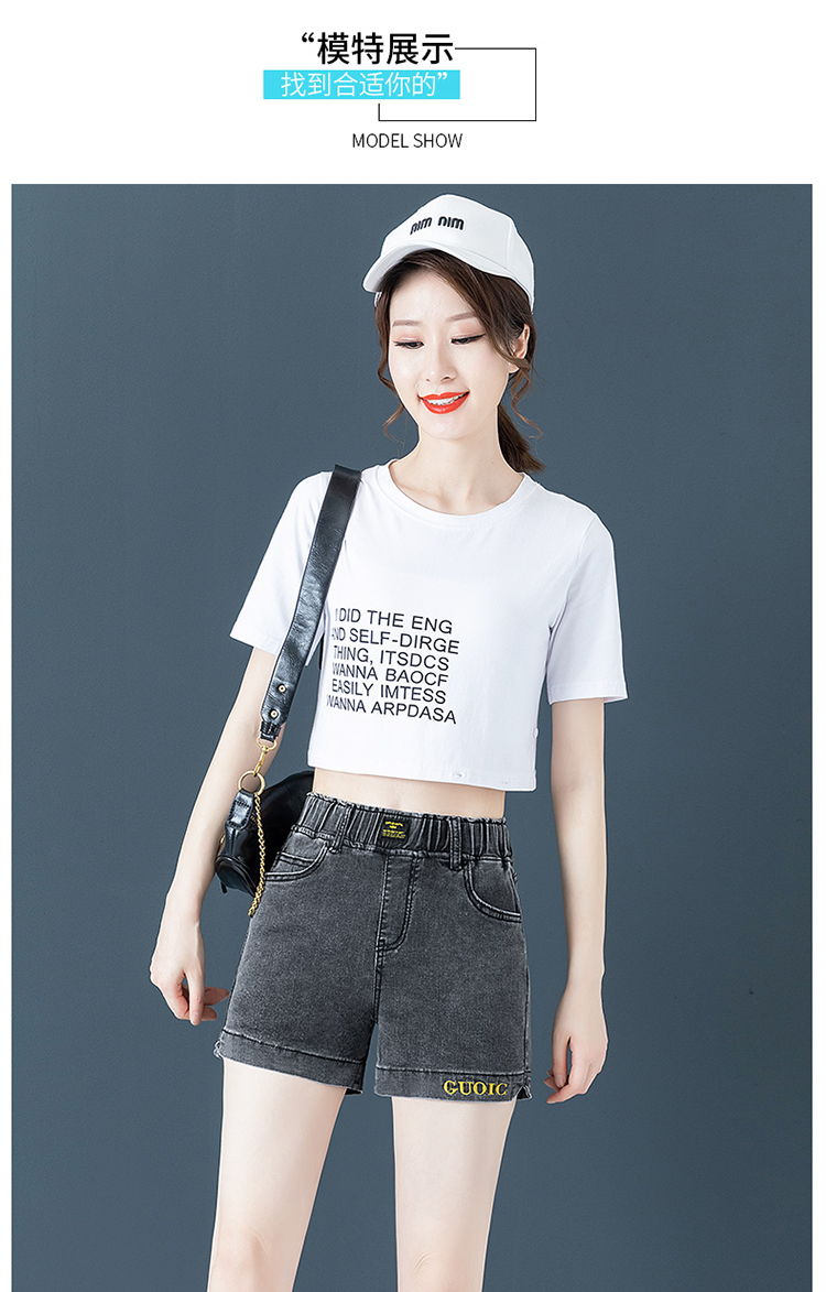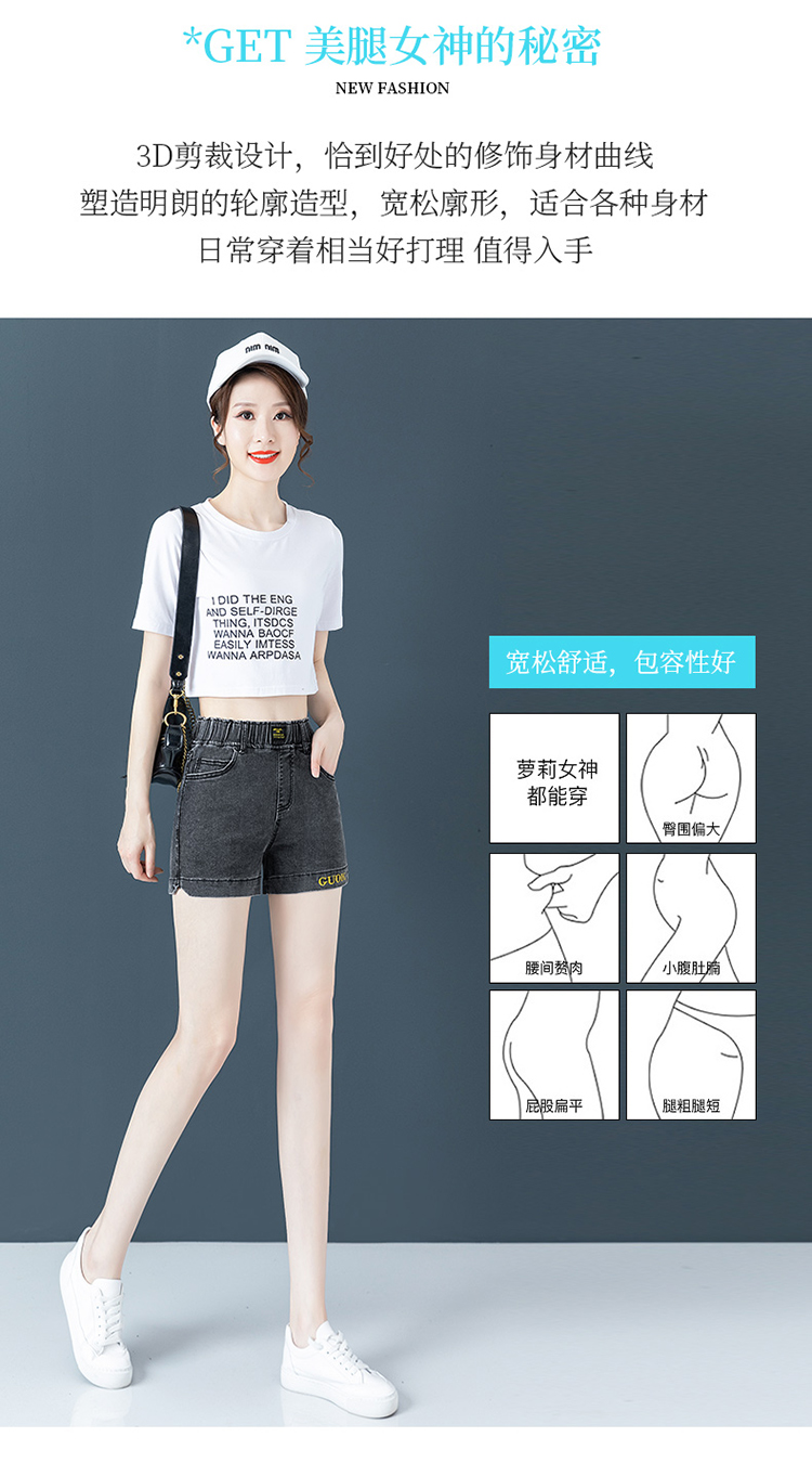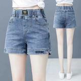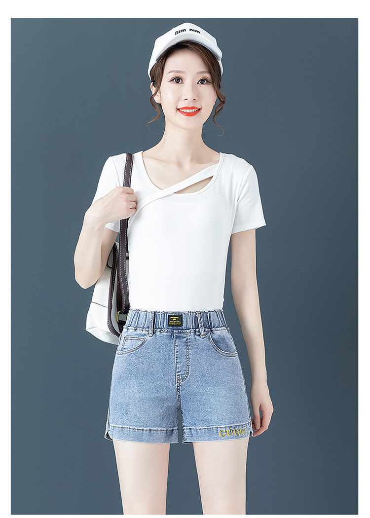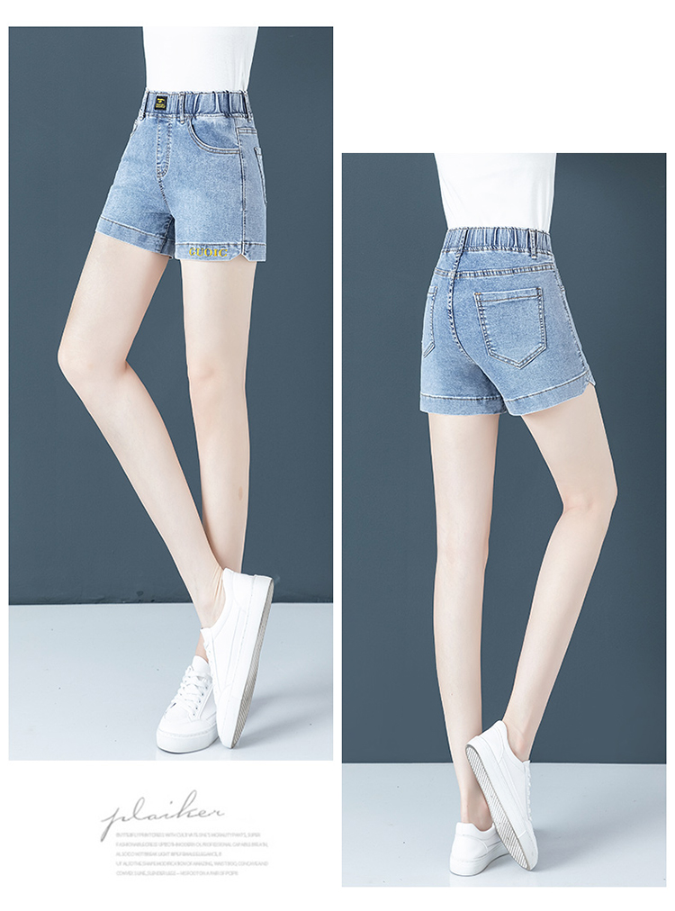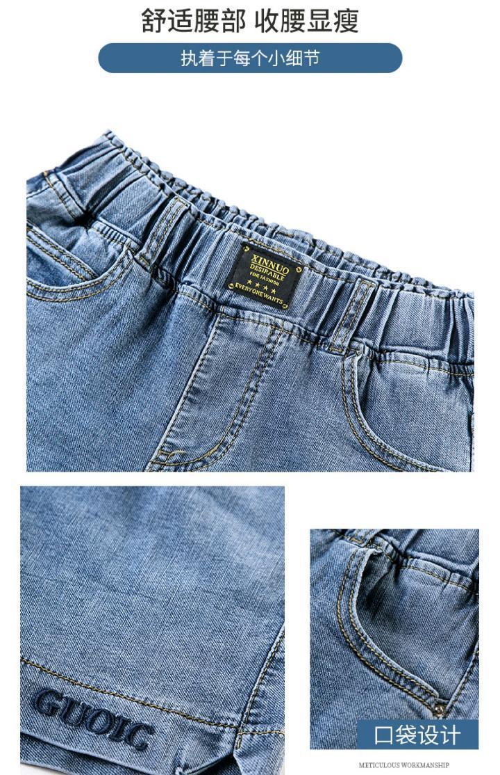 Джинсовая юбка, шорты, летние тонкие штаны, высокая талия, эластичная талия, с вышивкой, свободный крой, большой размер
