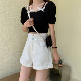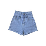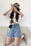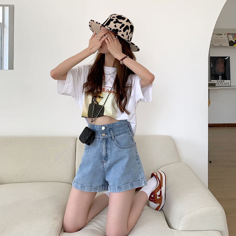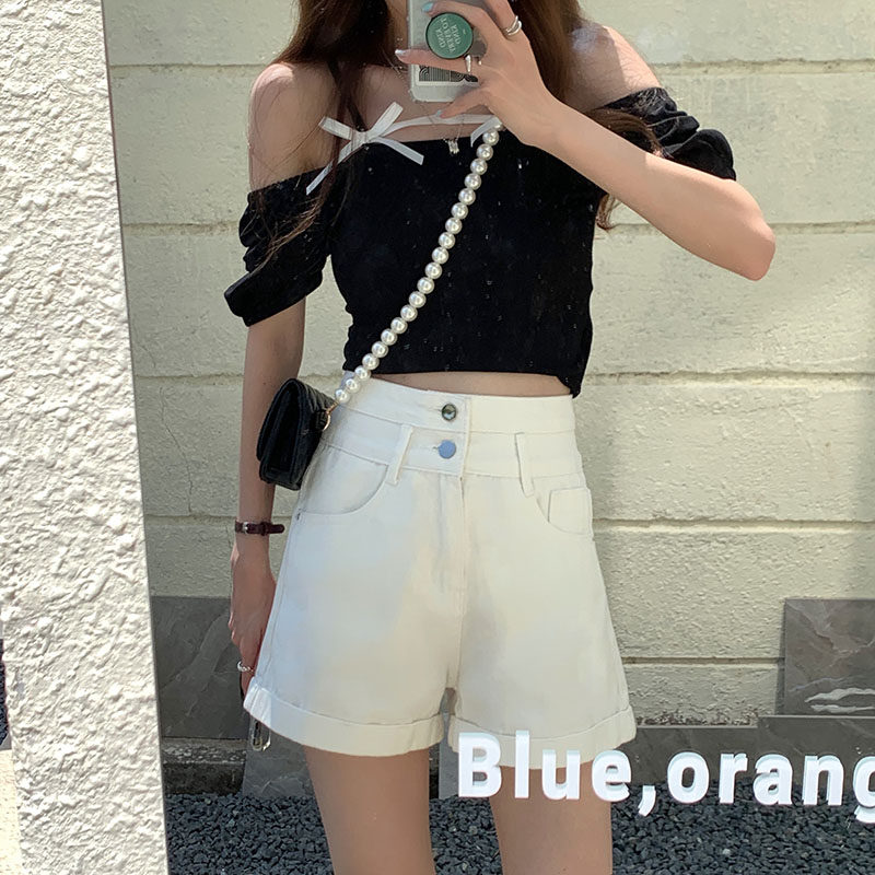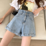 Джинсовая юбка, шорты, тонкие светлые штаны, коллекция 2023, высокая талия, свободный крой, А-силуэт