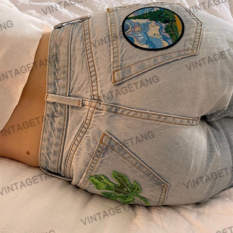 Ретро асимметричные джинсы, штаны, в американском стиле, по фигуре, высокая талия, свободный прямой крой