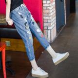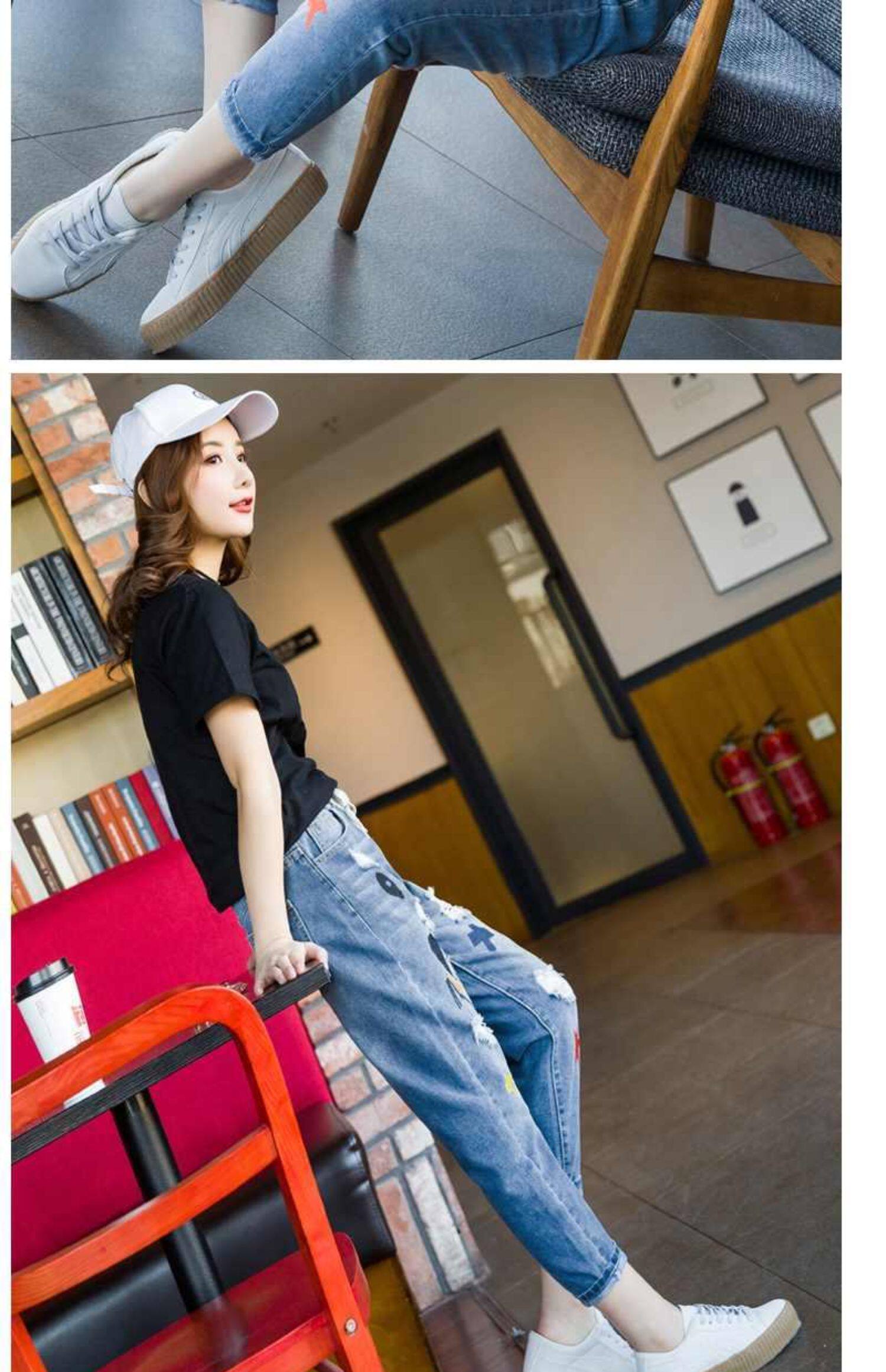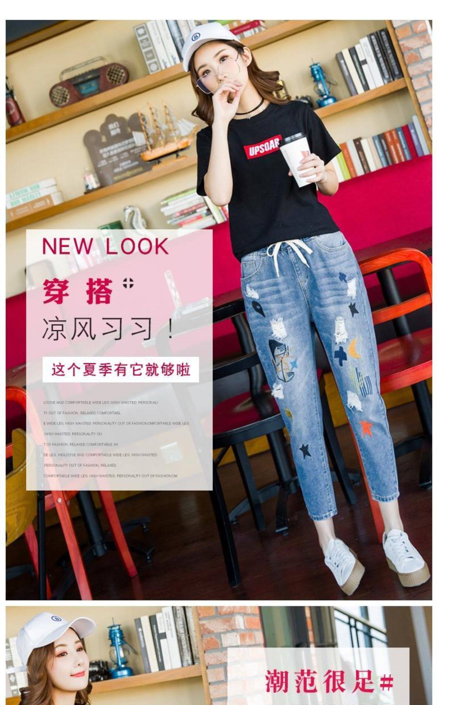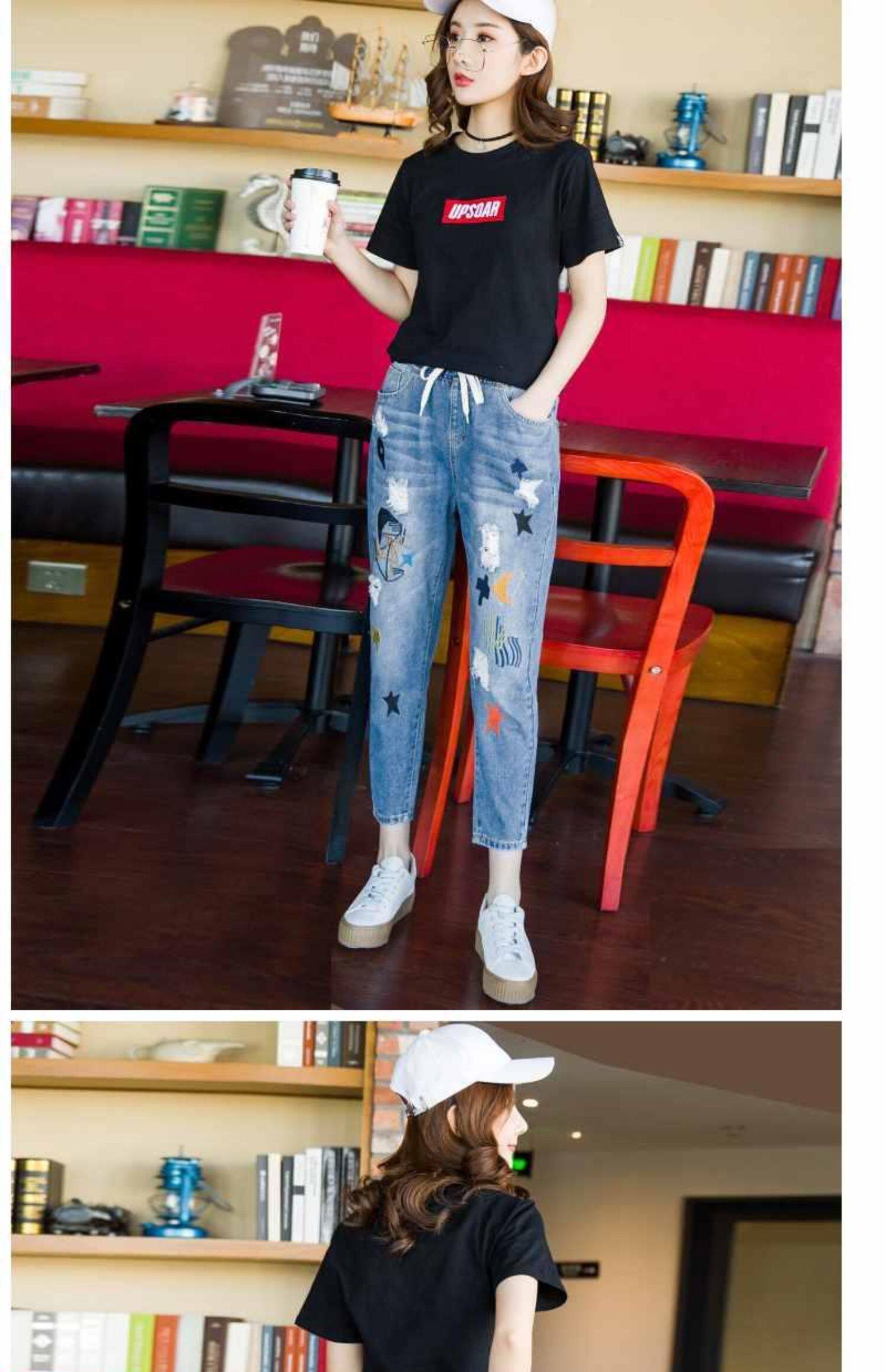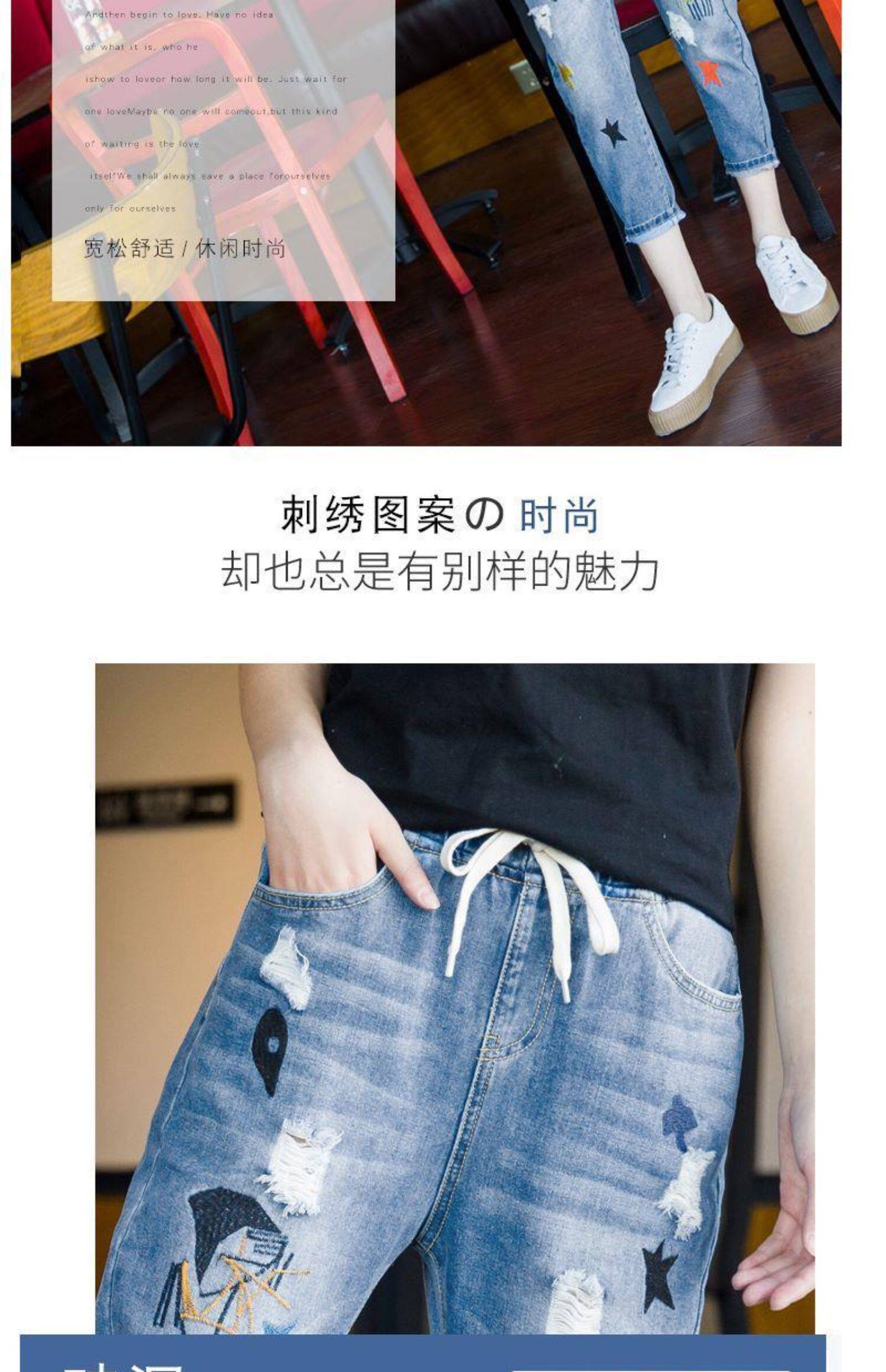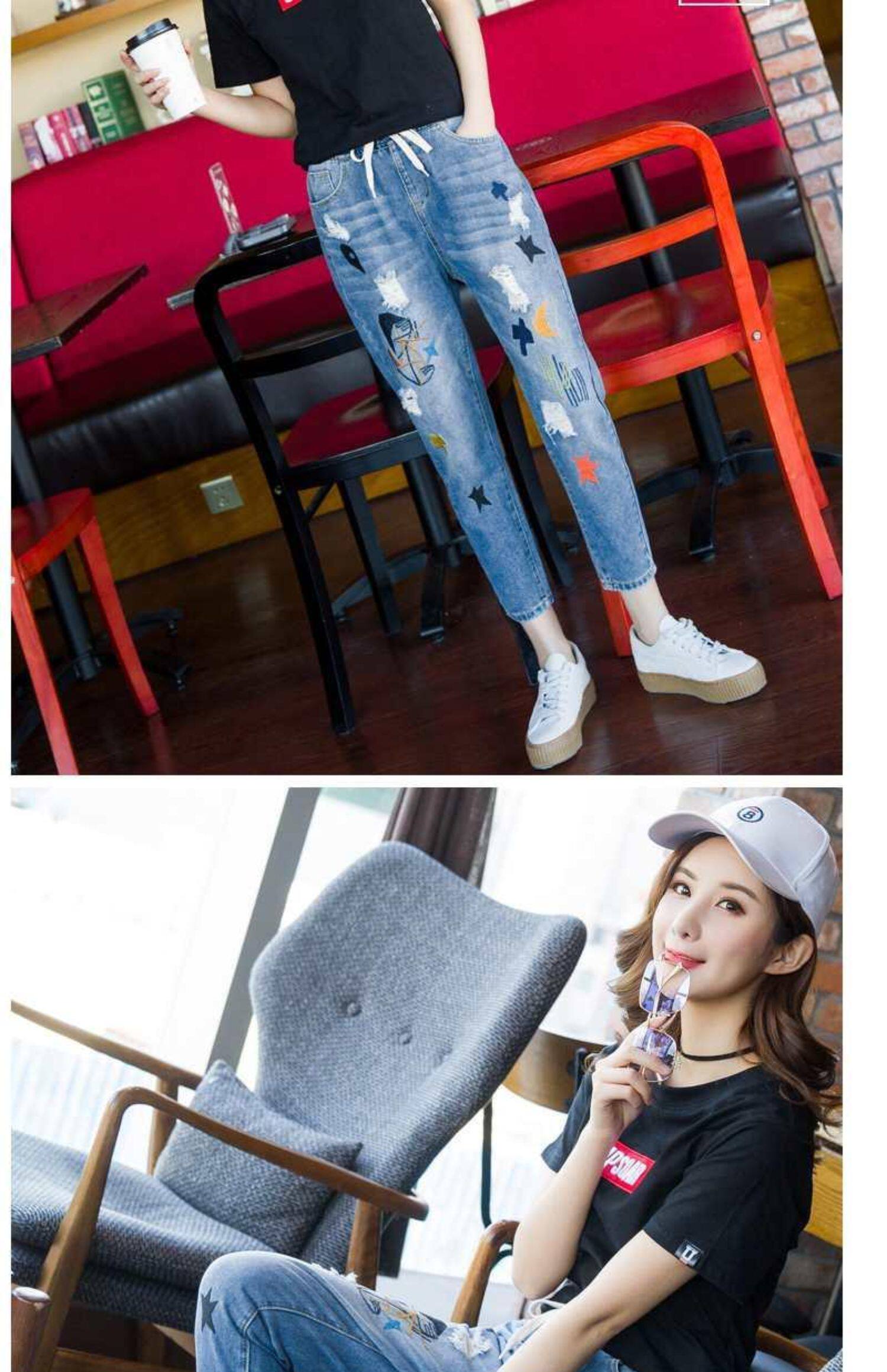 Джинсы, летние штаны, с вышивкой, эластичная талия, высокая талия, подходит для подростков