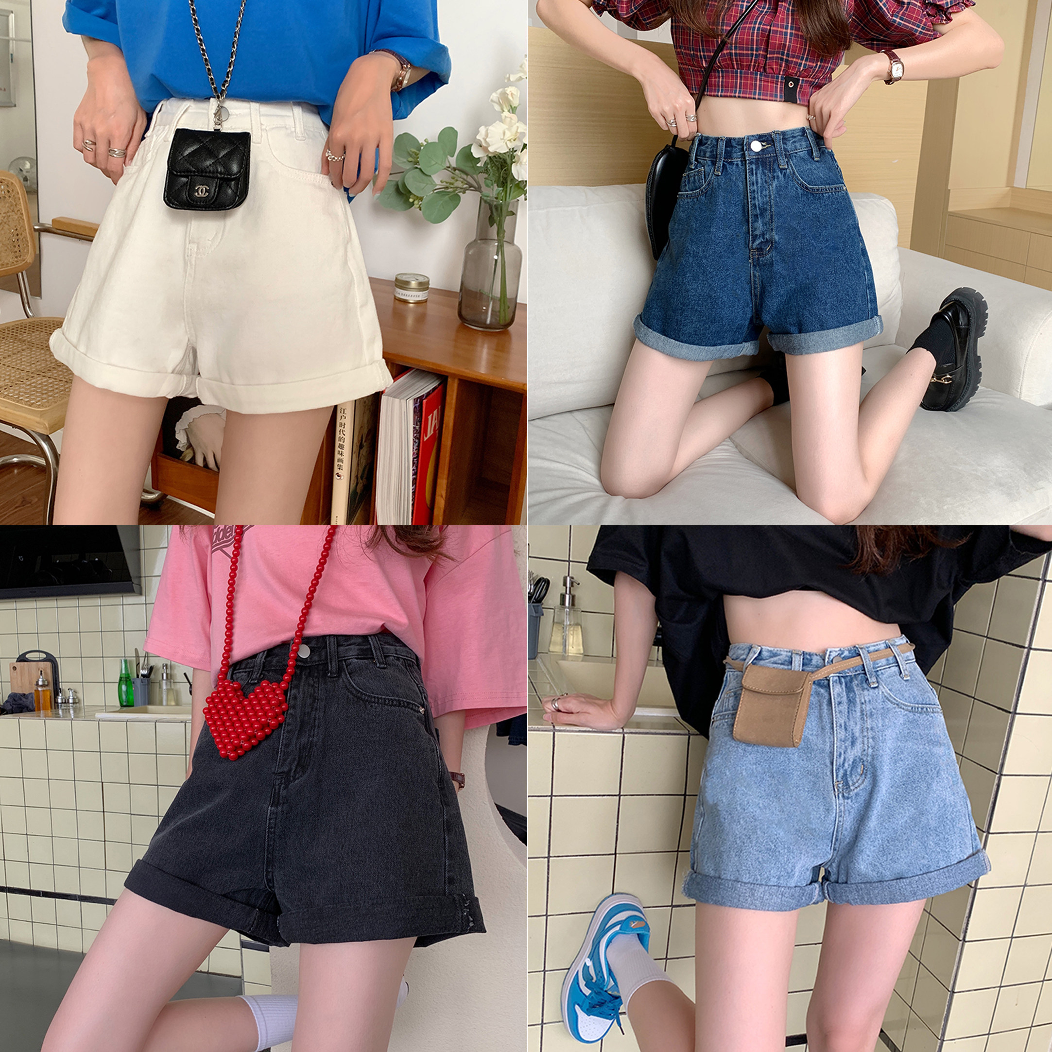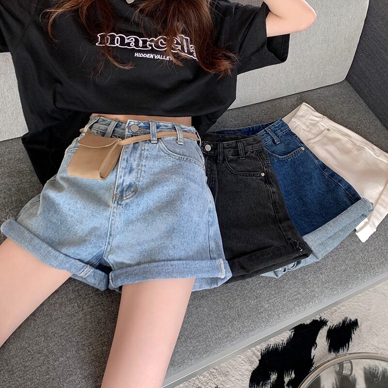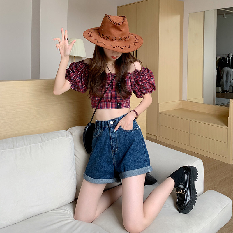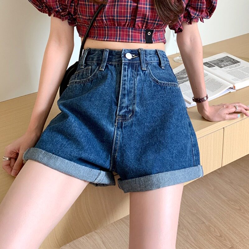 Летняя джинсовая юбка, шорты, тонкие ретро штаны, коллекция 2023, высокая талия, свободный прямой крой, А-силуэт