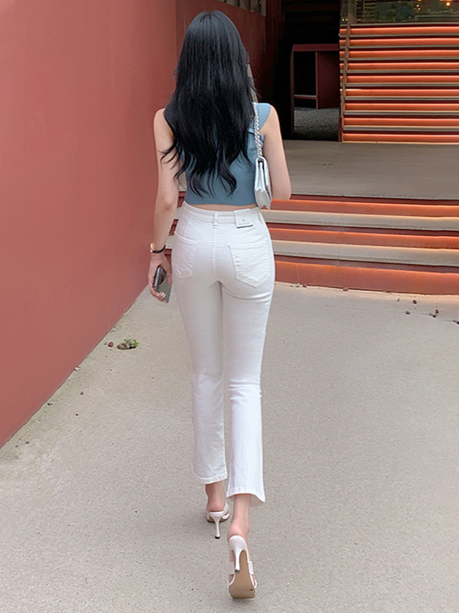 Бежевые осенние джинсы, штаны, эластичные штаны-клёш, коллекция 2023, новая коллекция, высокая талия, по фигуре