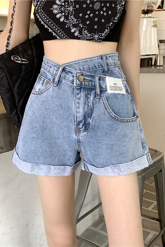 Осенние шорты, модные штаны, приталенные джинсы, в корейском стиле, коллекция 2022, высокая талия, свободный крой
