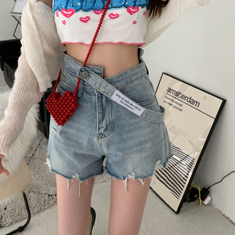 Летние приталенные дизайнерские модные тонкие джинсовые шорты, штаны, в корейском стиле, высокая талия, тренд сезона