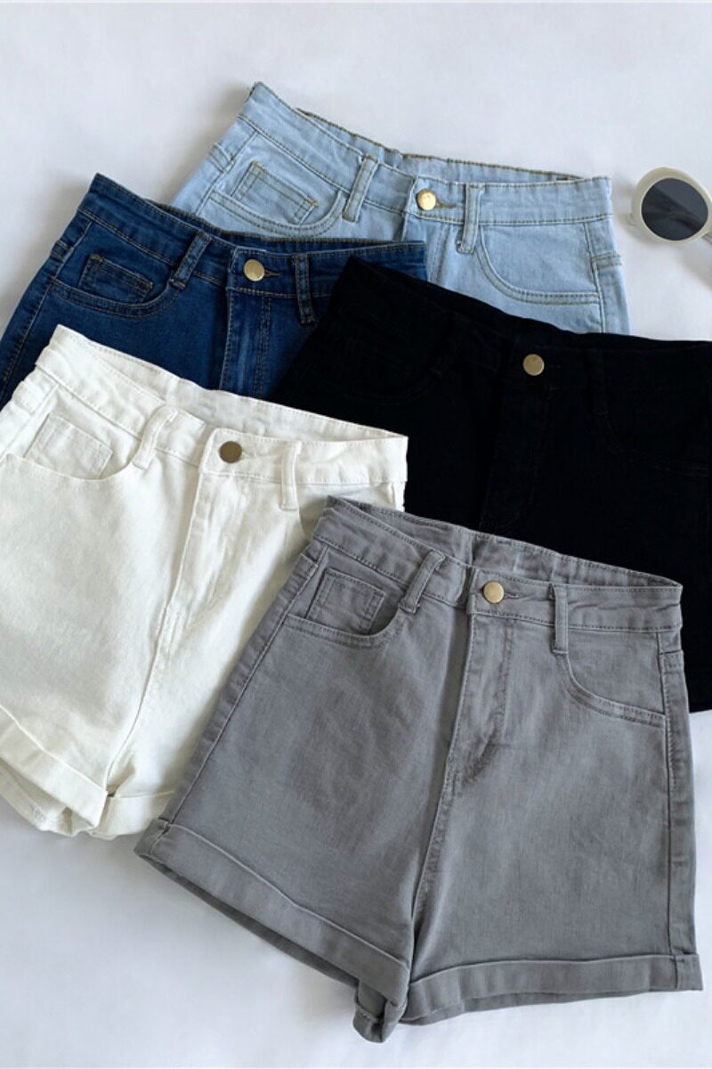 Джинсы, летние базовые штаны, классические эластичные шорты, сезон 2021, высокая талия