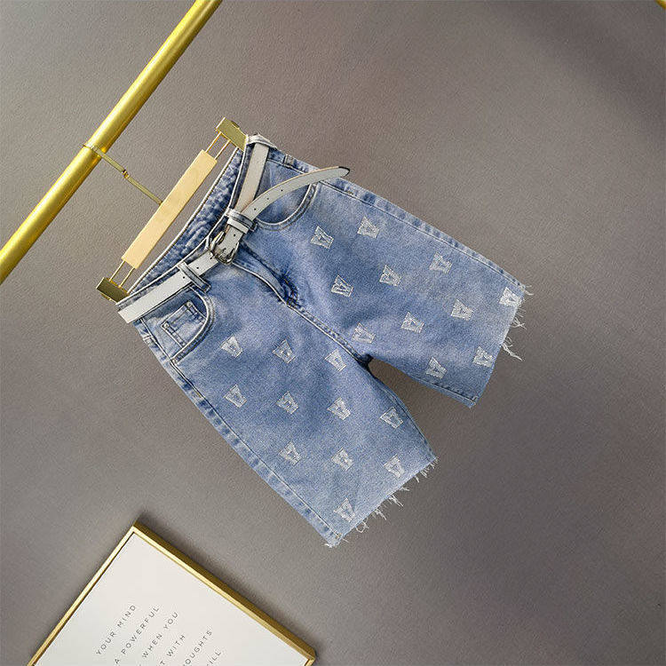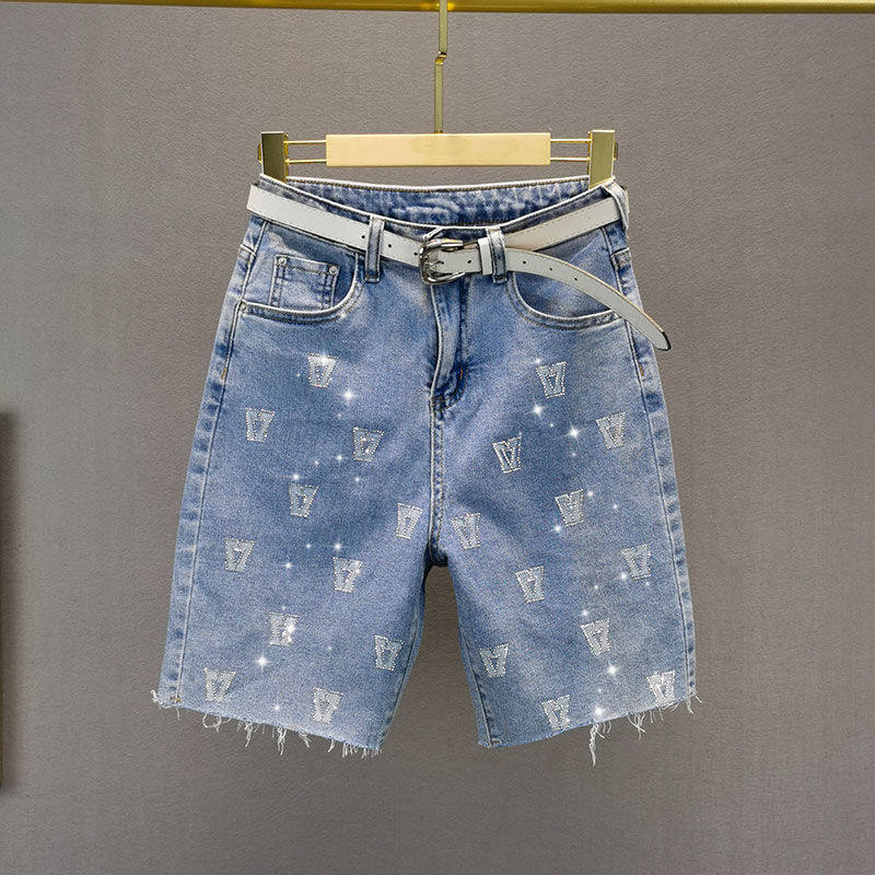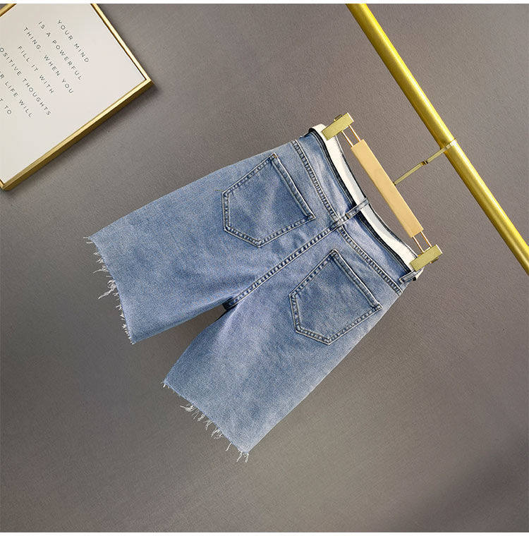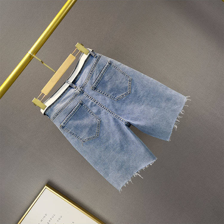 Брендовые синие джинсовые летние штаны, шорты, высокая талия, свободный крой