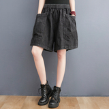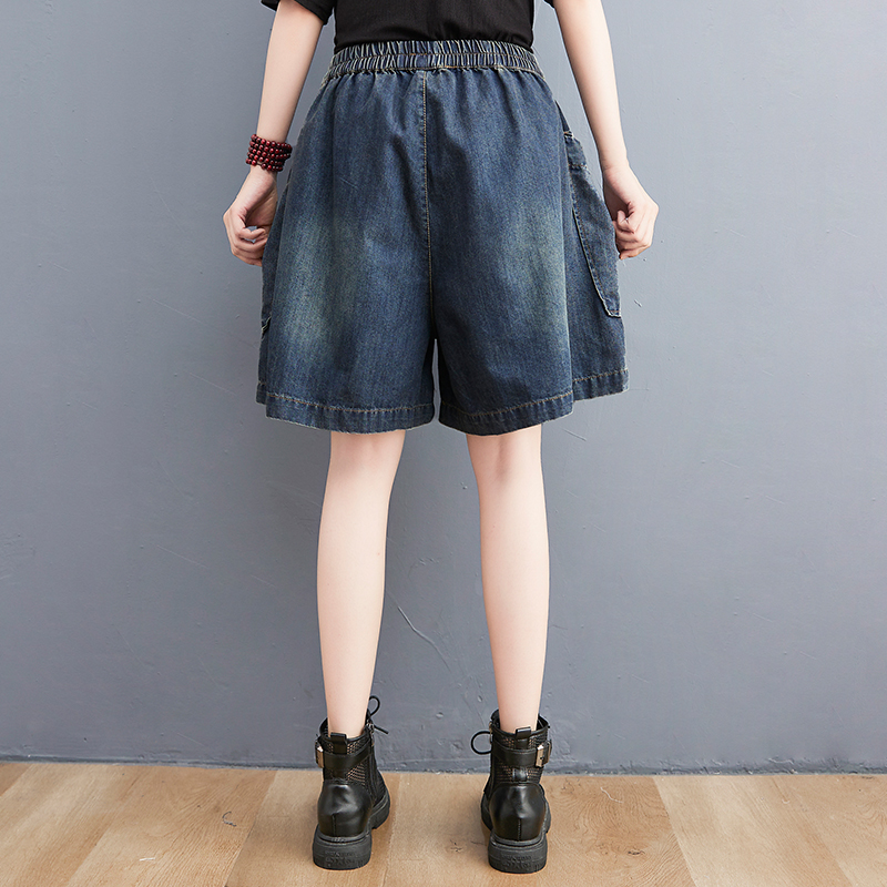 Джинсы, штаны, шорты для отдыха, высокая талия, оверсайз, свободный крой, большой размер, А-силуэт