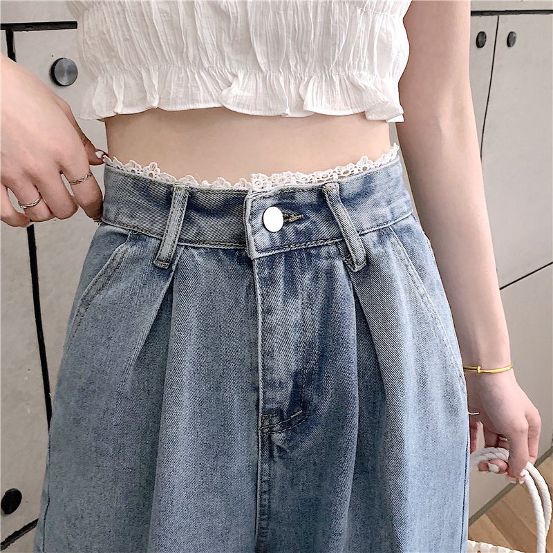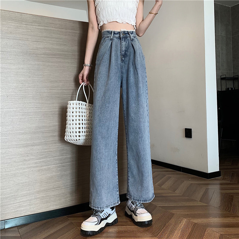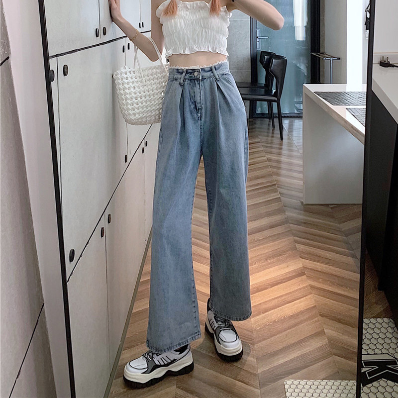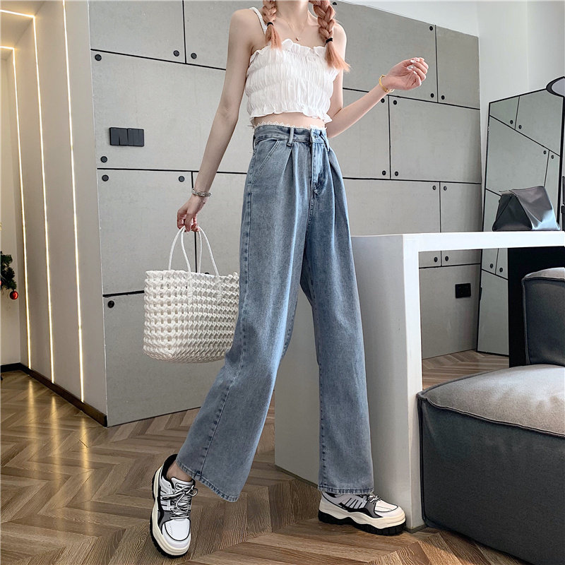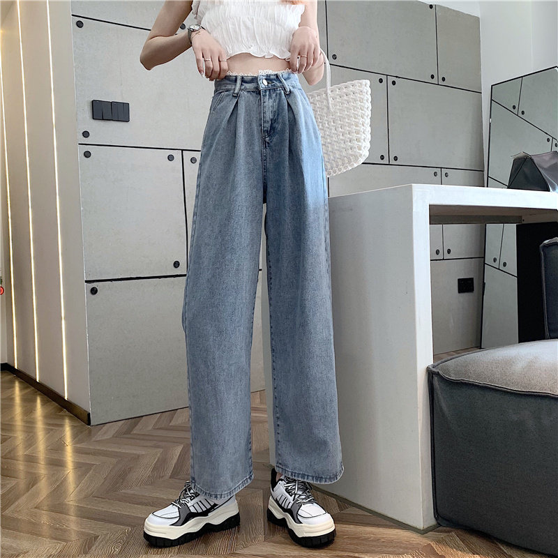 Штаны, весенние джинсы, высокая талия, 2025 года, большой размер, оверсайз, свободный прямой крой