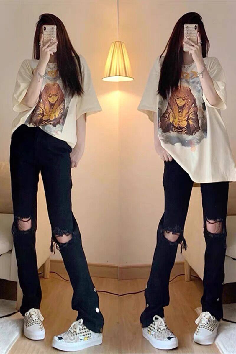 Tide, черные тонкие приталенные джинсы, штаны, высокая талия, свободный прямой крой