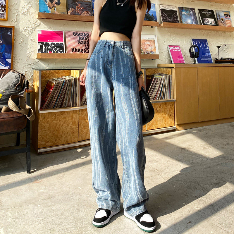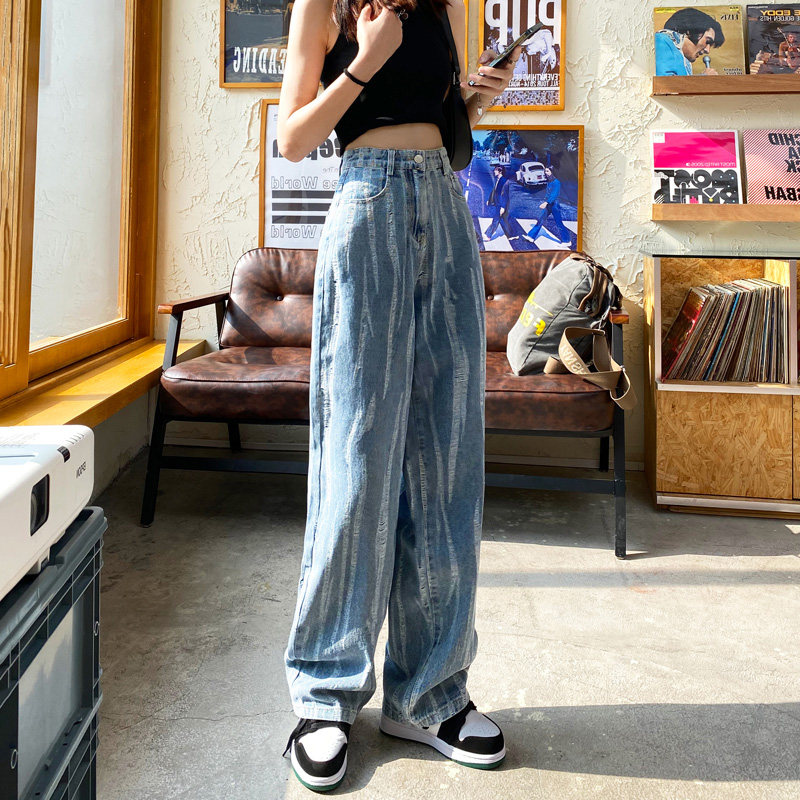 Тонкие джинсы, штаны, высокая талия, 2021 года, свободный прямой крой