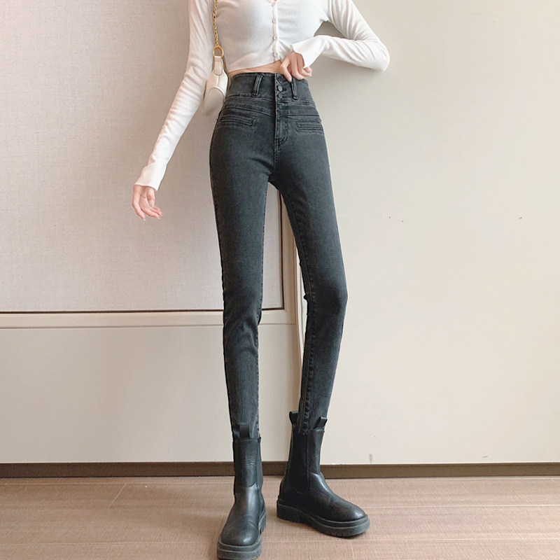 Весенние джинсы, штаны, эластичный комбинезон, коллекция 2022, высокая талия, по фигуре, в обтяжку