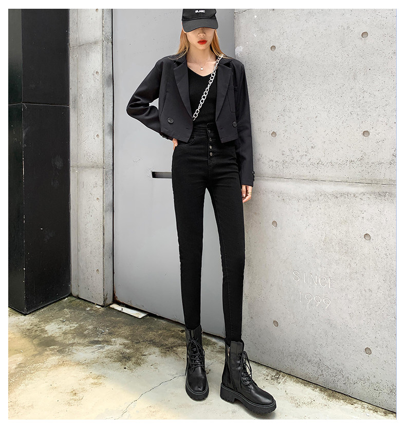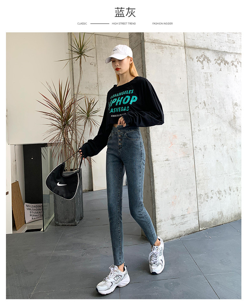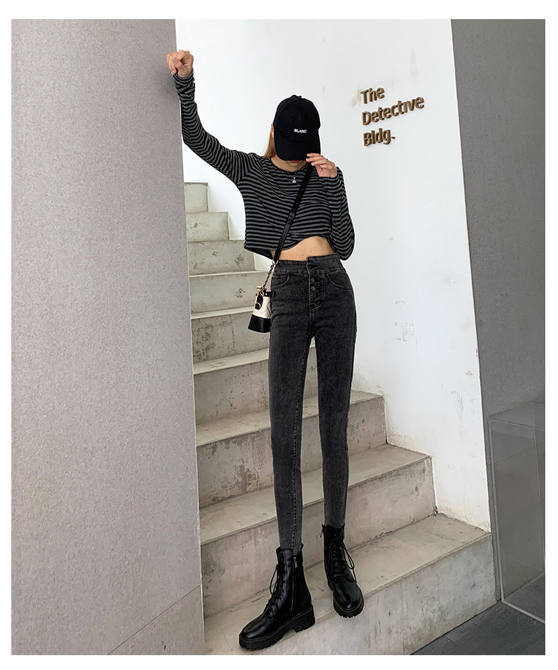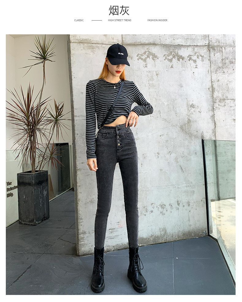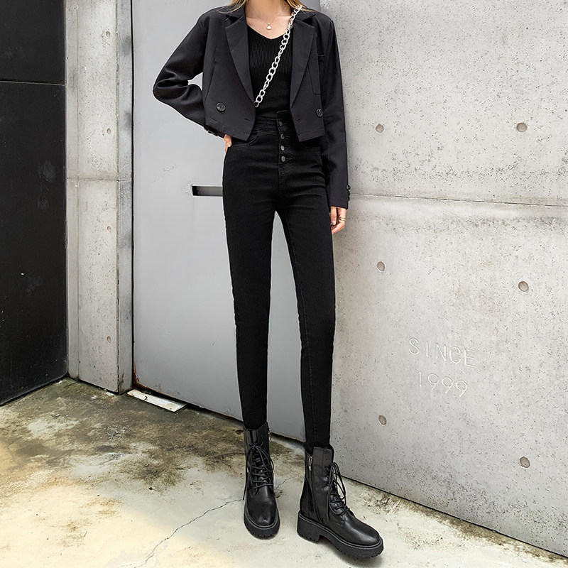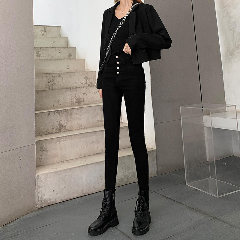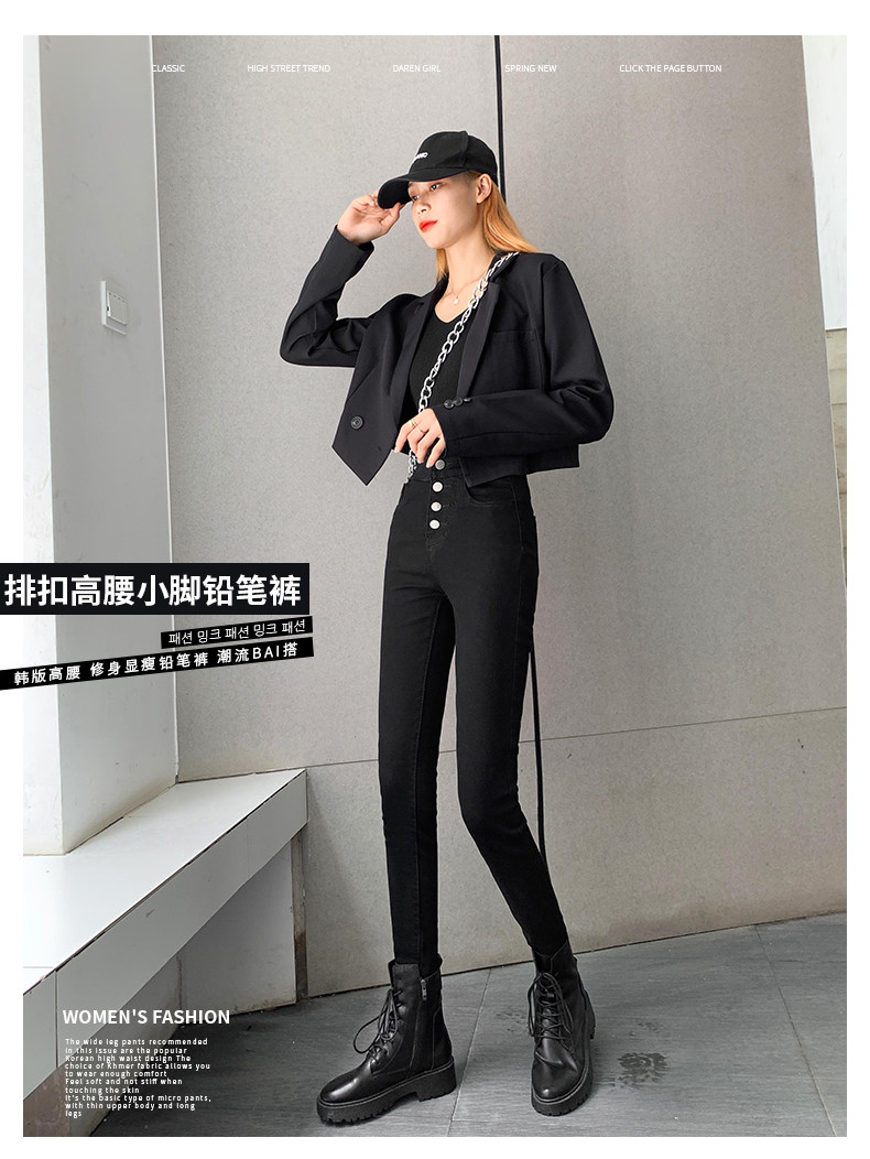 Tide, штаны, осенние джинсы, эластичный карандаш, комбинезон, высокая талия, по фигуре, в обтяжку