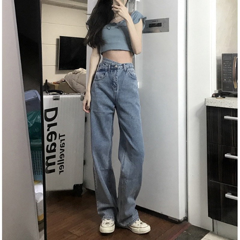 Tide, дизайнерские джинсовые тонкие штаны, тренд сезона, высокая талия, свободный прямой крой, стройный силуэт