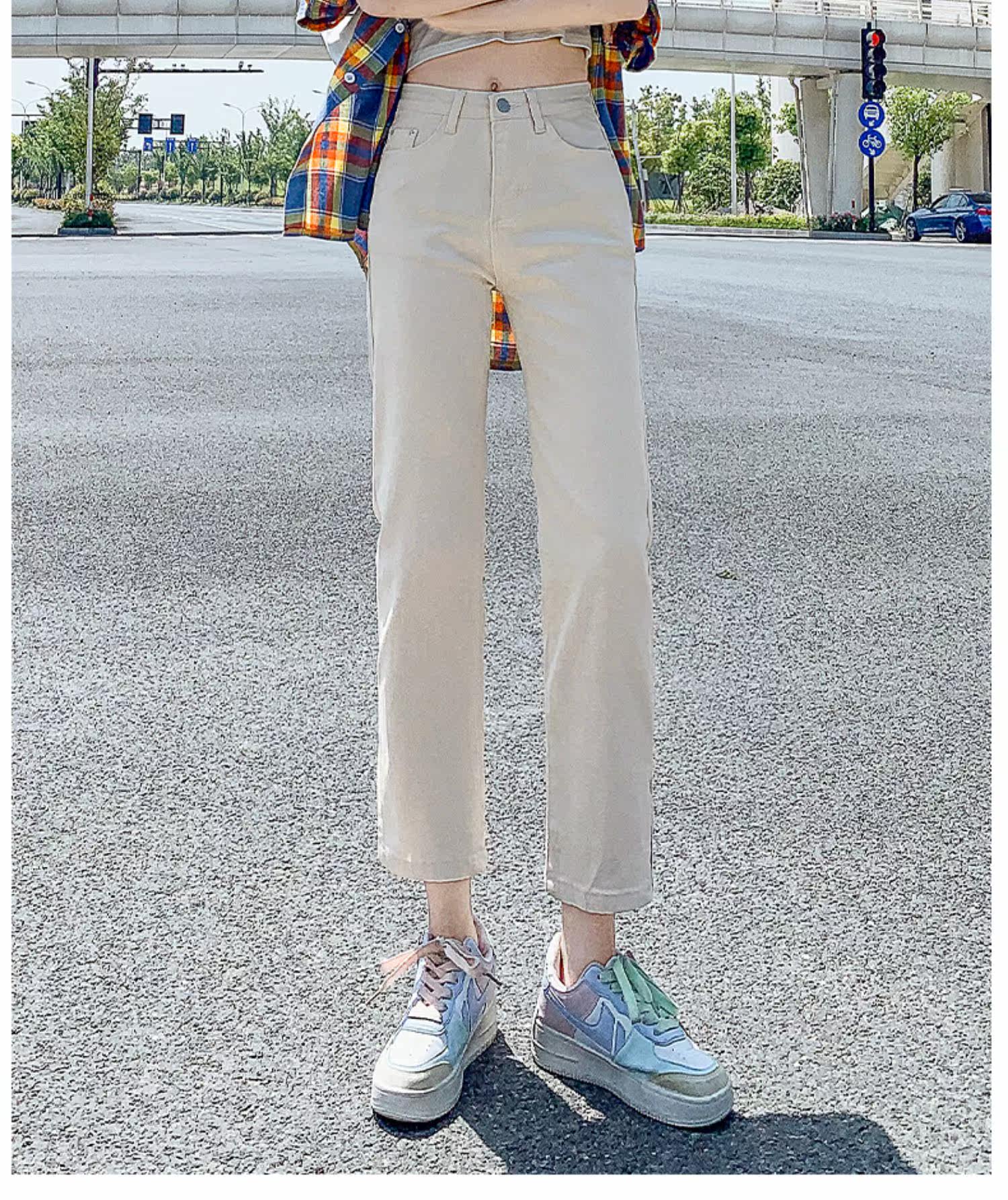Тонкие светлые цветные прямые свободные джинсы, приталенные штаны, подходят для подростков