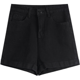 Черная цветная джинсовая юбка, шорты, летние тонкие штаны, высокая талия, коллекция 2022, по фигуре, свободный крой, А-силуэт