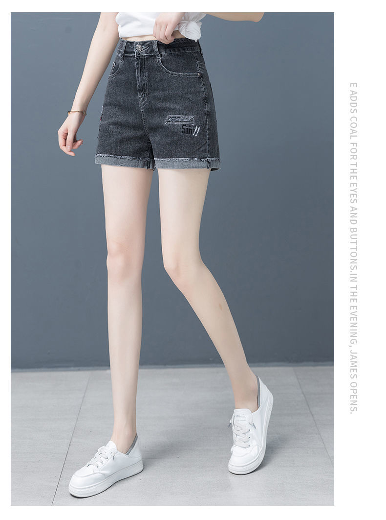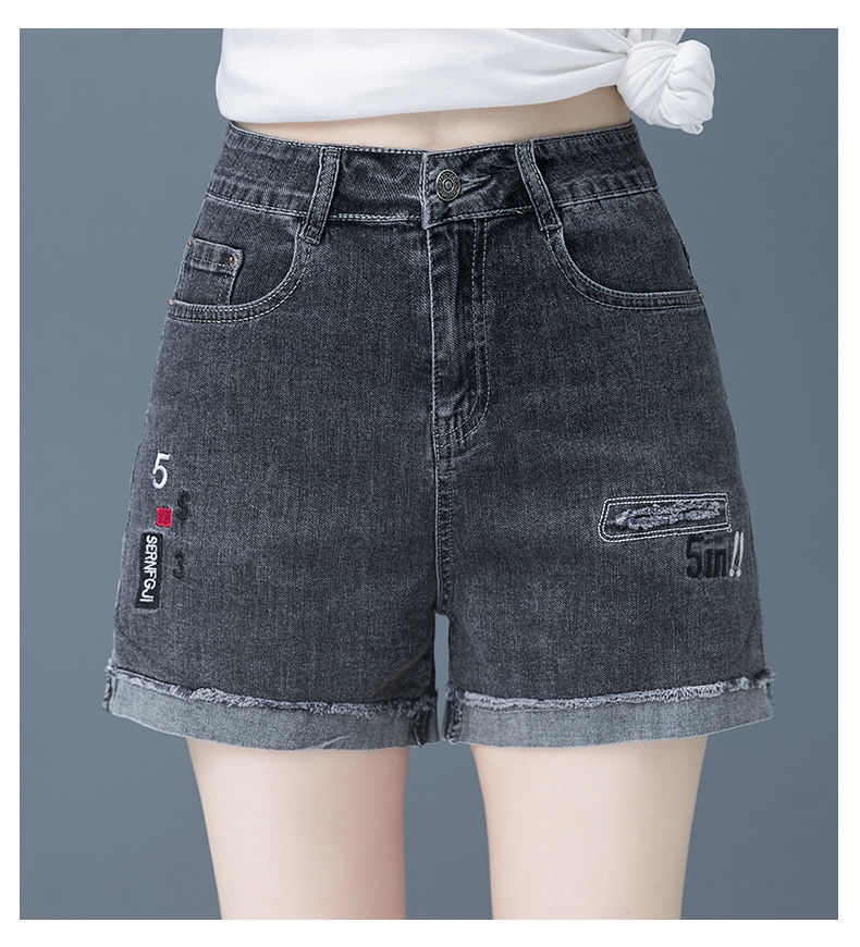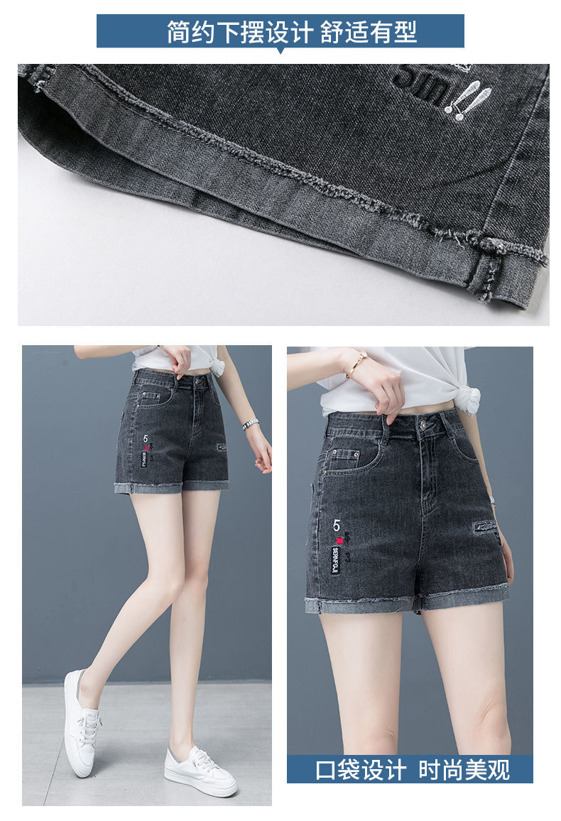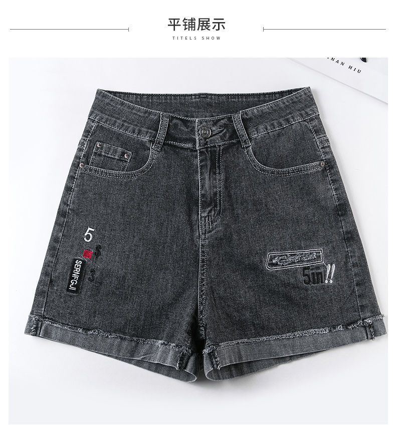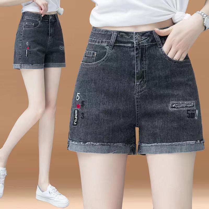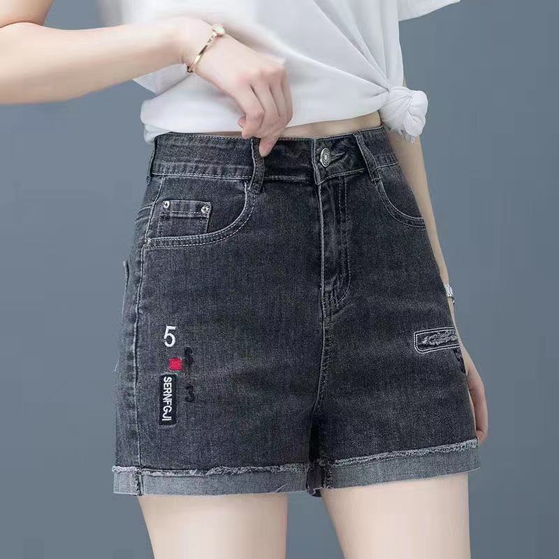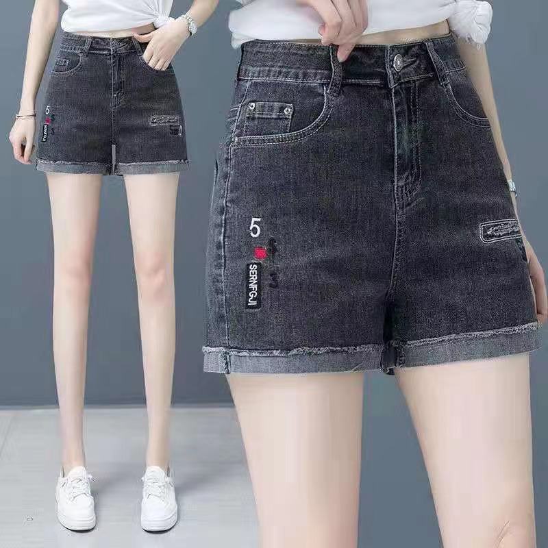 Джинсовая юбка, шорты, тонкие эластичные штаны, высокая талия, коллекция 2023, с вышивкой, свободный крой