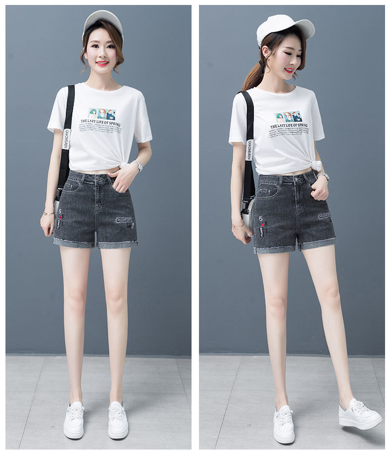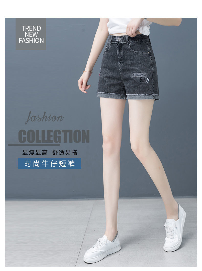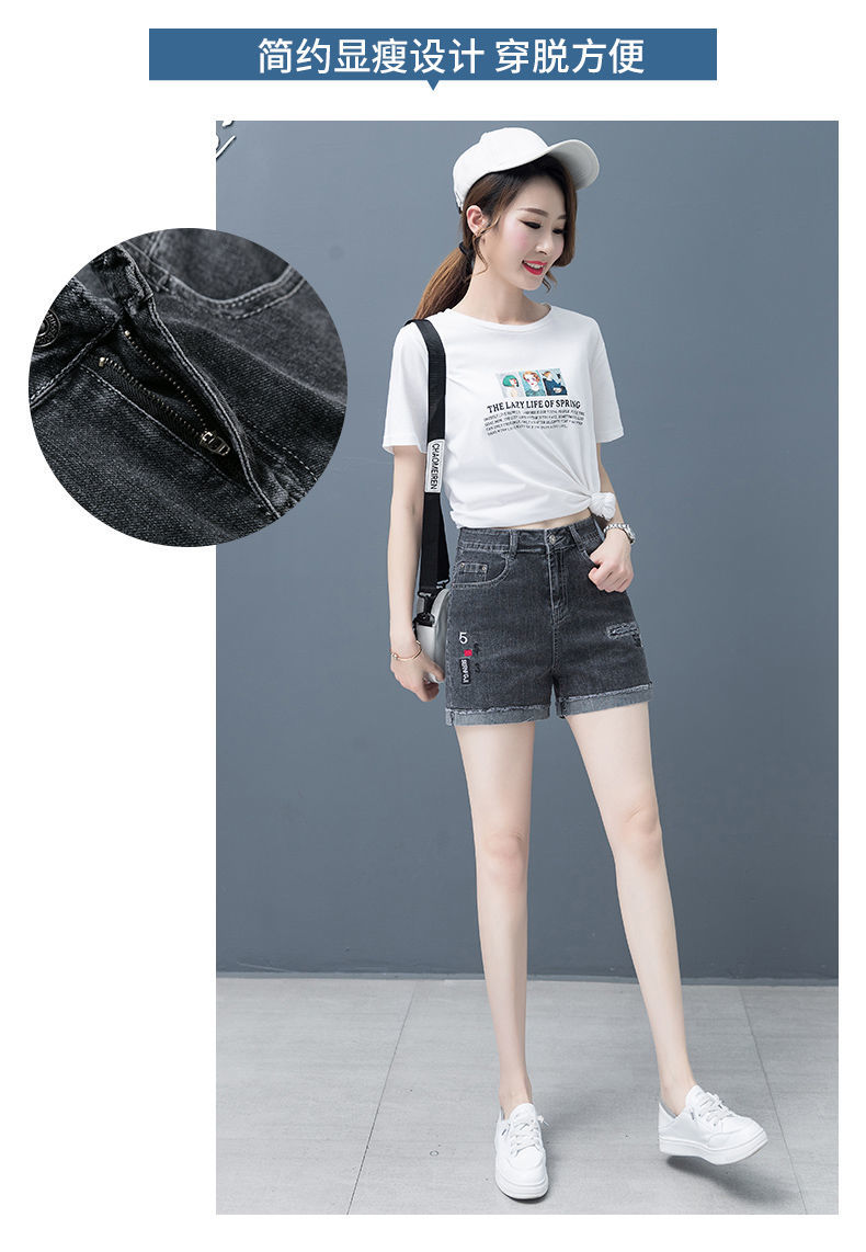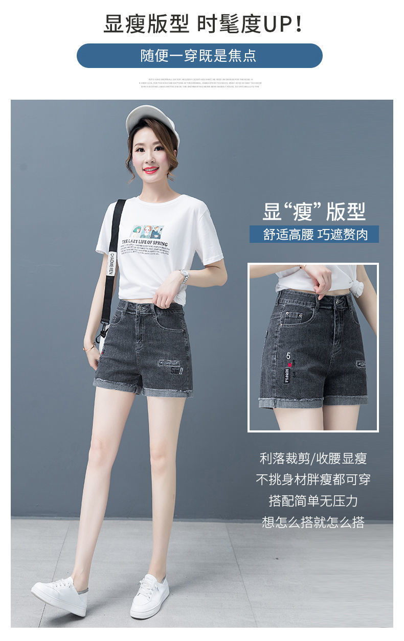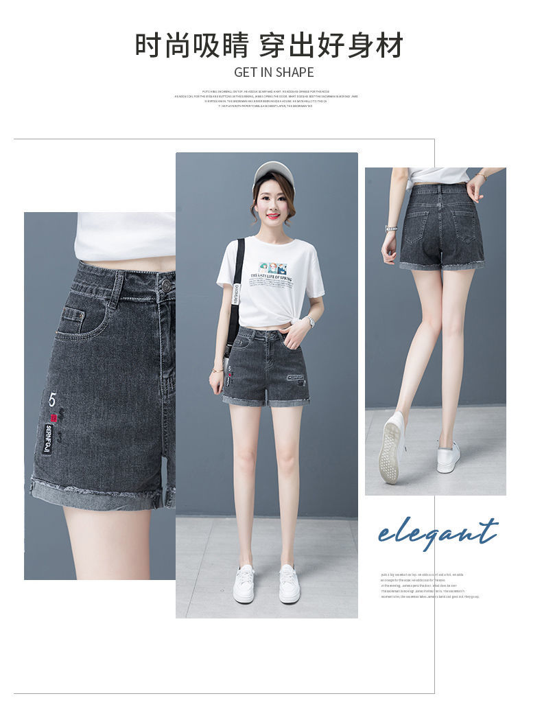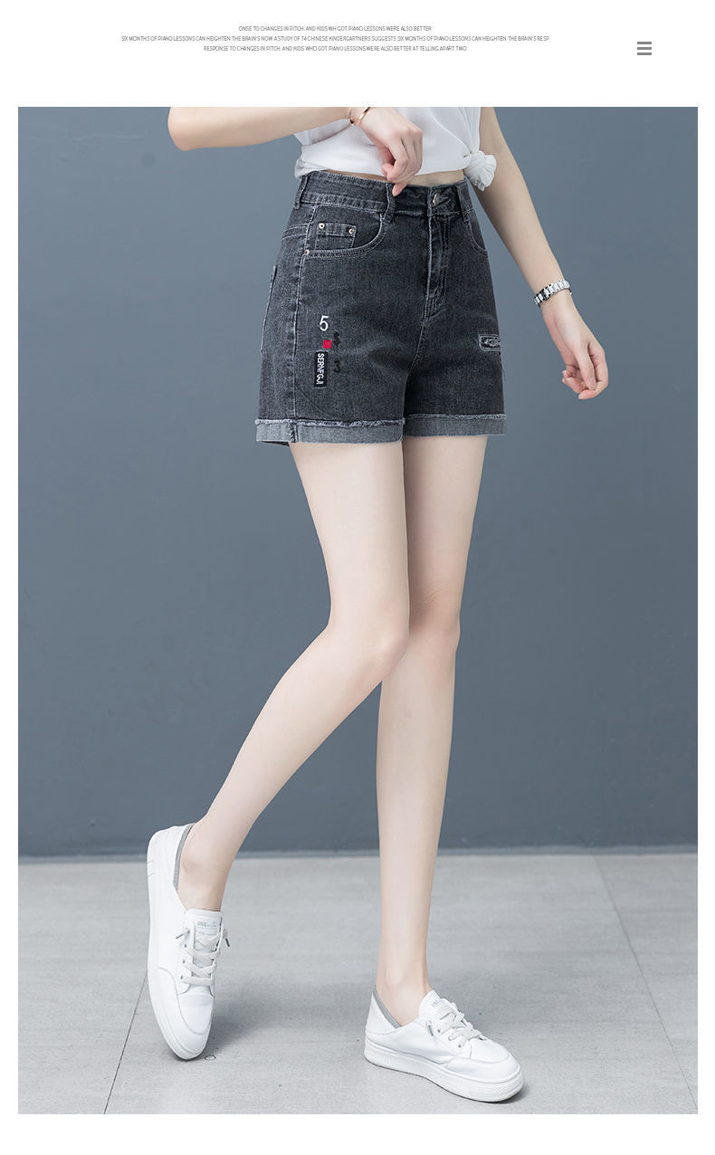 Джинсовая юбка, шорты, тонкие эластичные штаны, высокая талия, коллекция 2023, с вышивкой, свободный крой