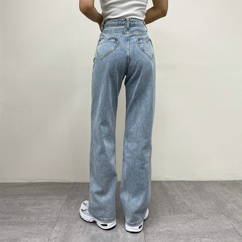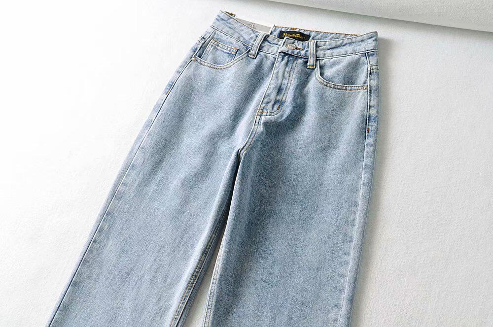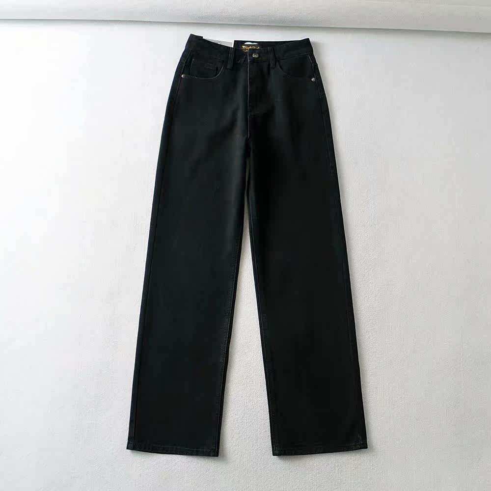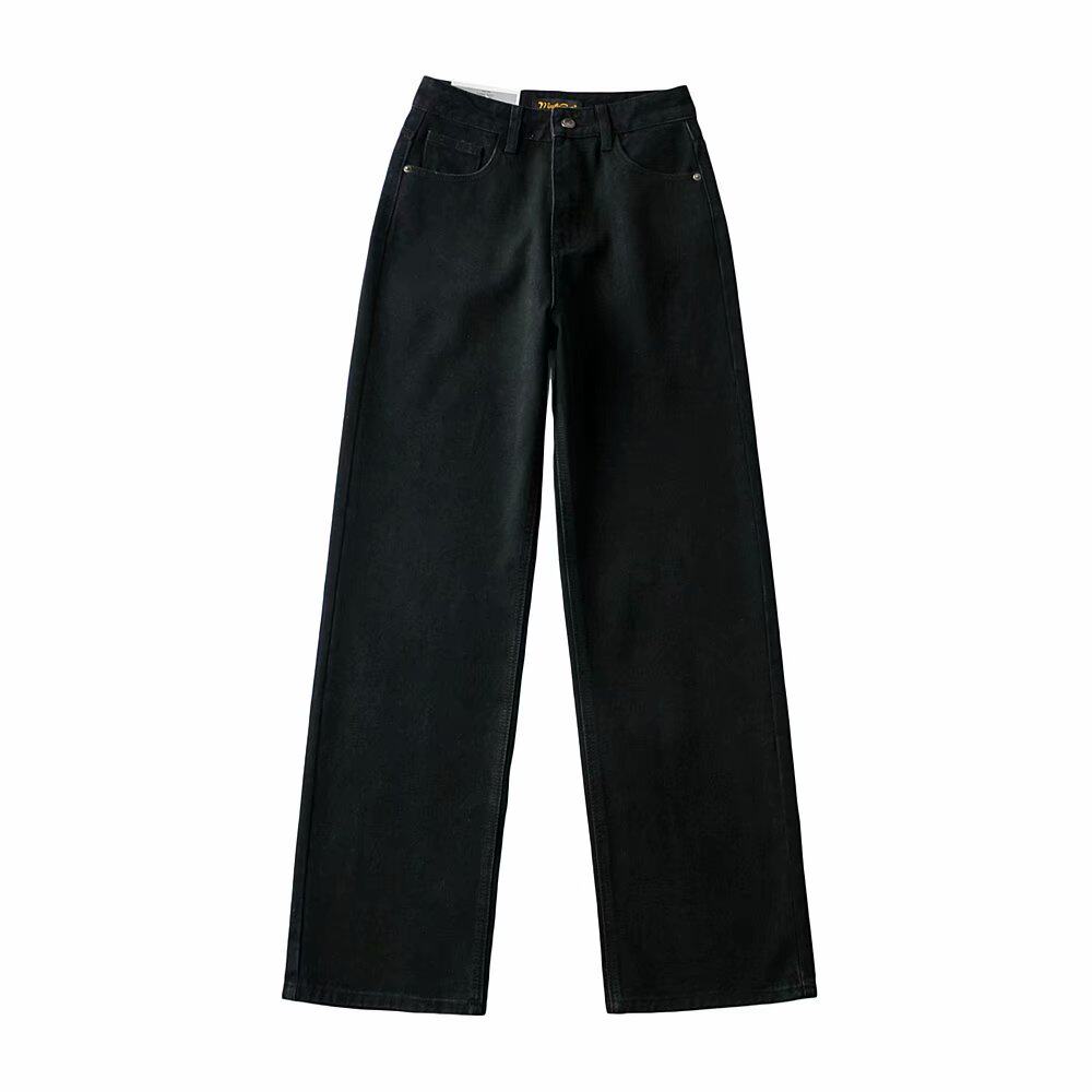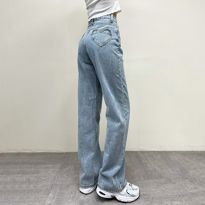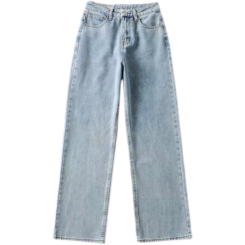 Ретро штаны, длинные джинсы, в американском стиле, по фигуре, свободный прямой крой, высокая талия