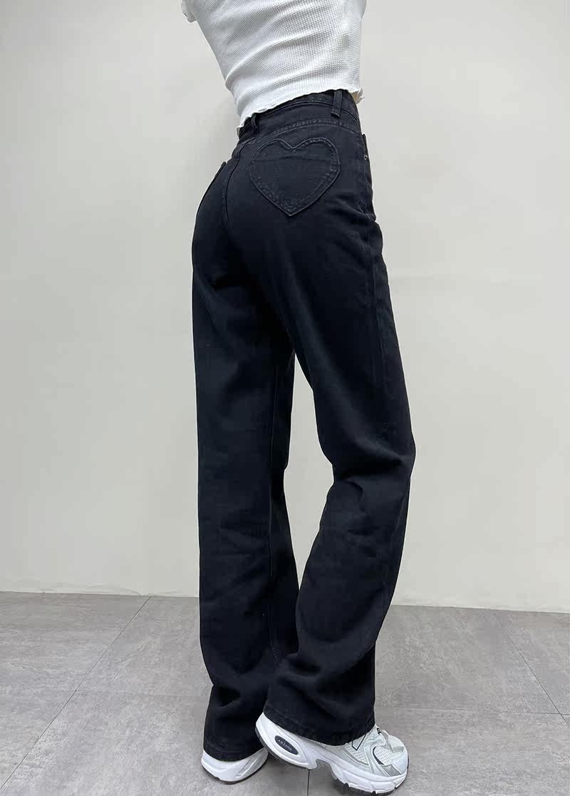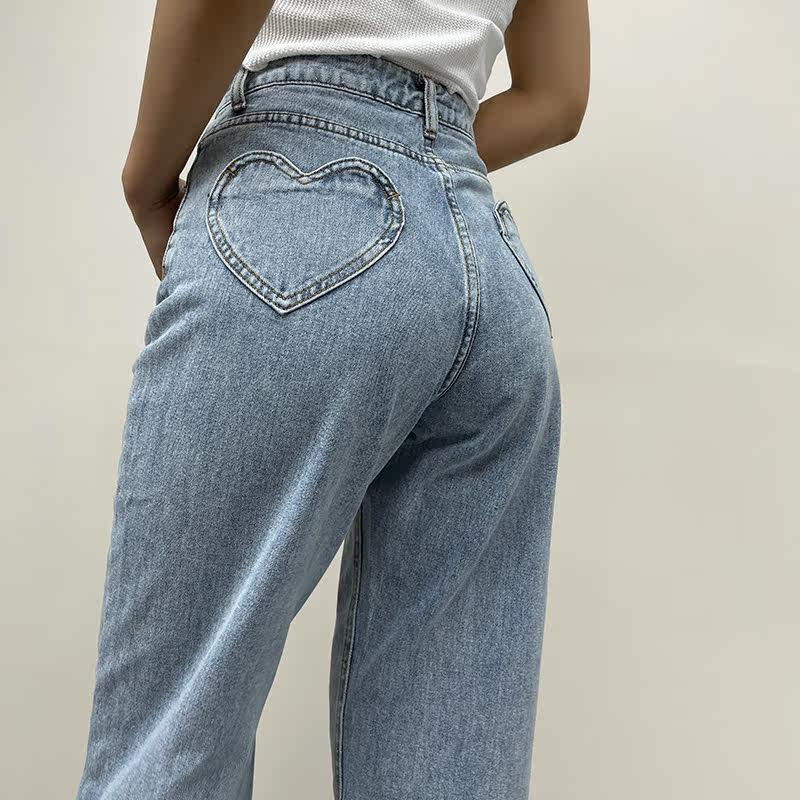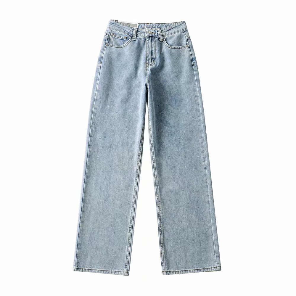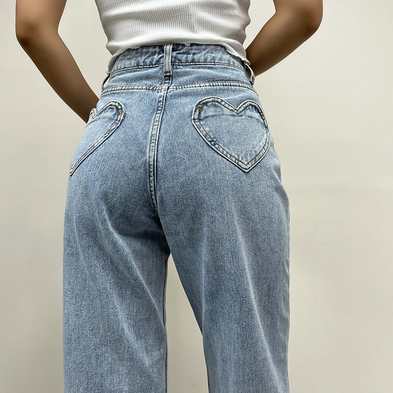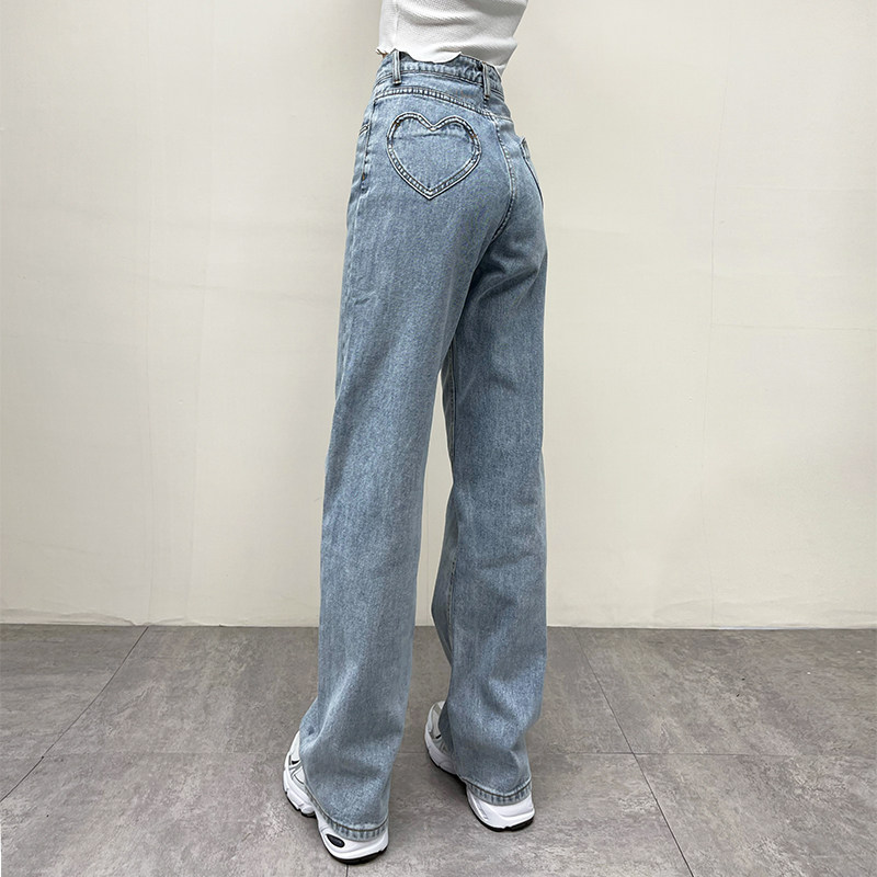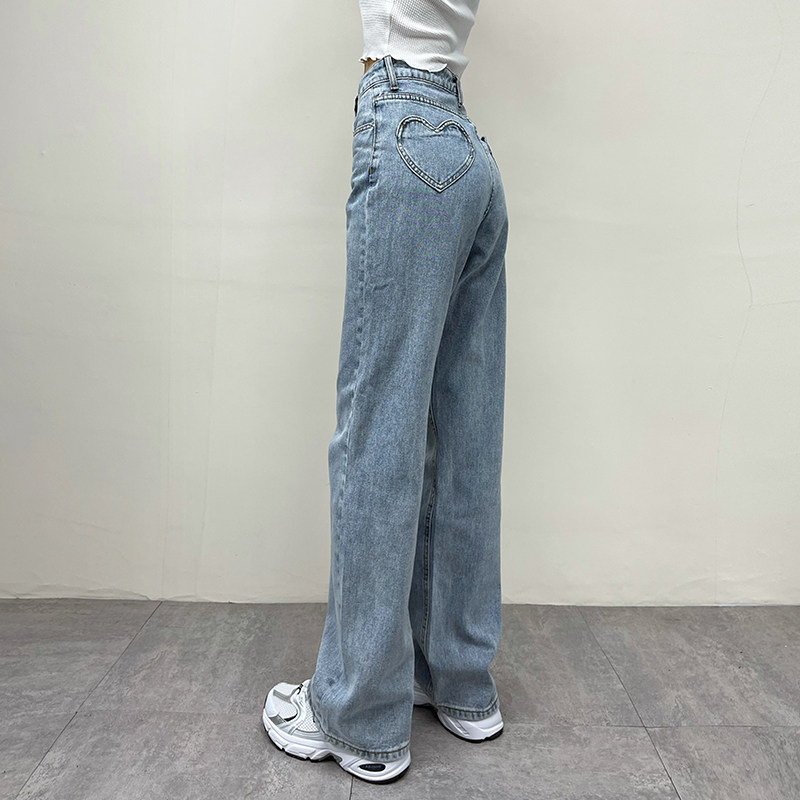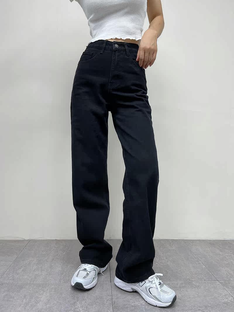 Ретро штаны, длинные джинсы, в американском стиле, по фигуре, свободный прямой крой, высокая талия