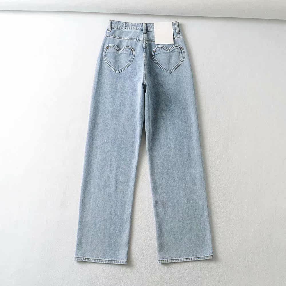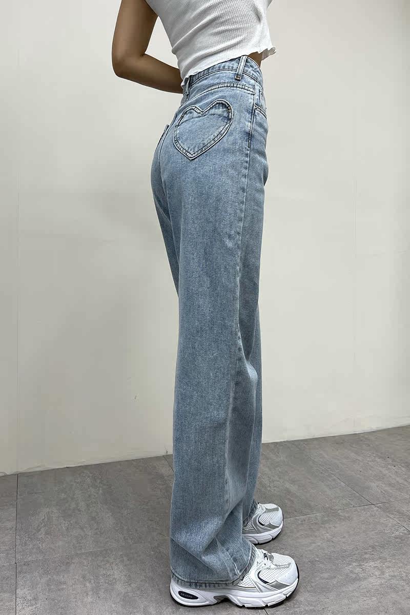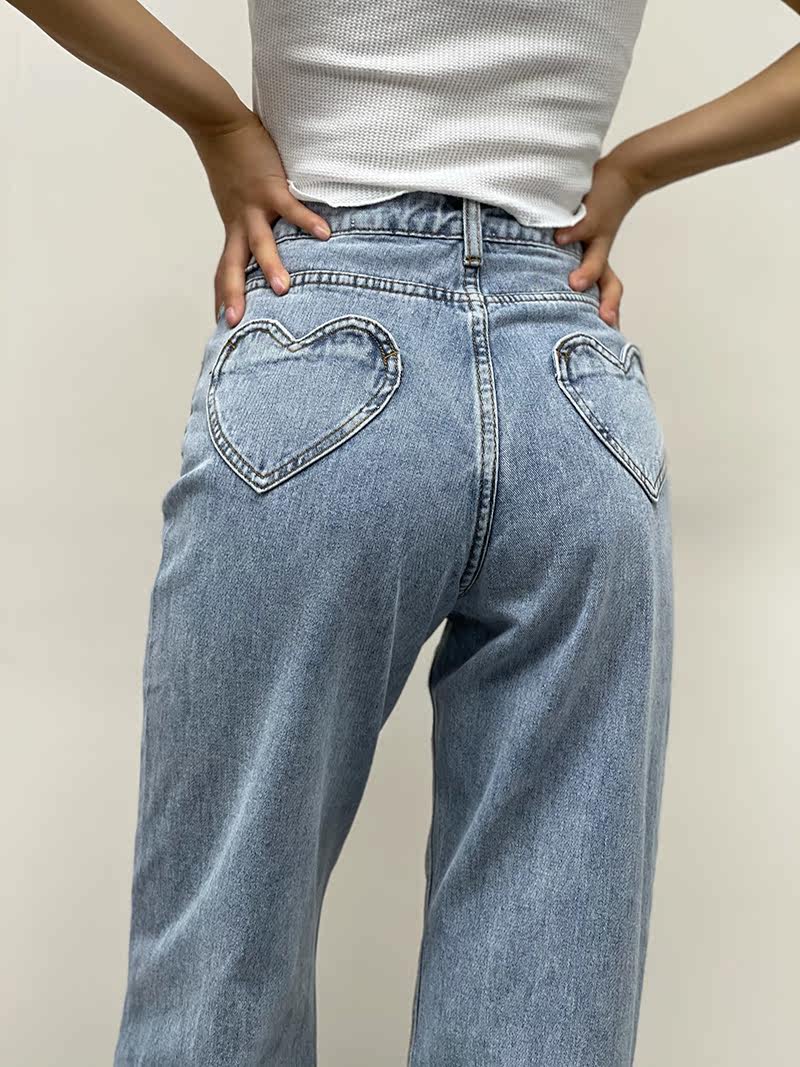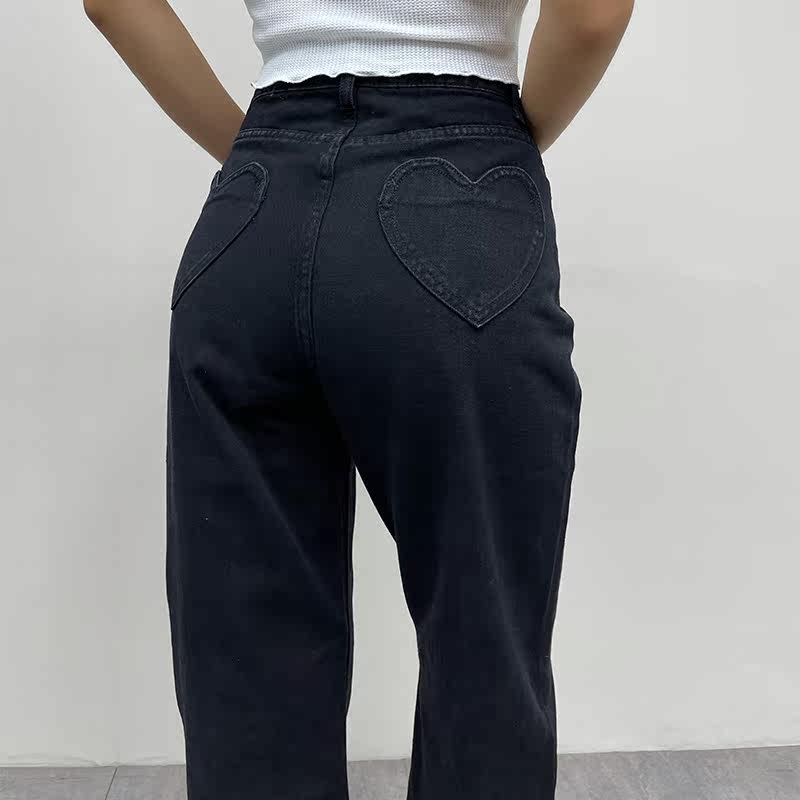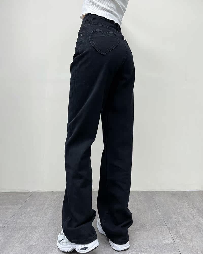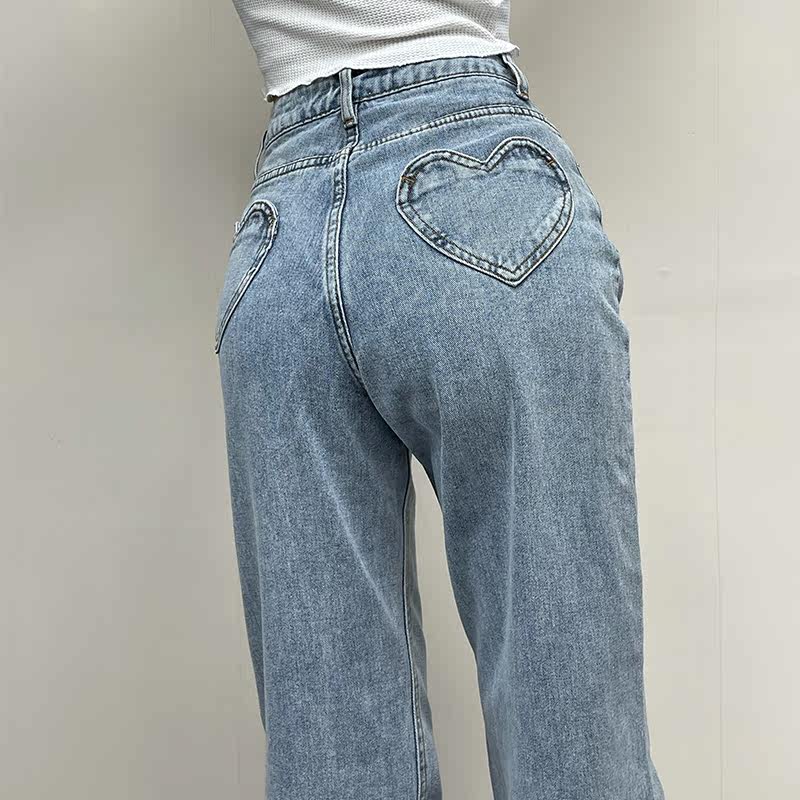 Ретро штаны, длинные джинсы, в американском стиле, по фигуре, свободный прямой крой, высокая талия