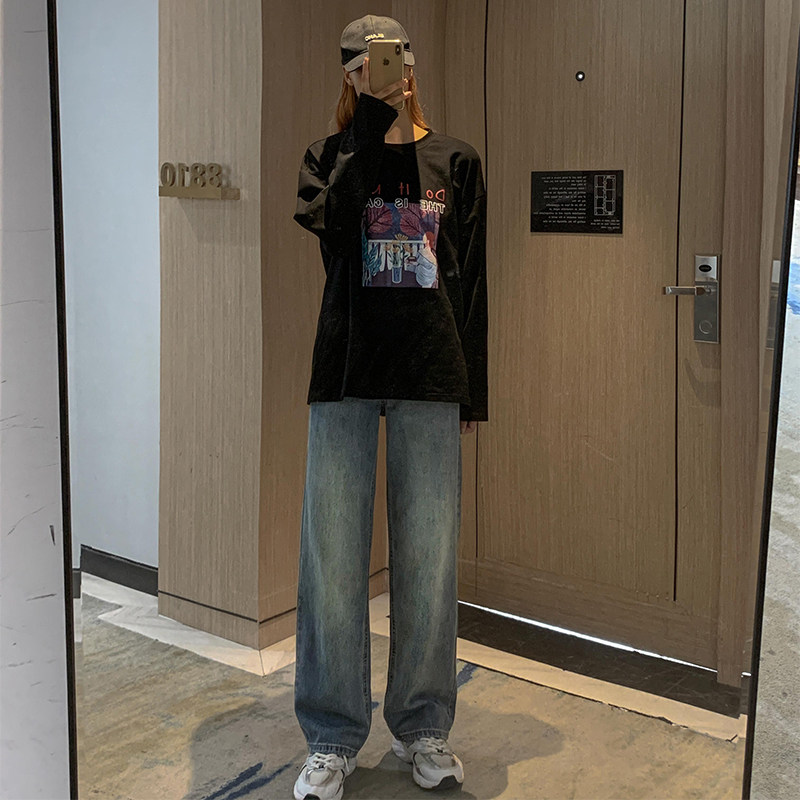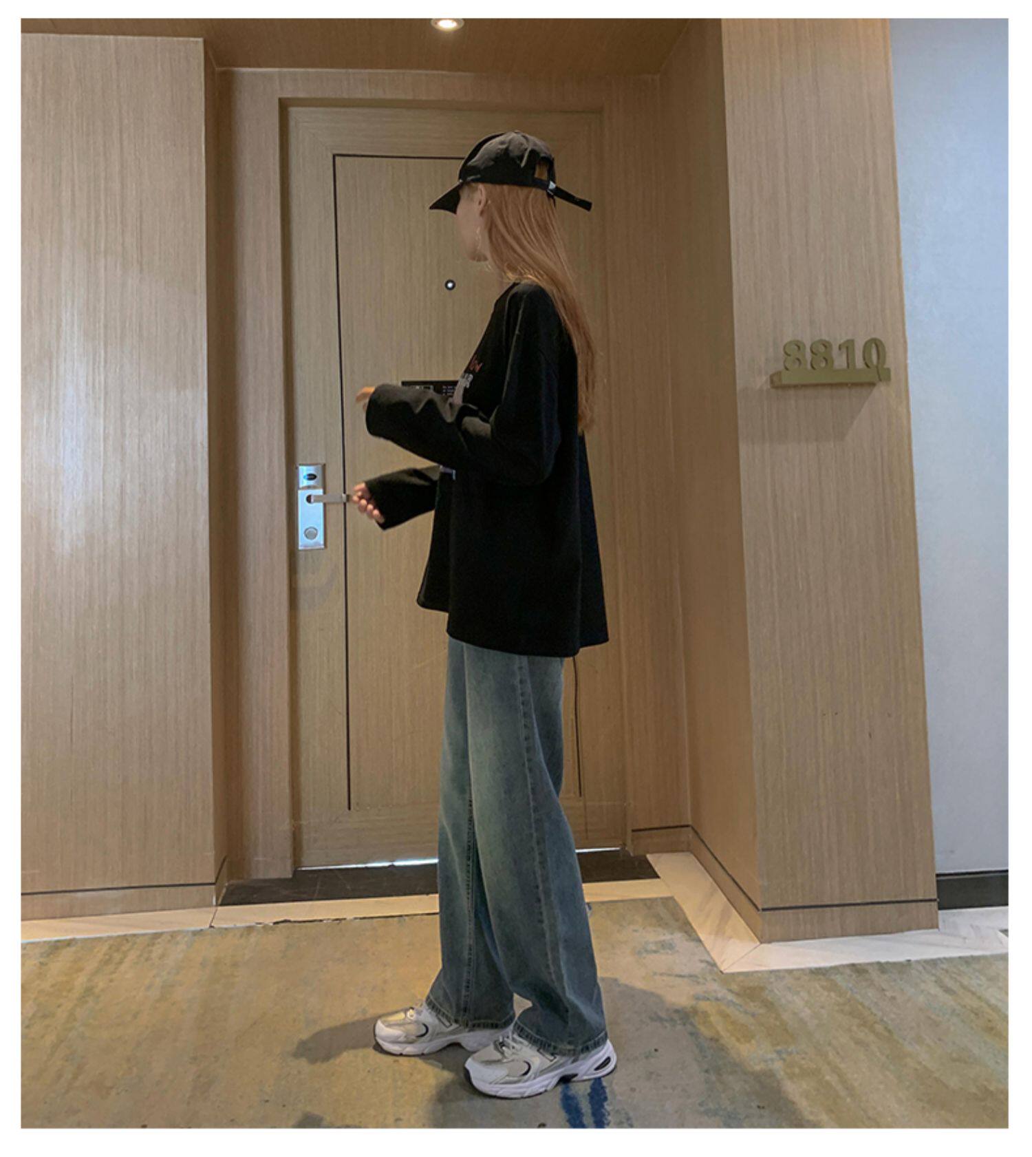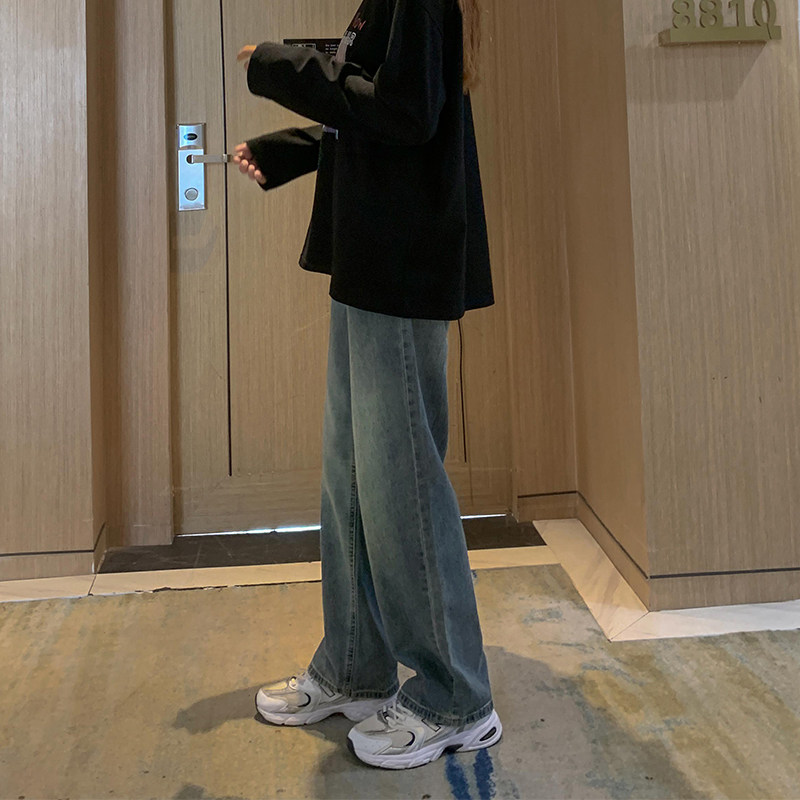 Ретро демисезонные джинсы, штаны, леггинсы, высокая талия, коллекция 2023, по фигуре, свободный прямой крой