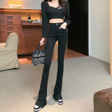 Джинсовые весенние штаны, приталенный черный мегафон, 2025 года, высокая талия, свободный прямой крой