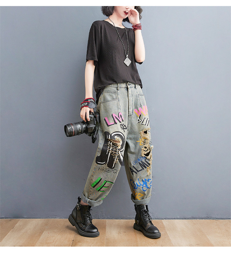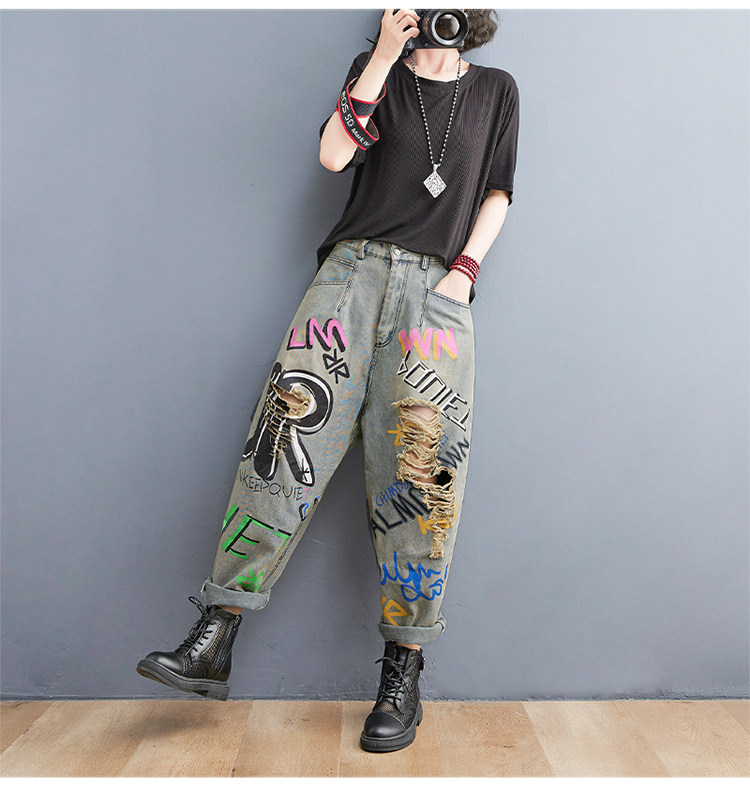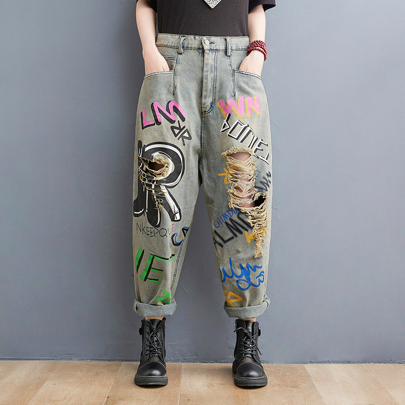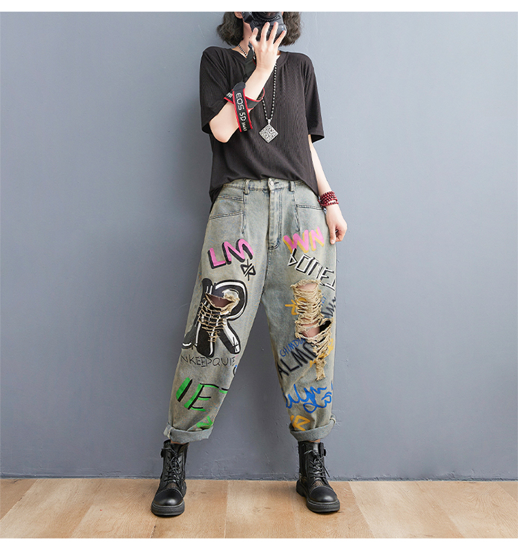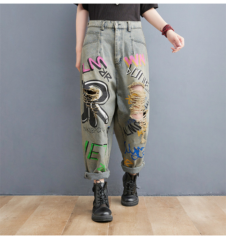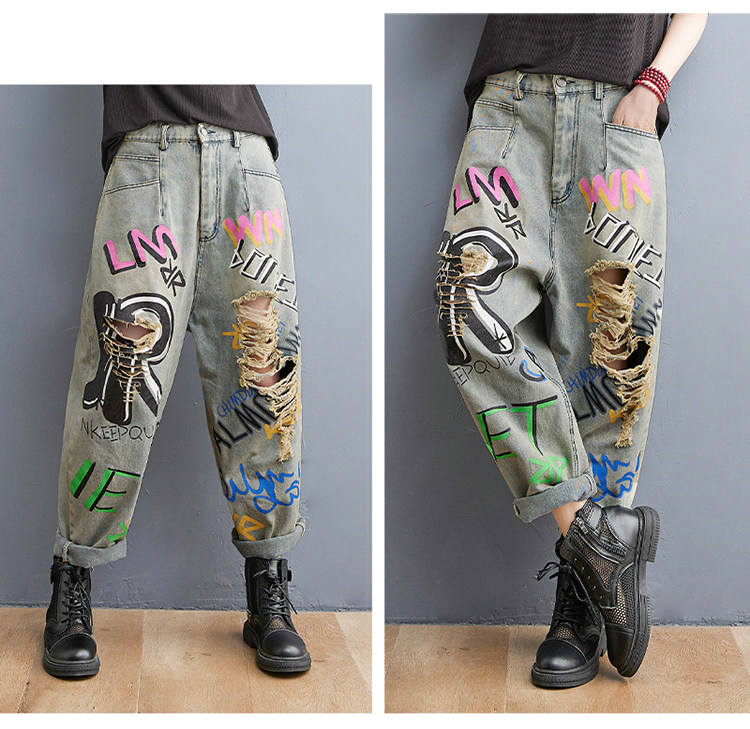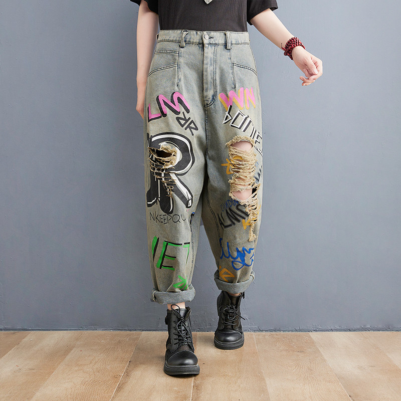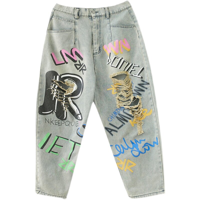 Летние джинсовые штаны для отдыха в стиле хип-хоп, большой размер