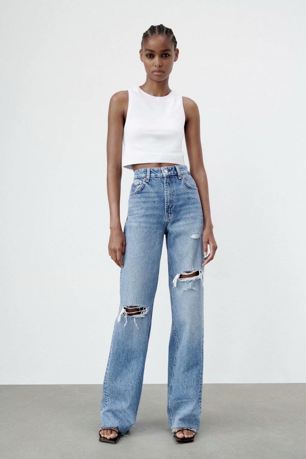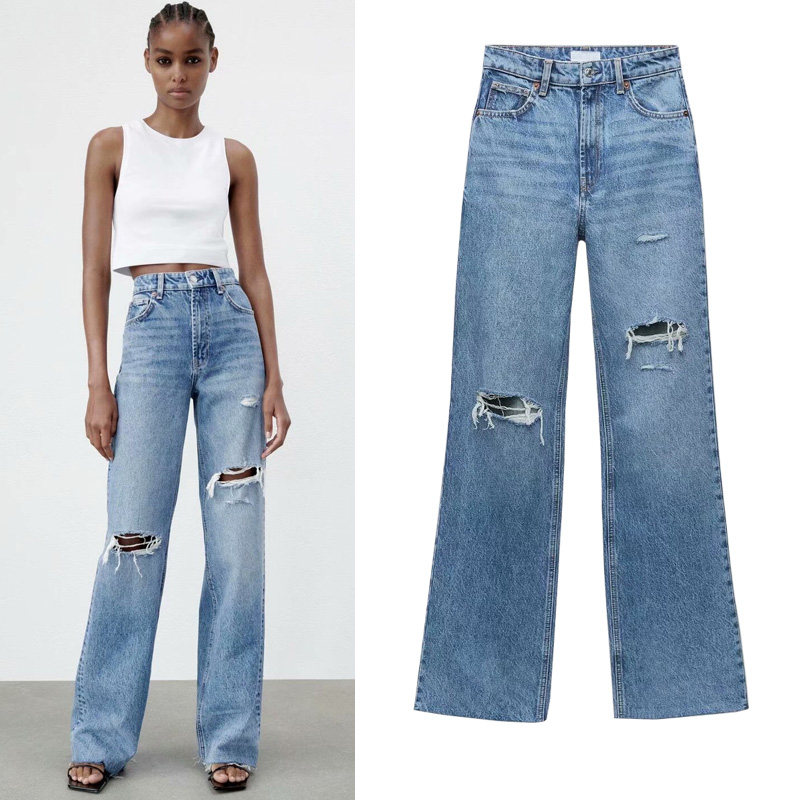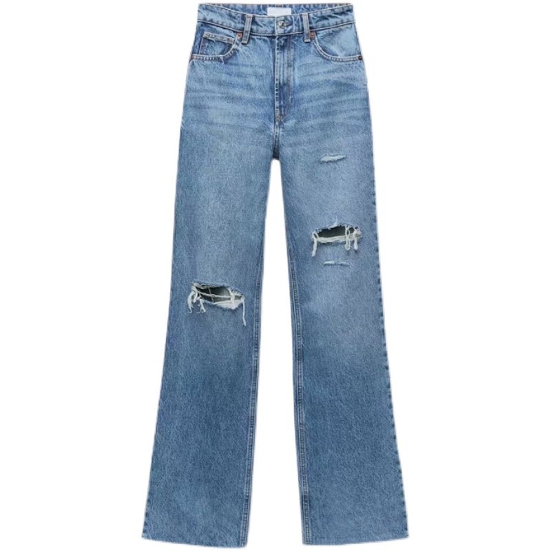 Весенние штаны, джинсы, тренд сезона, высокая талия, свободный прямой крой