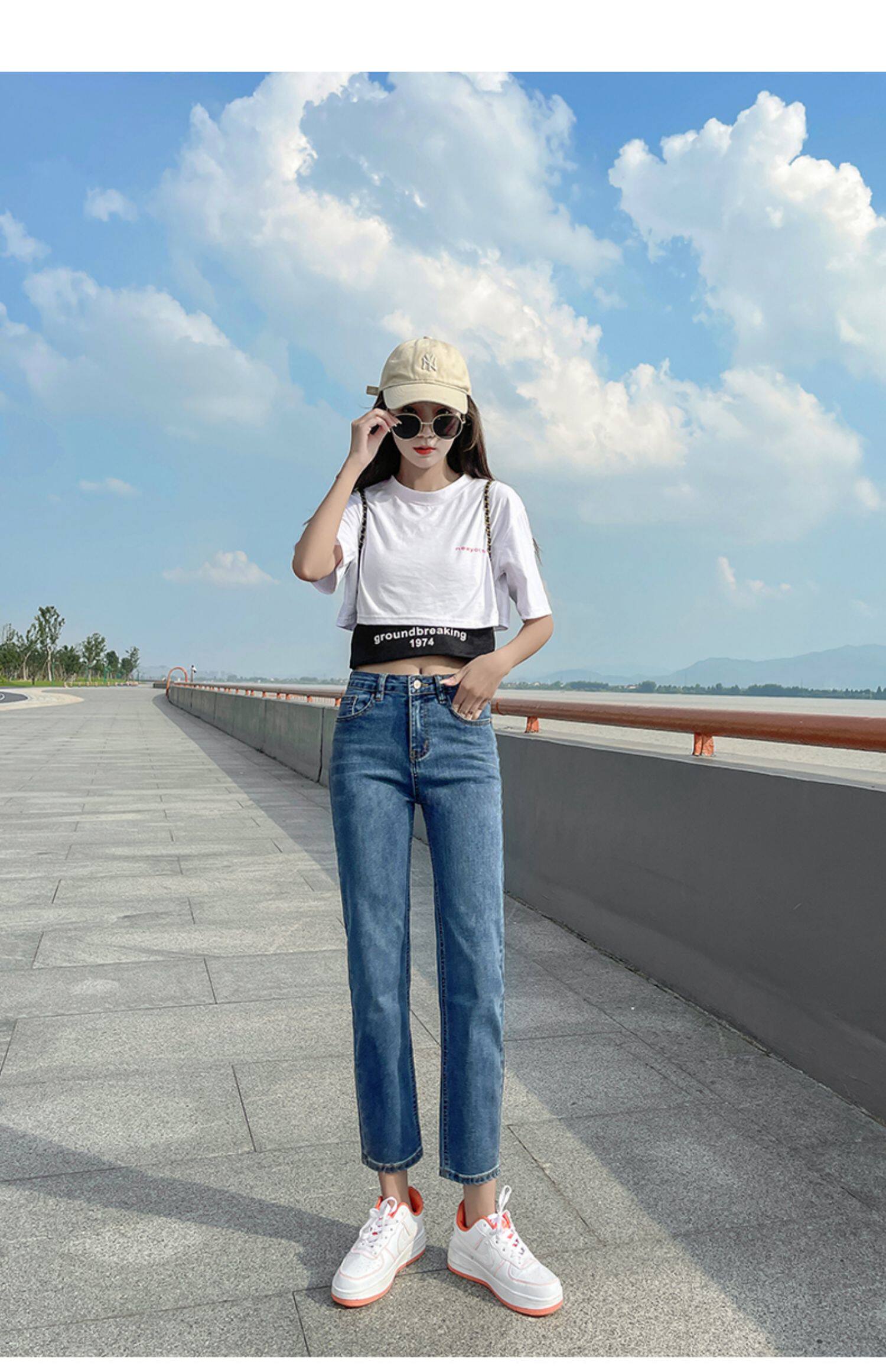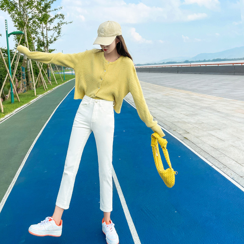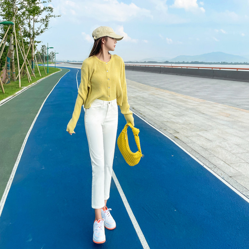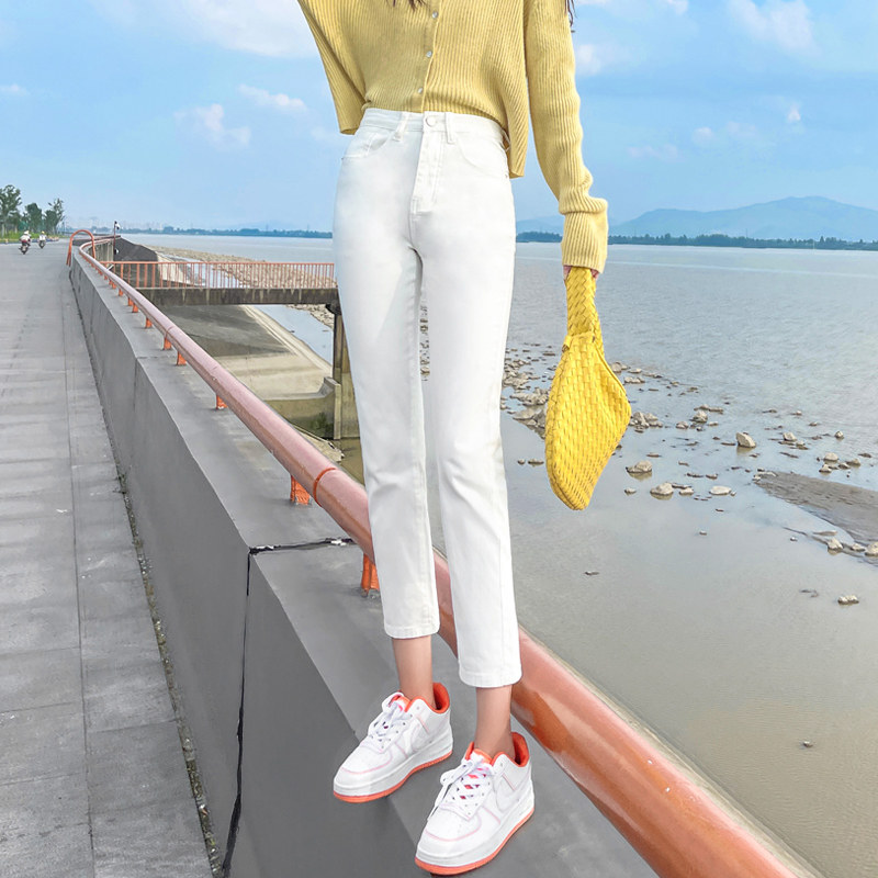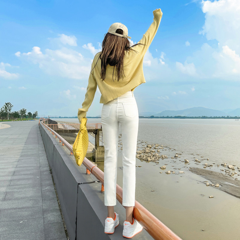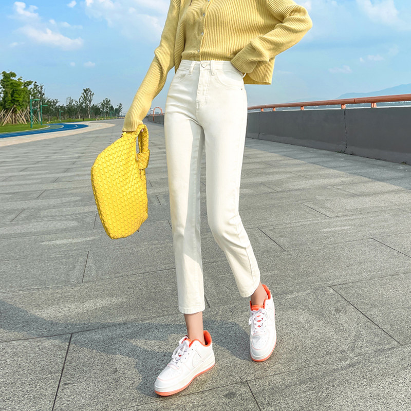 Белые осенние прямые свободные джинсы, демисезонные приталенные штаны, коллекция 2023, высокая талия, подходит для подростков