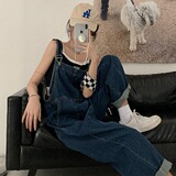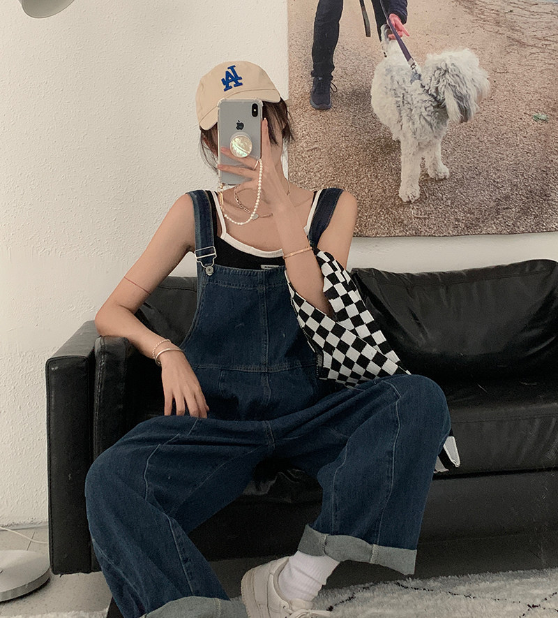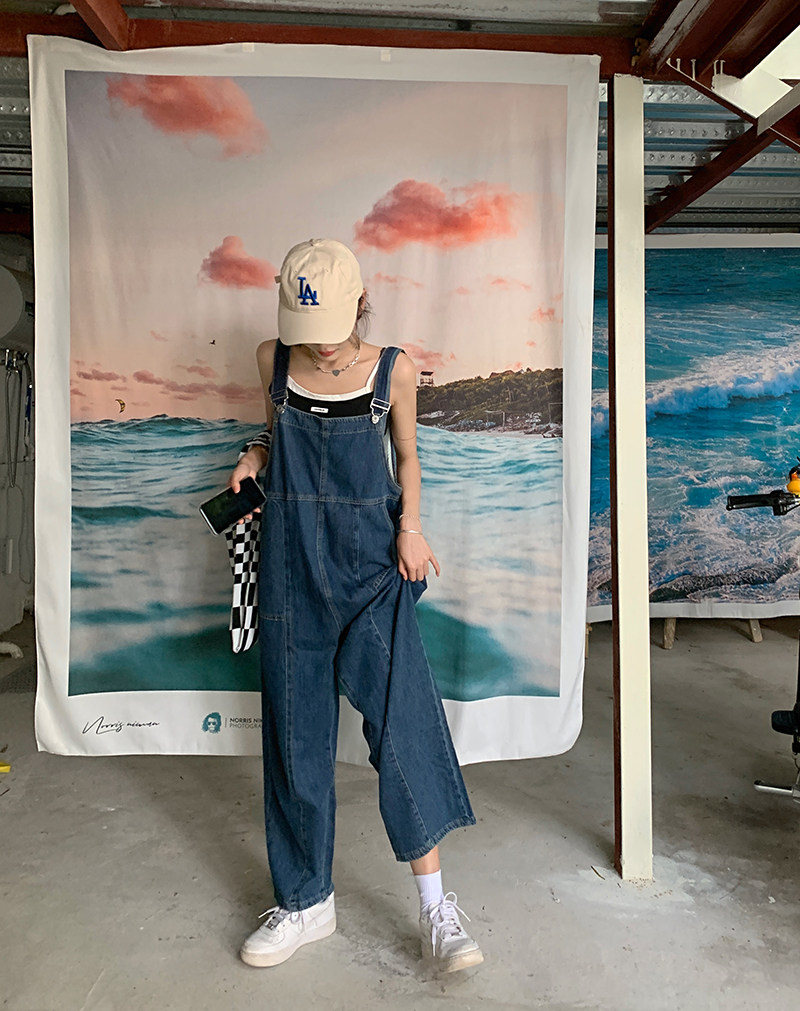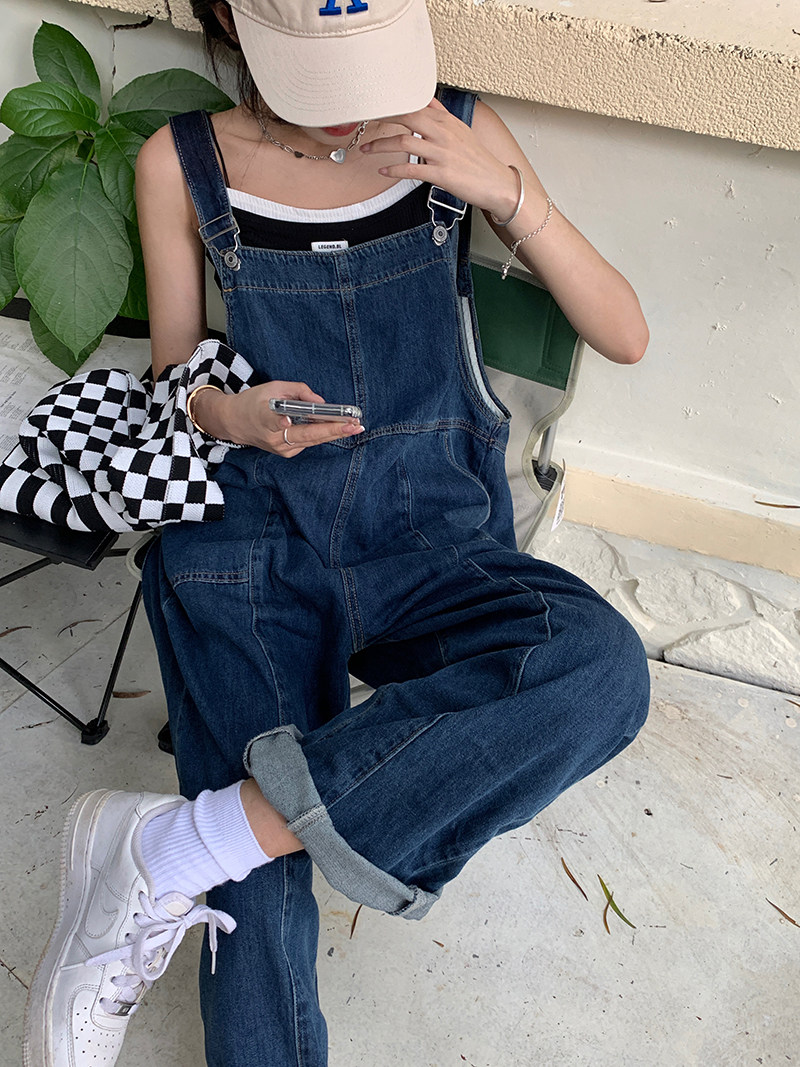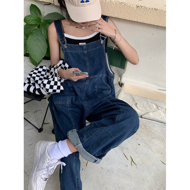 Ретро джинсовые подтяжки, дизайнерские штаны, синий комбинезон, высокая талия, свободный крой, тренд сезона