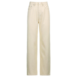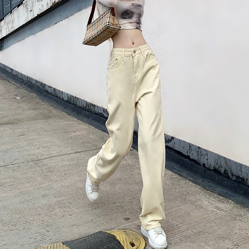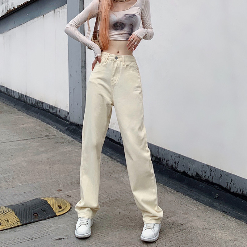 Кремовые желтые джинсы, летние штаны, по фигуре, высокая талия, свободный прямой крой