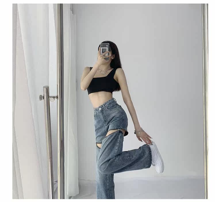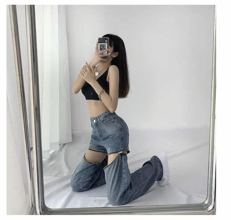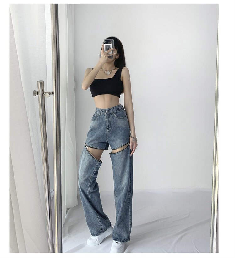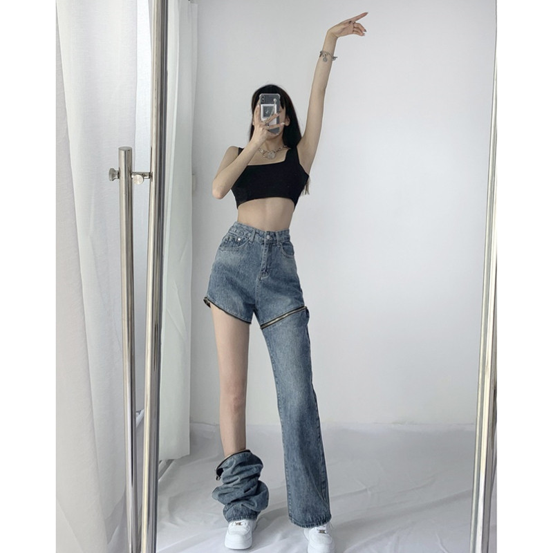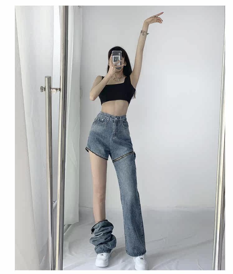 Прямые свободные джинсы, съемные штаны, европейский стиль, 2021 года, свободный крой