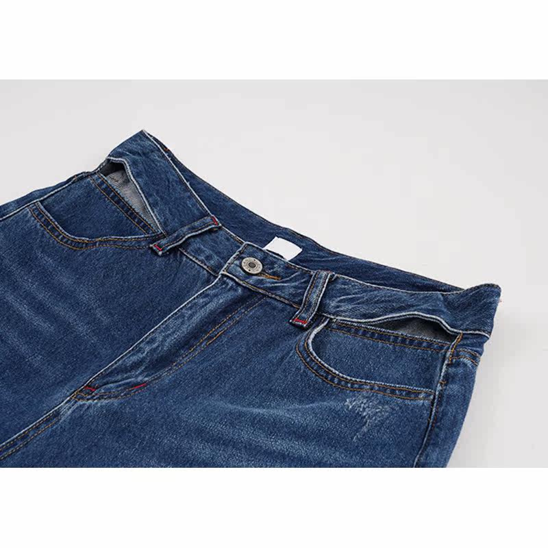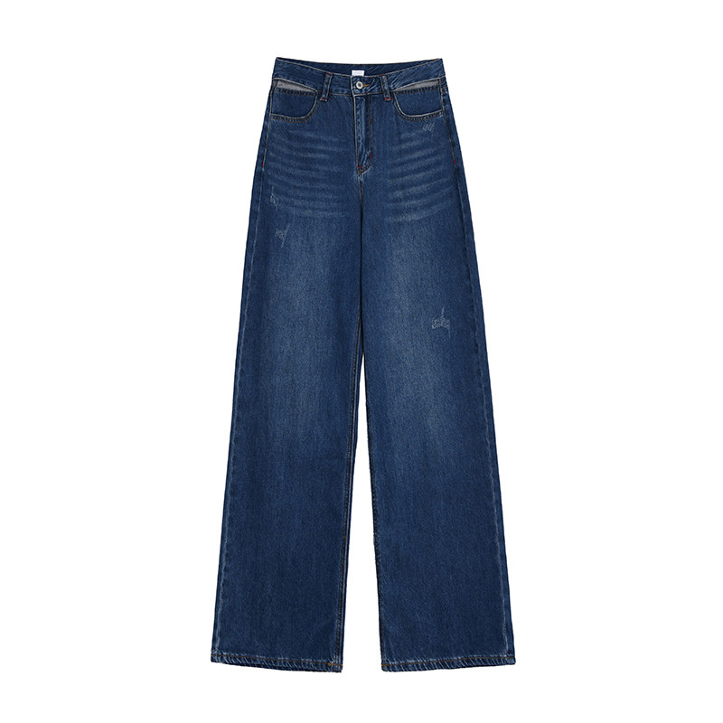 Синие джинсы, осенние штаны, 2021 года, высокая талия, свободный прямой крой