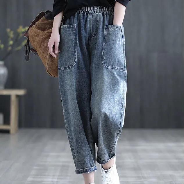 Джинсы, штаны, эластичная талия, высокая талия, большой размер