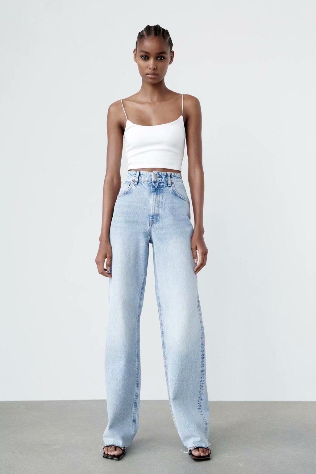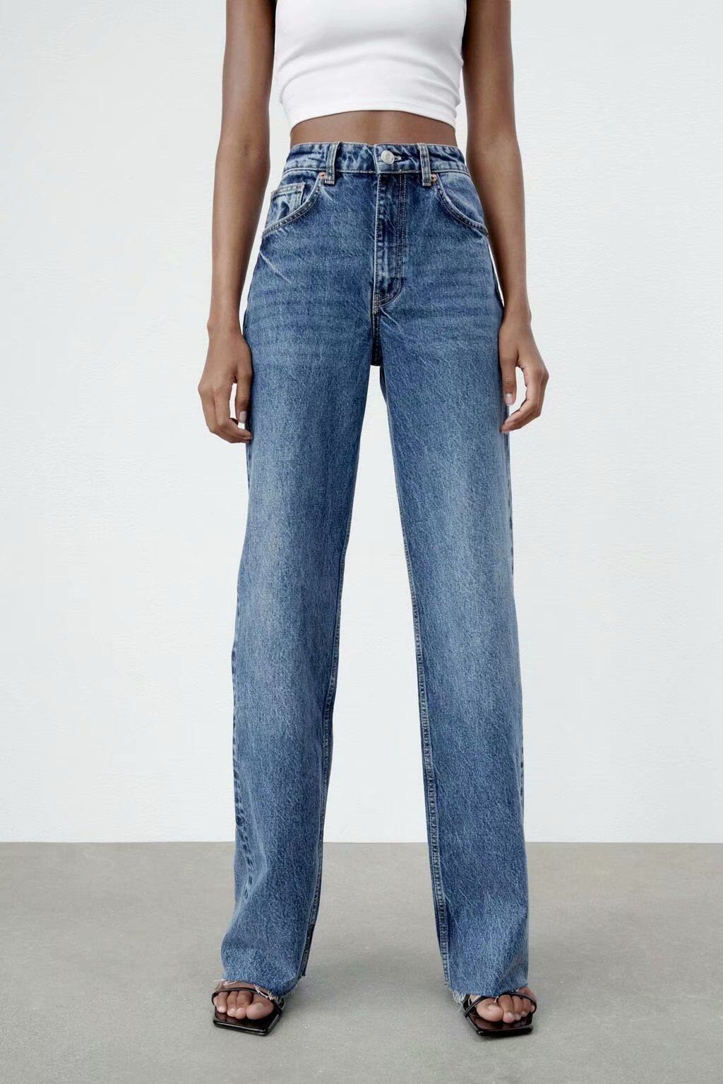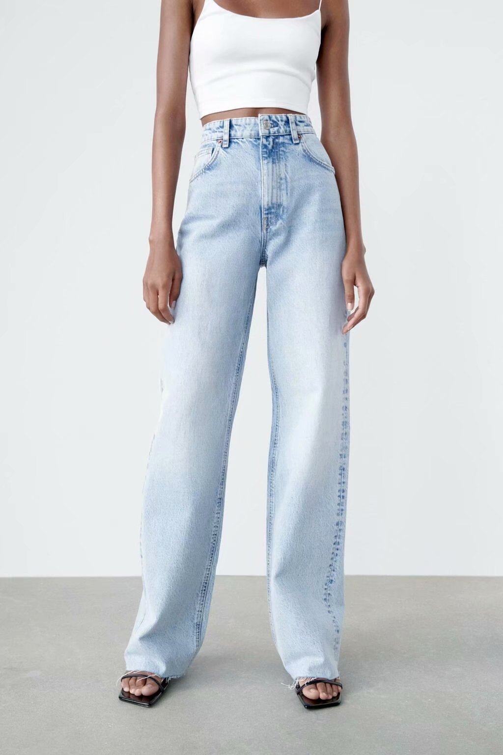 Весенние штаны для отдыха, джинсы, тренд сезона, высокая талия, свободный прямой крой