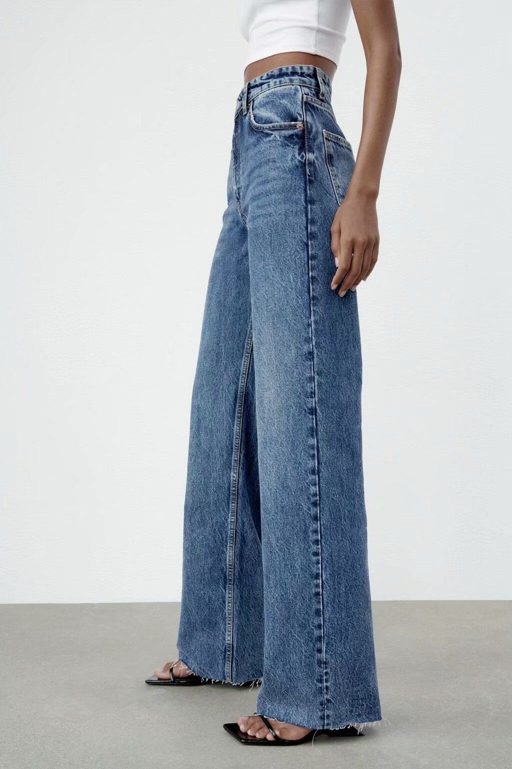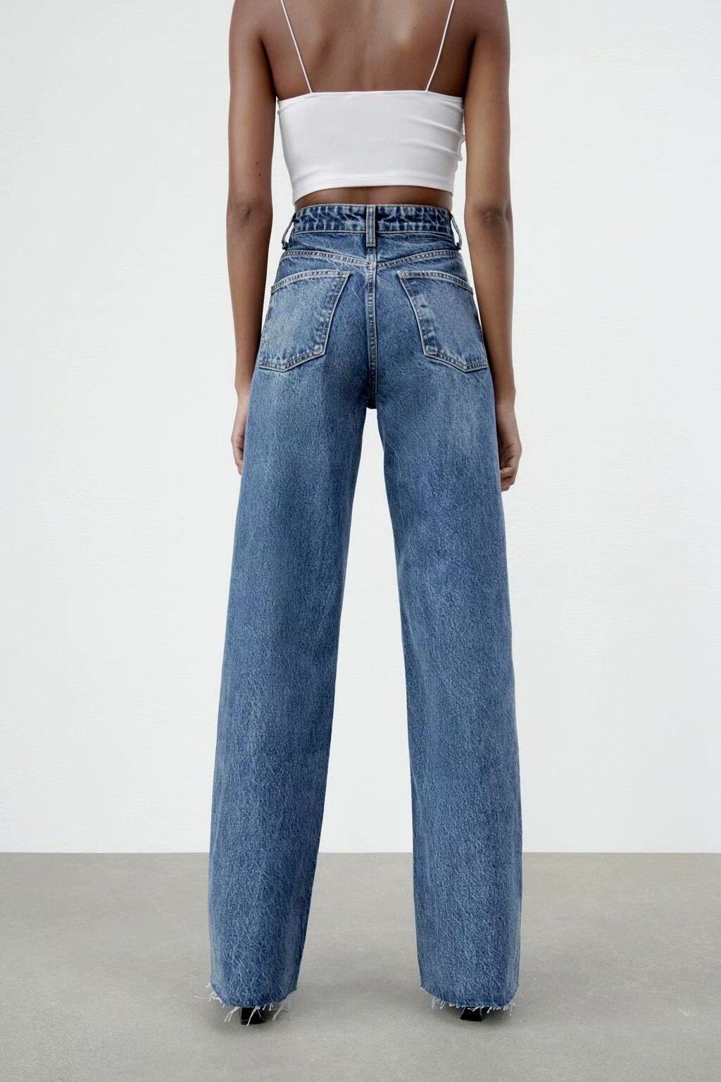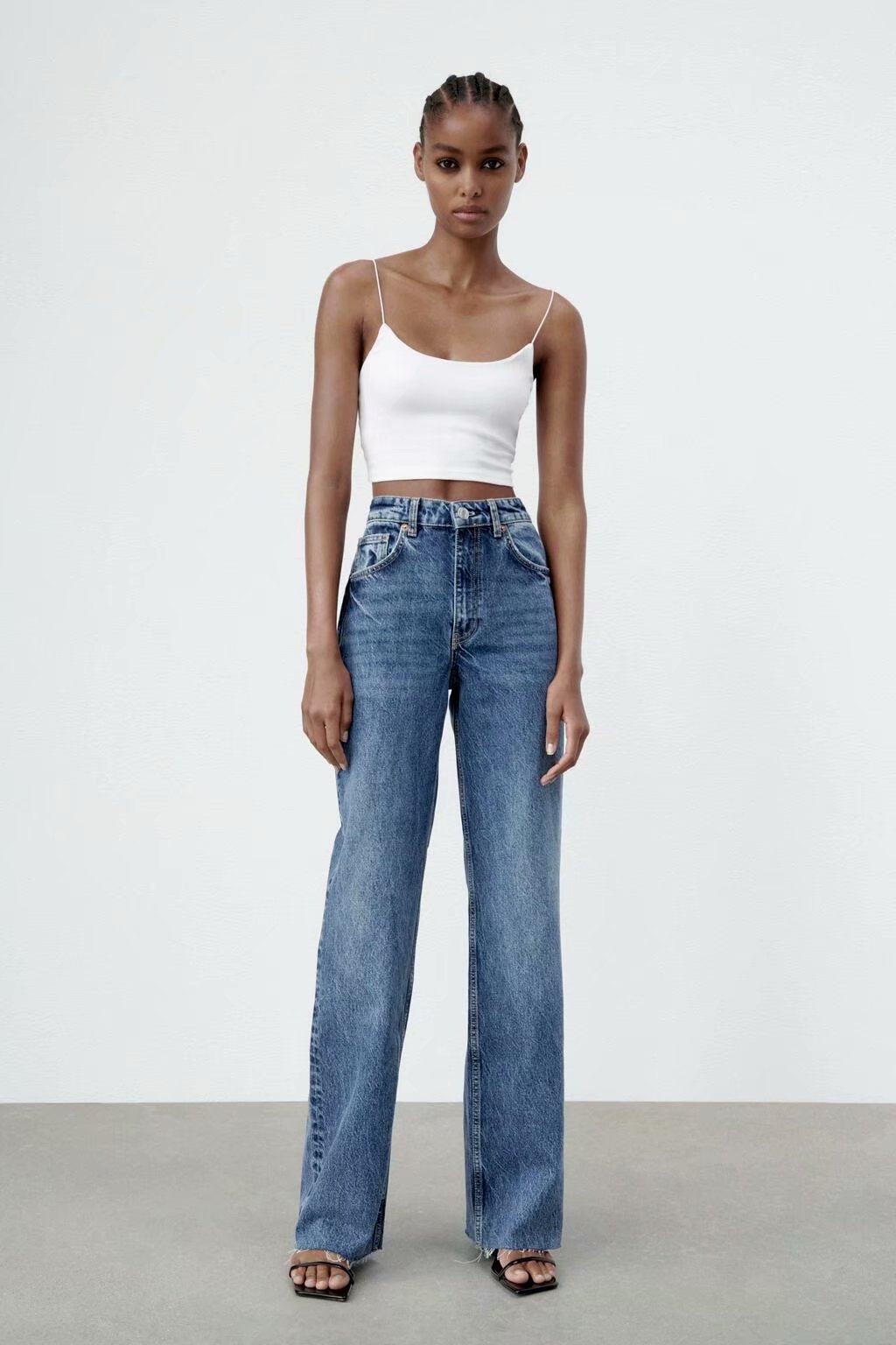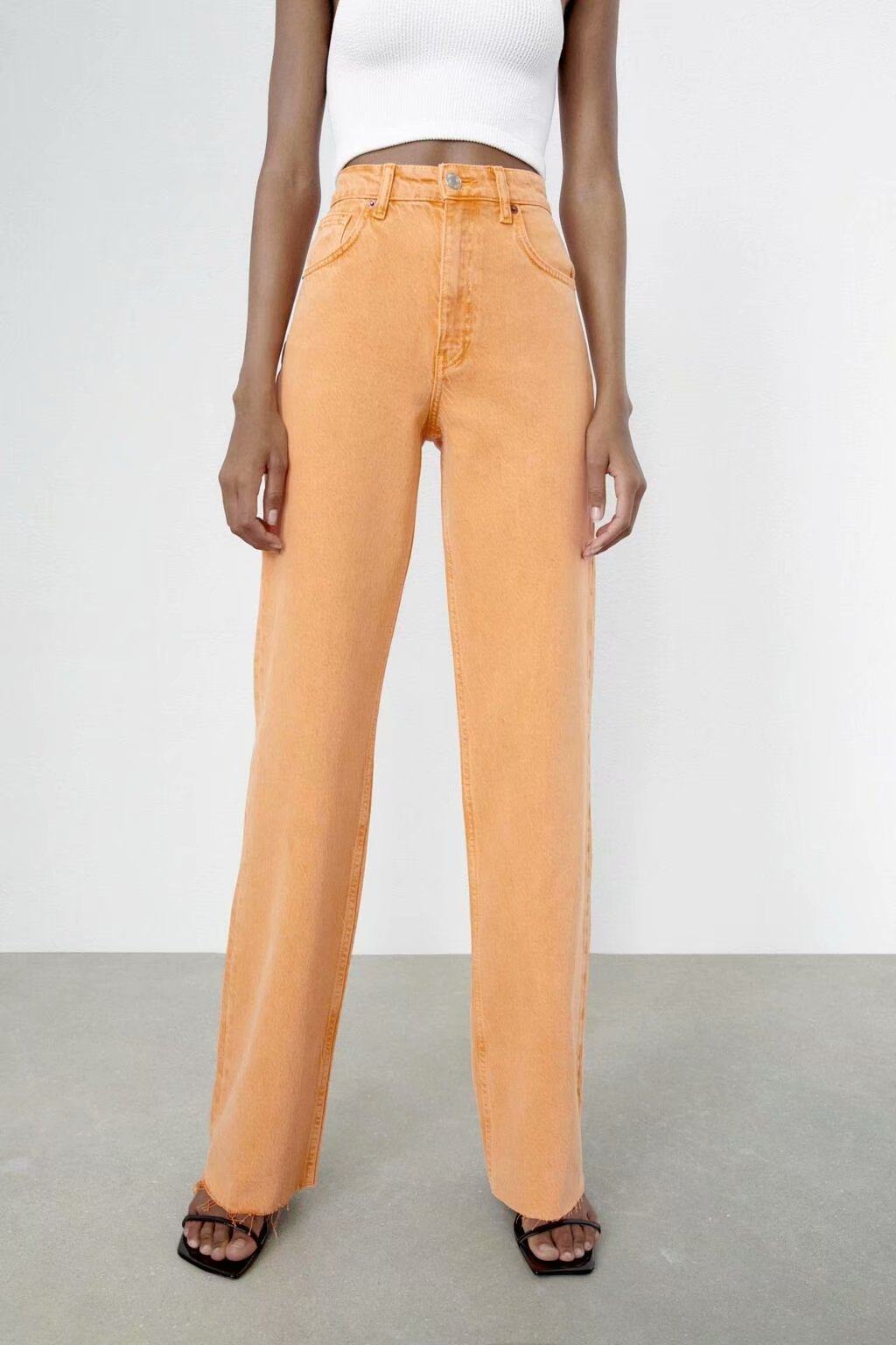 Весенние штаны для отдыха, джинсы, тренд сезона, высокая талия, свободный прямой крой